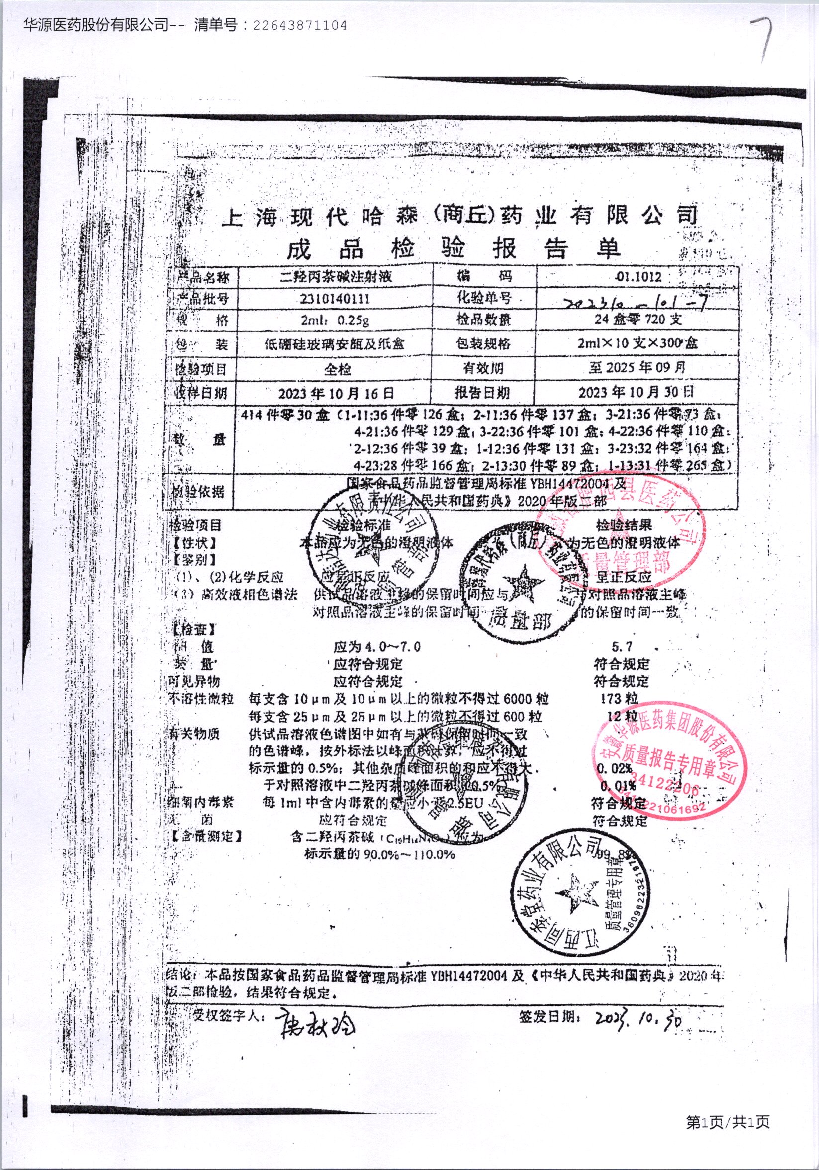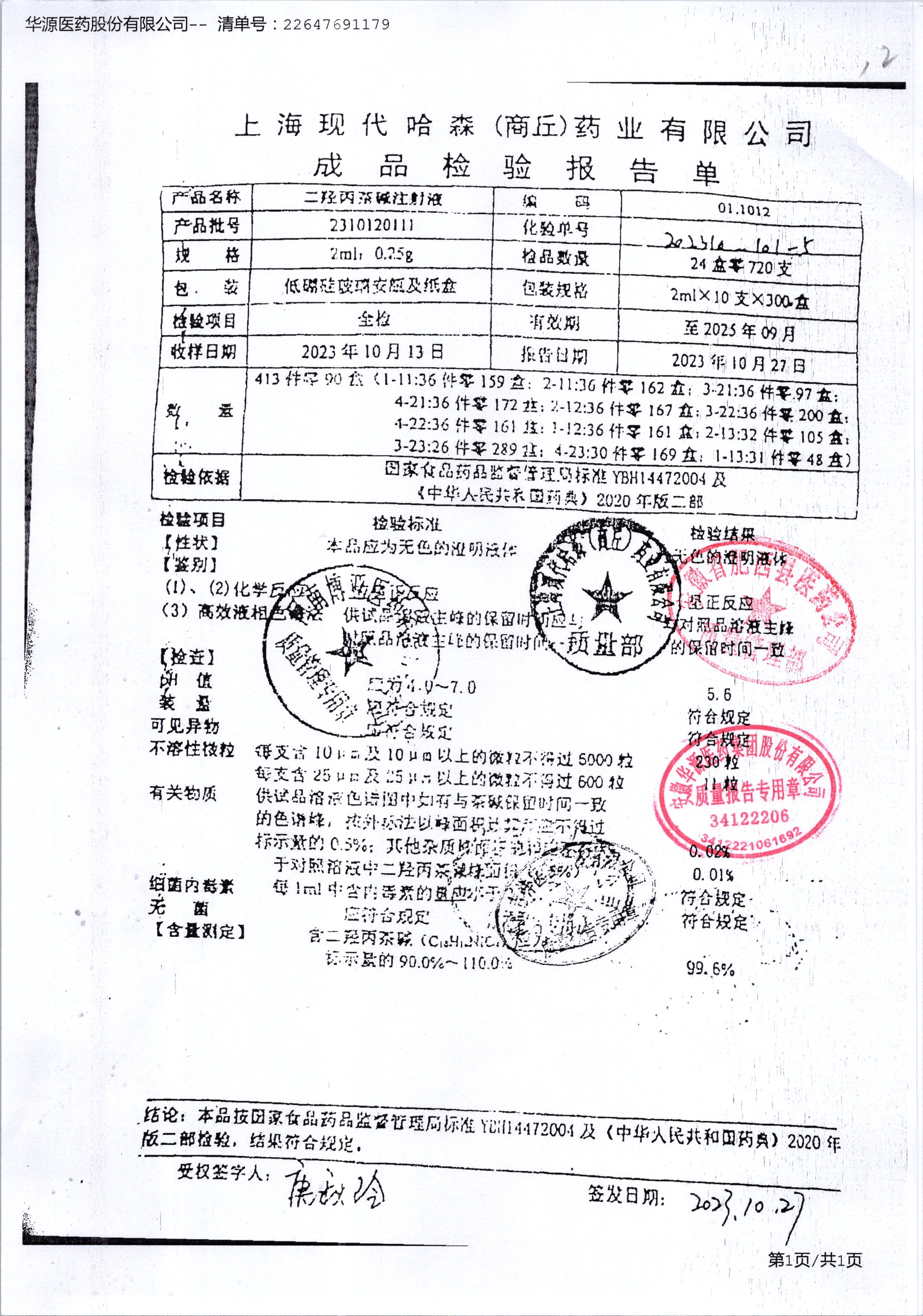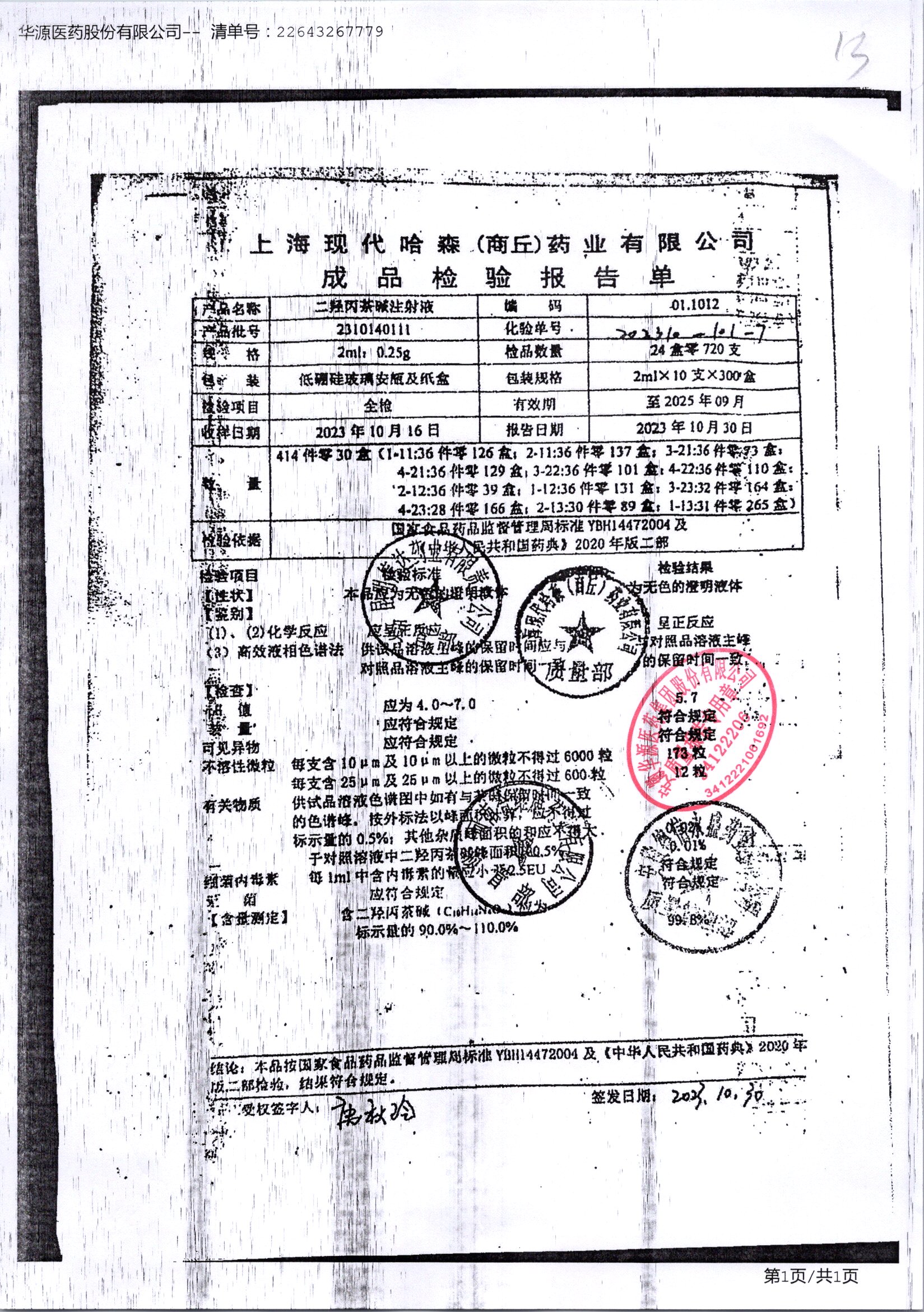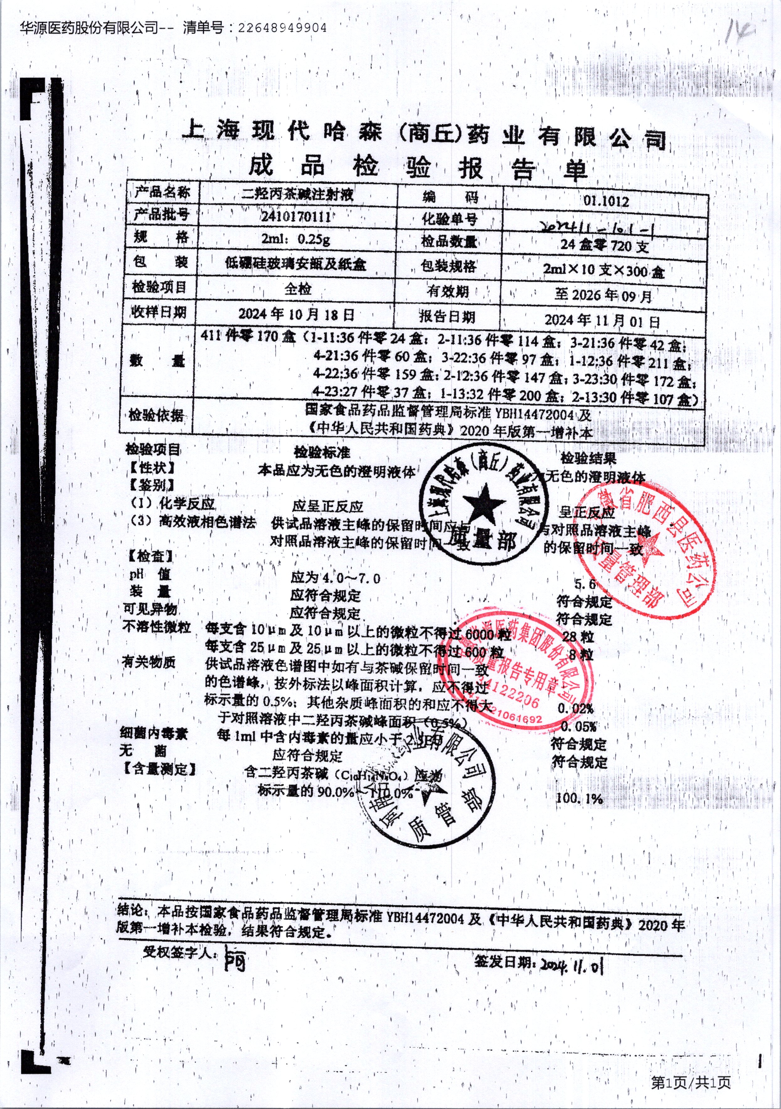 | 二羟丙茶碱注射液/喘定针 | 2ml:0.25g | 2110160111 | 查看详情 |