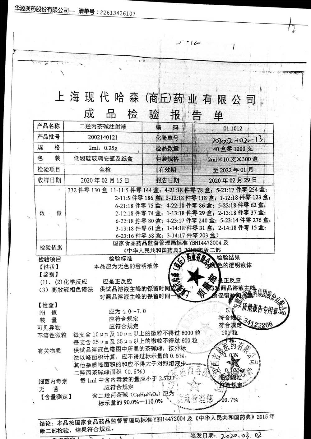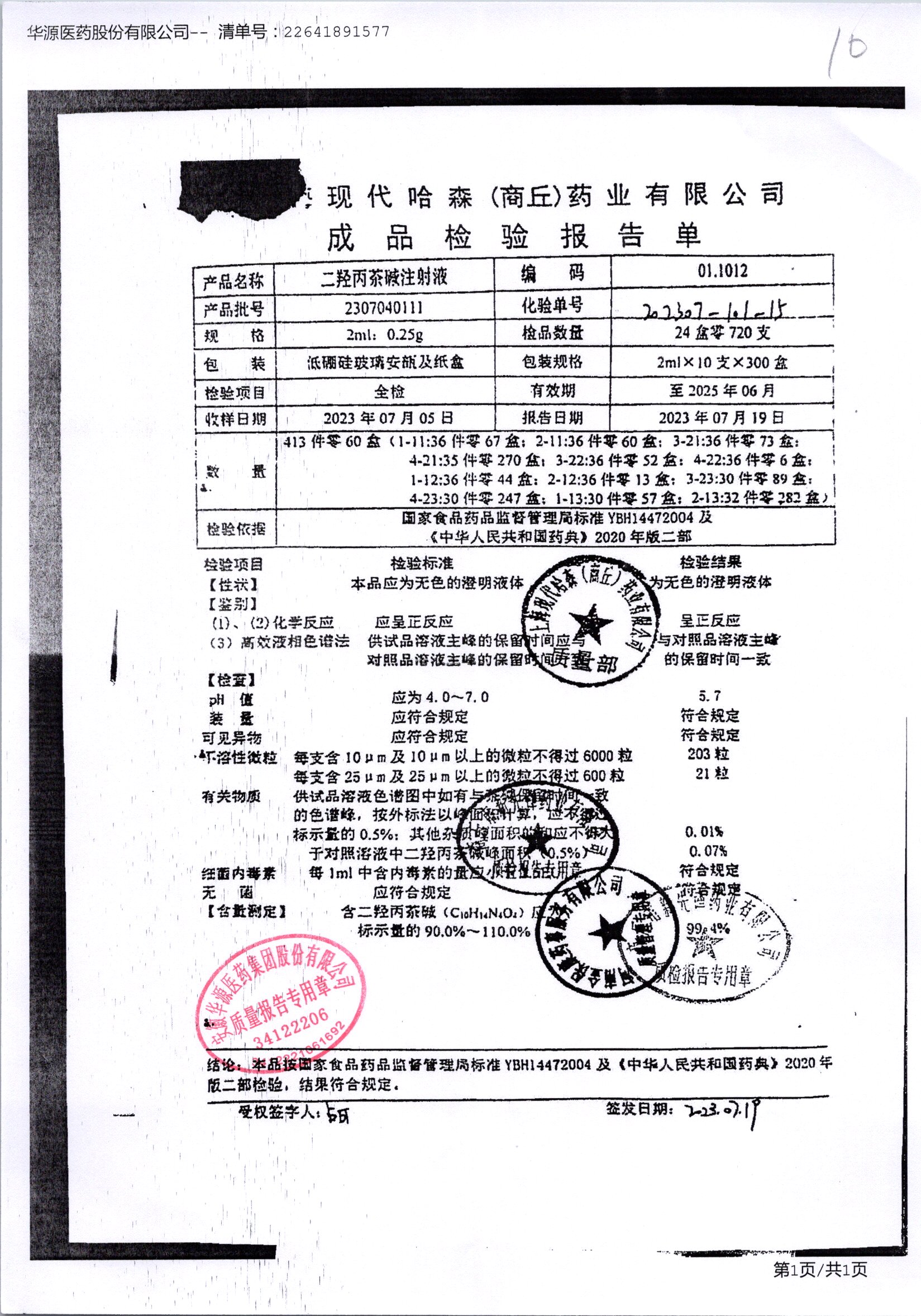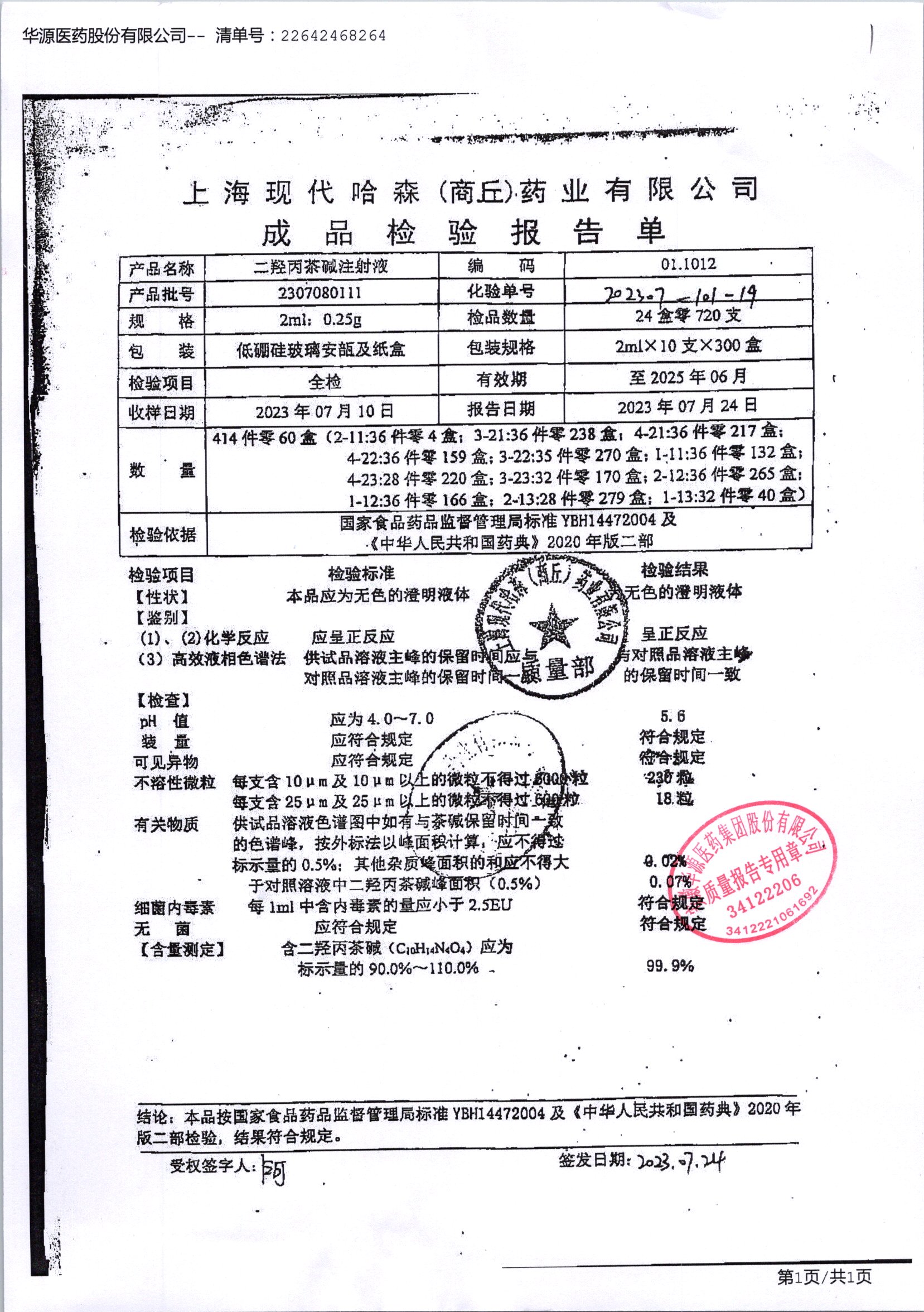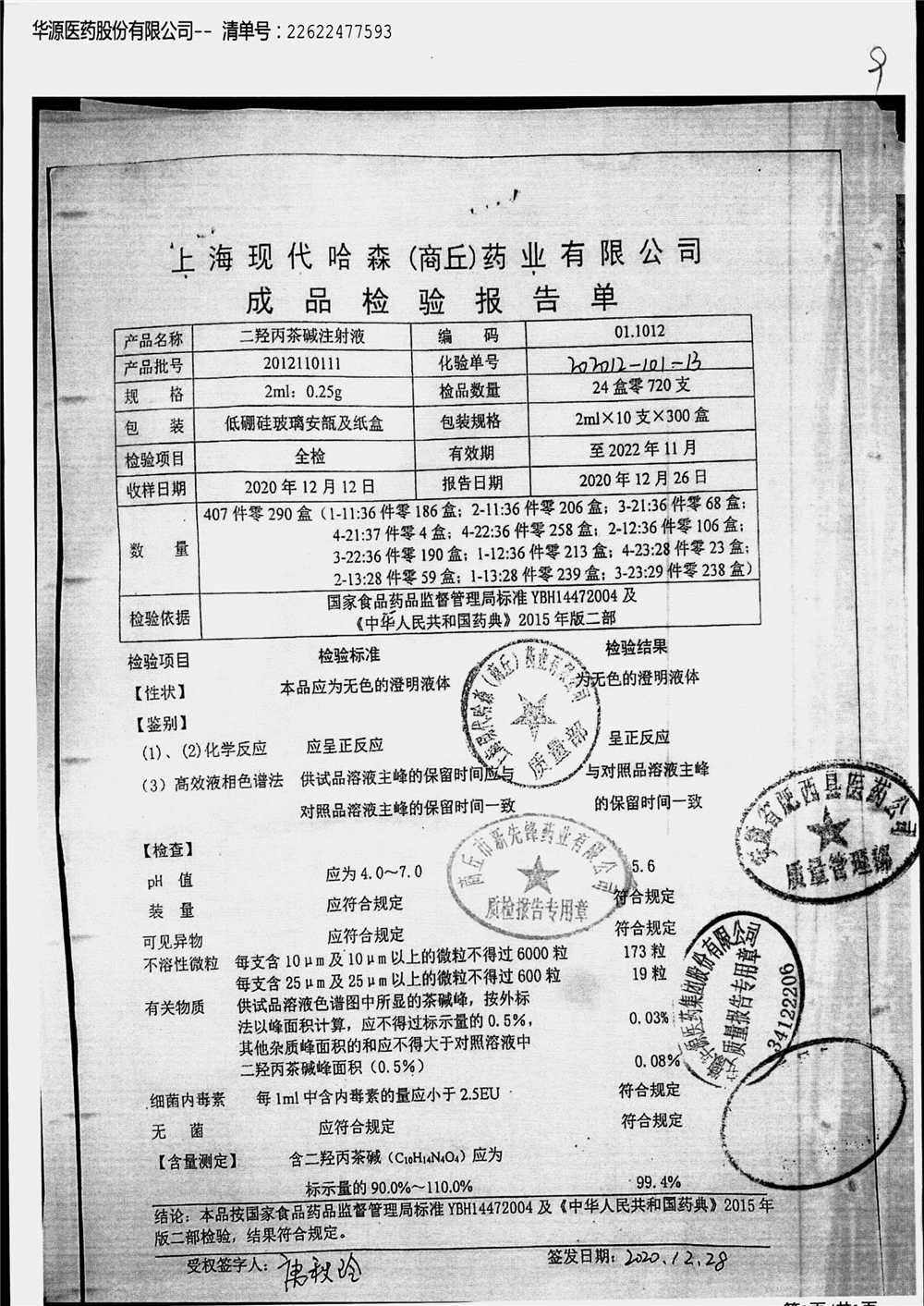| 二羟丙茶碱注射液/喘定针 | 2ml:0.25g | 2110160111 | 查看详情 |