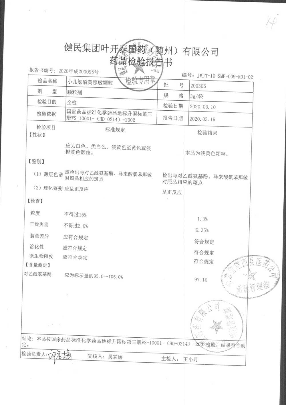 | 小儿氨酚黄那敏颗粒 | 3g | 200306 | 查看详情 |