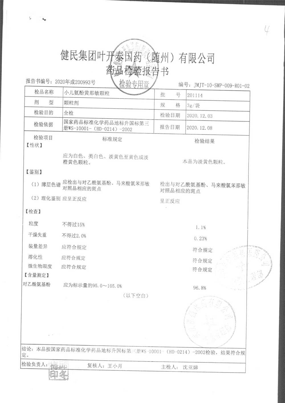 | 小儿氨酚黄那敏颗粒 | 3g | 201114 | 查看详情 |