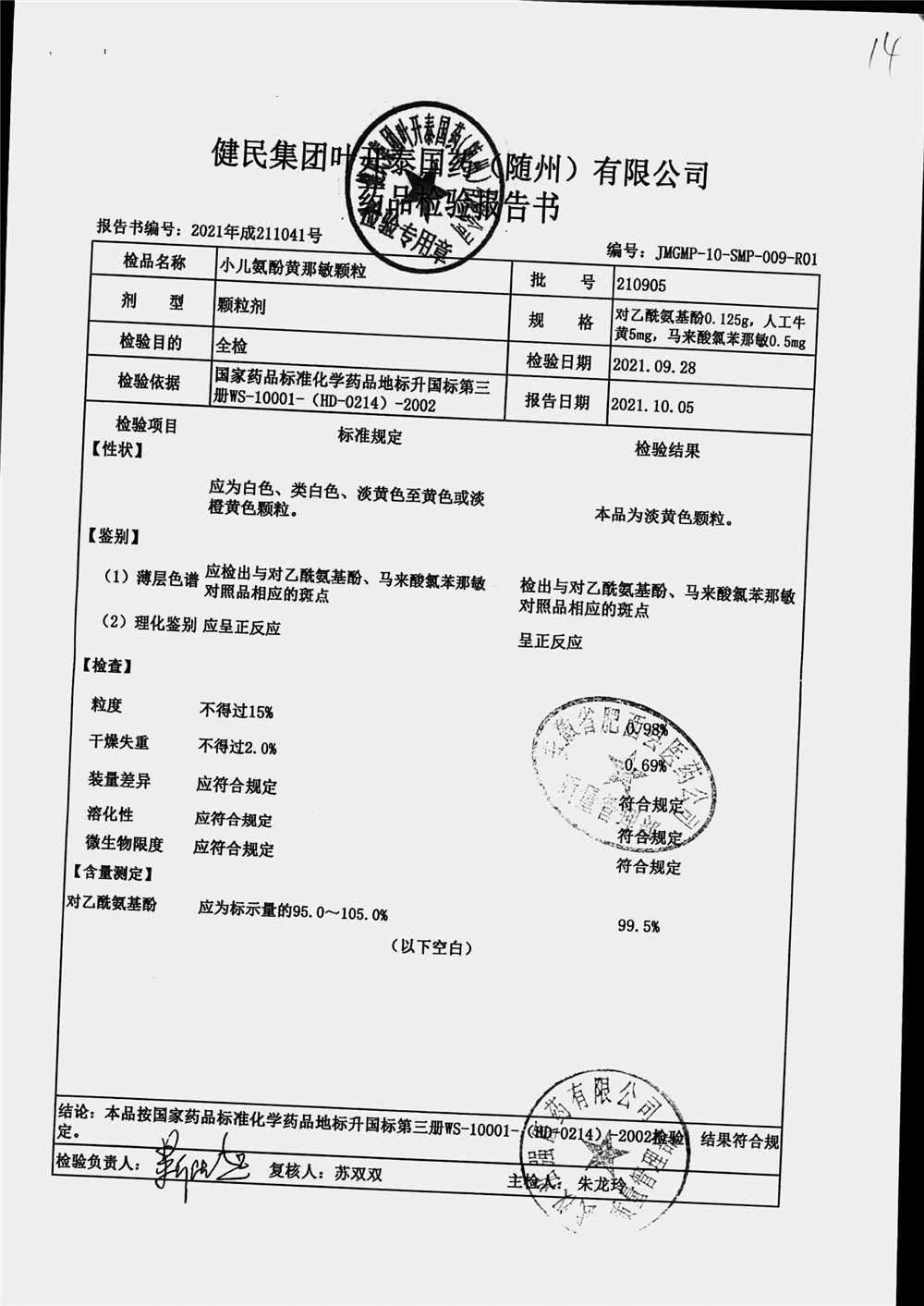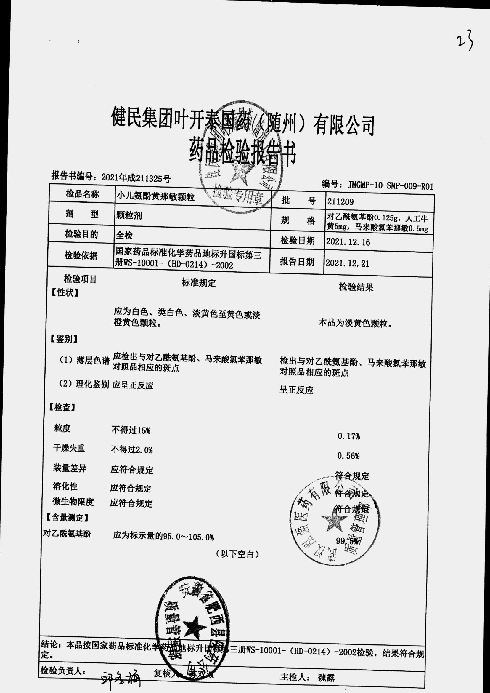 | 小儿氨酚黄那敏颗粒 | 3g | 210905 | 查看详情 |