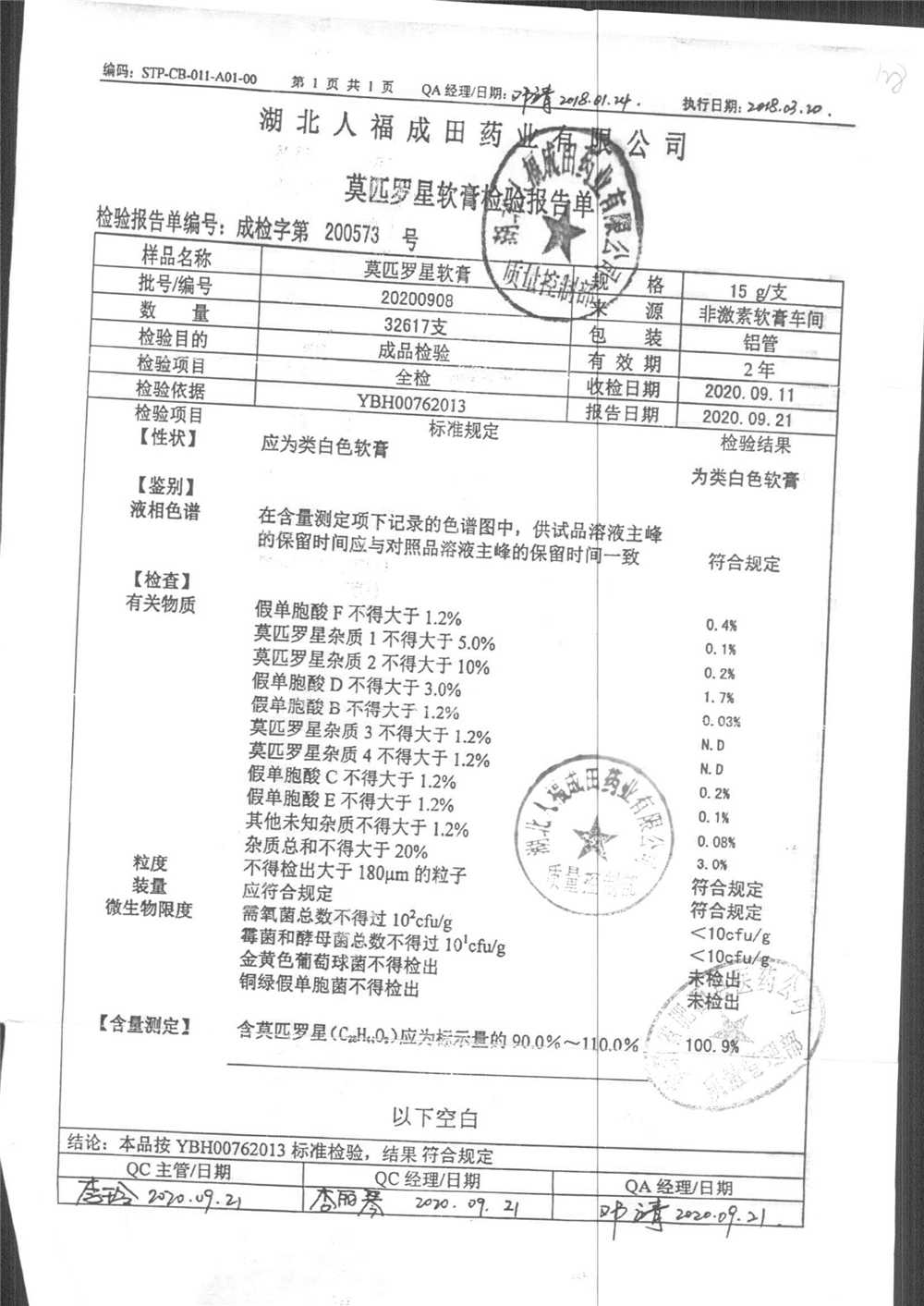 | 莫匹罗星软膏 | 15g | 20200908 | 查看详情 |