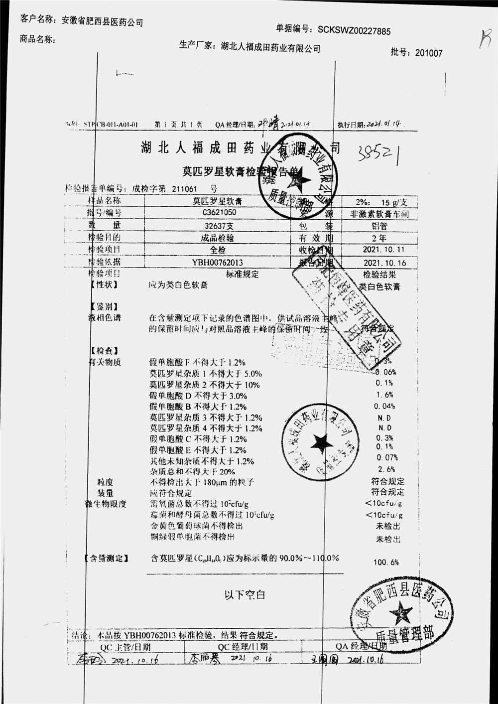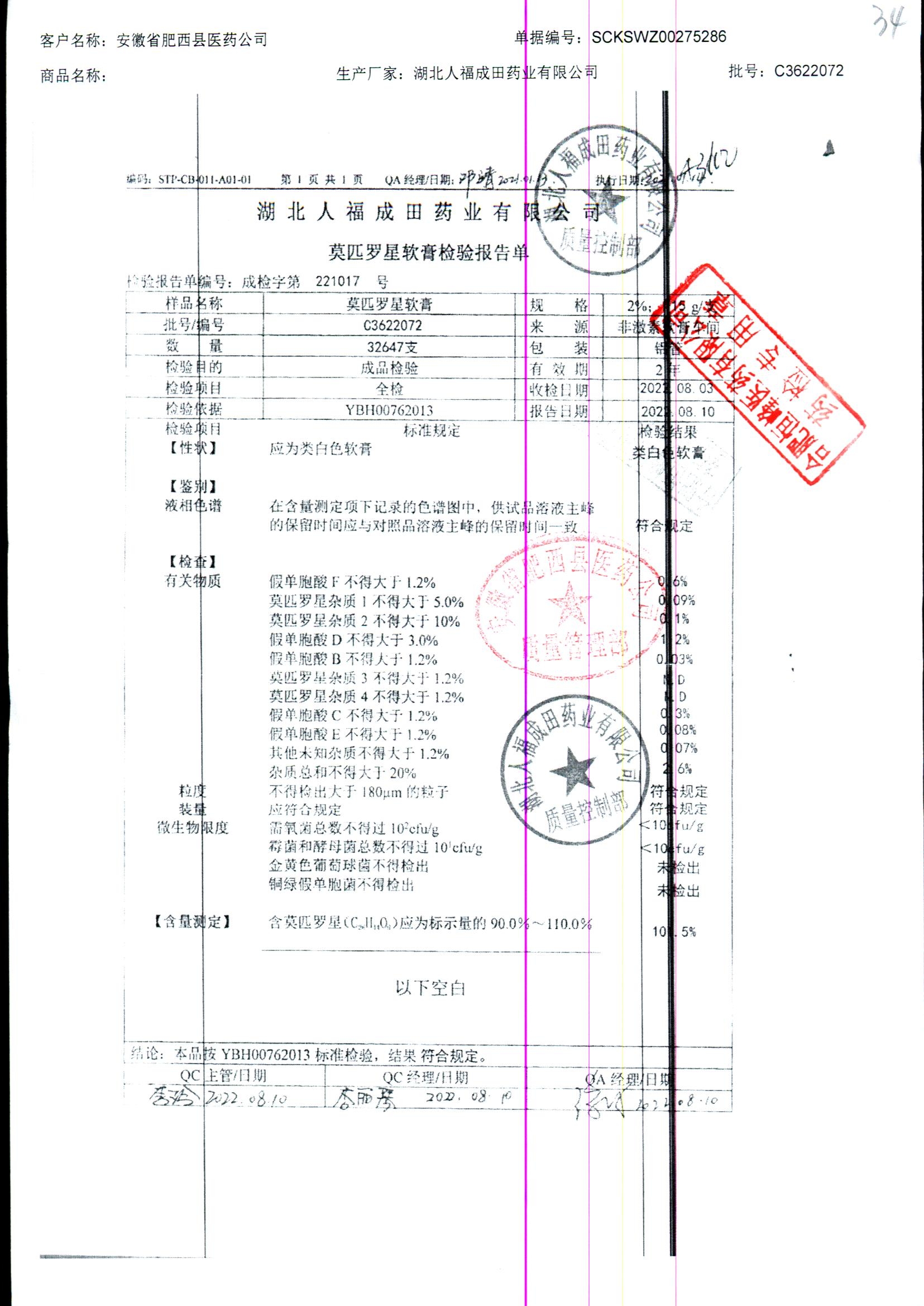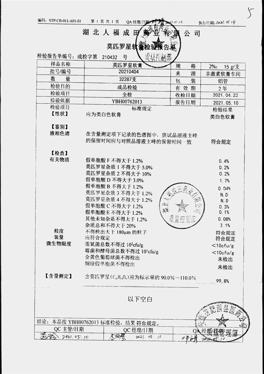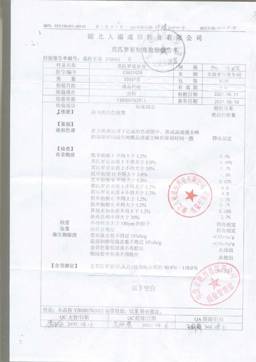 | 莫匹罗星软膏 | 15g | 20210404 | 查看详情 |