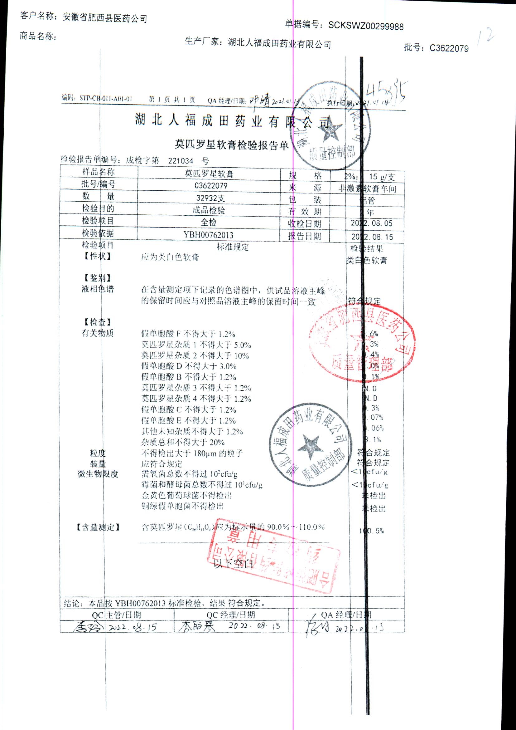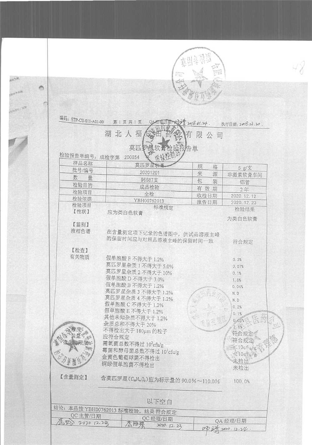 | 莫匹罗星软膏 | 15g | 20201201 | 查看详情 |