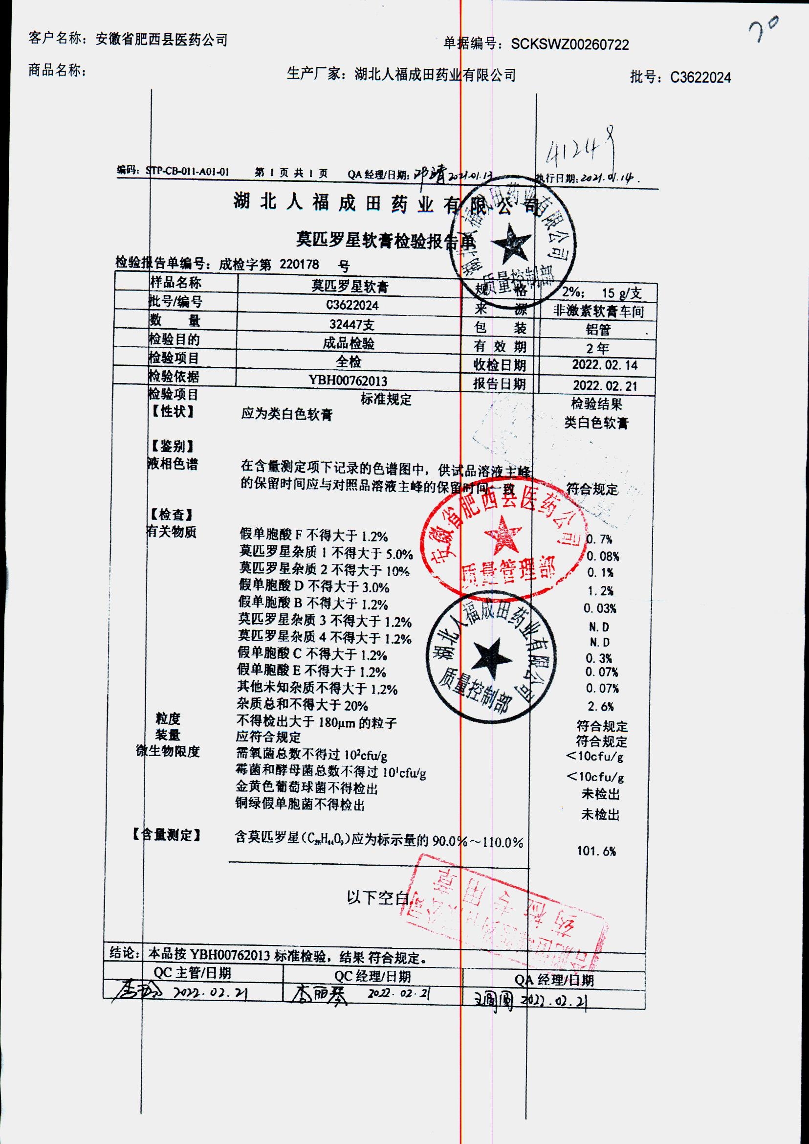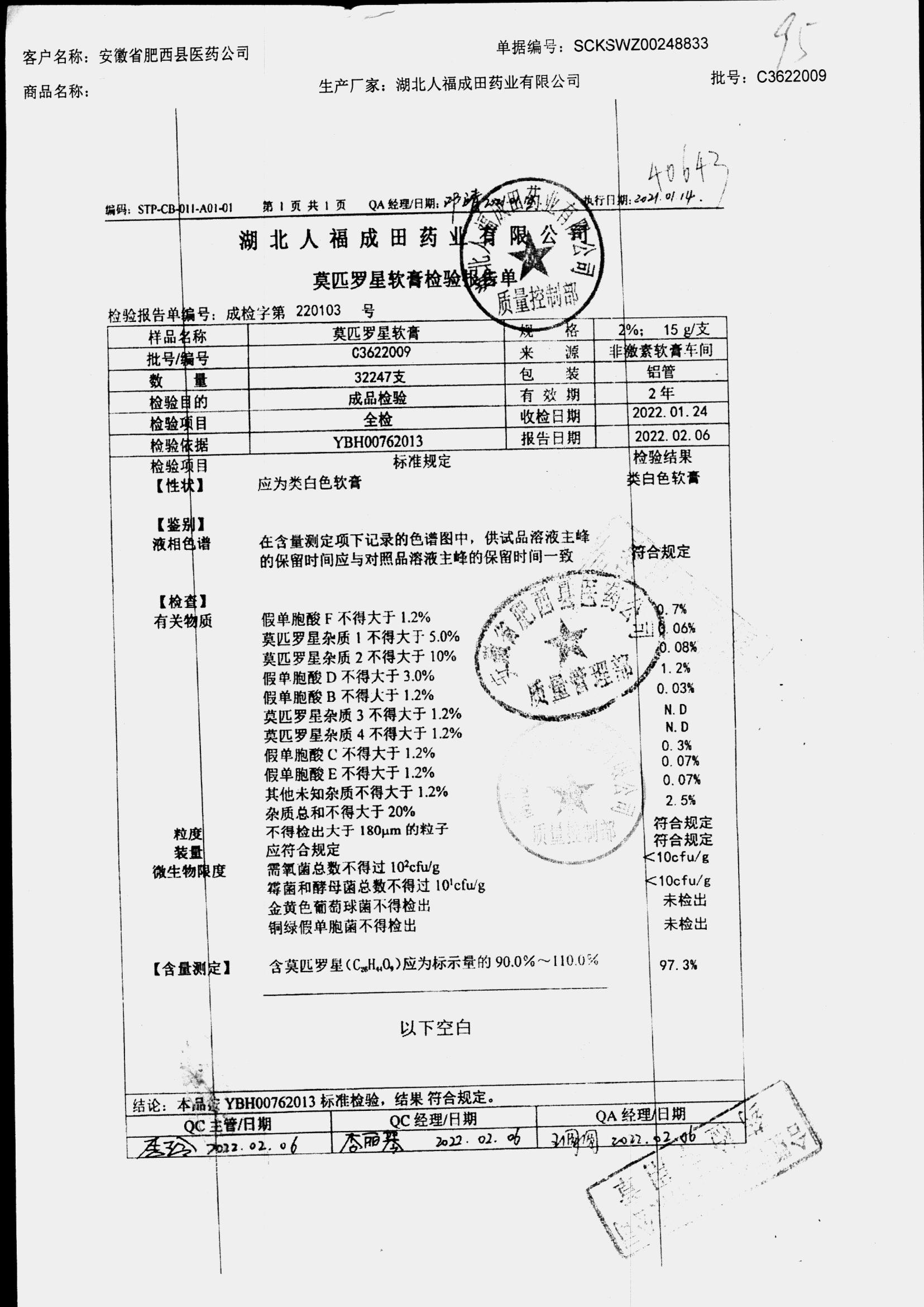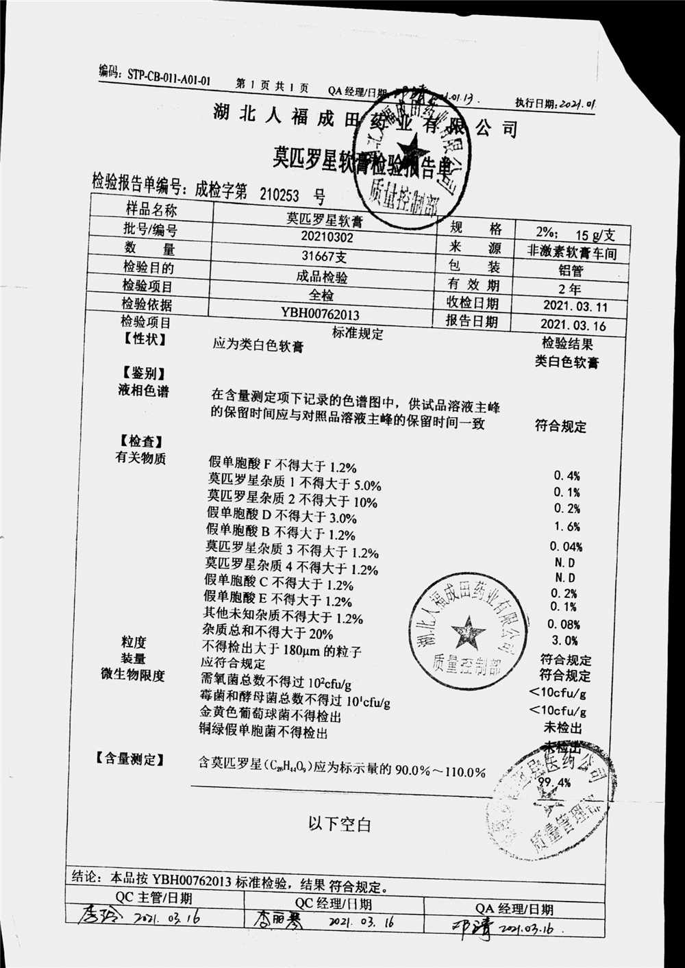 | 莫匹罗星软膏 | 15g | 20210302 | 查看详情 |