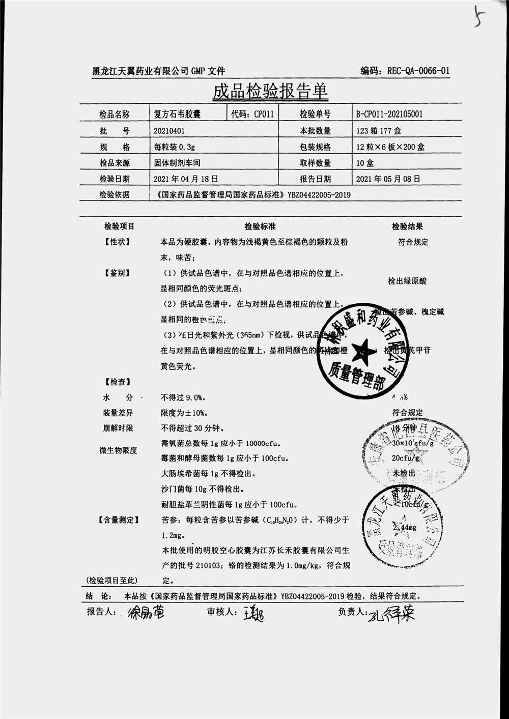 | 复方石韦胶囊 | 0.3g | 20210401 | 查看详情 |