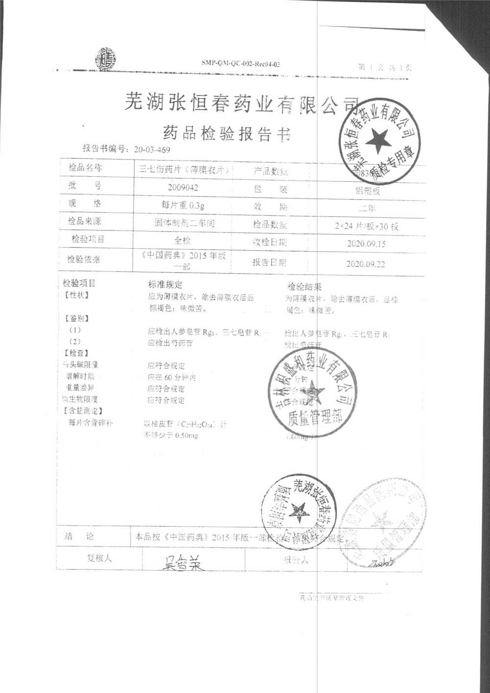 | 三七伤药片 | 0.3g | 2009042 | 查看详情 |