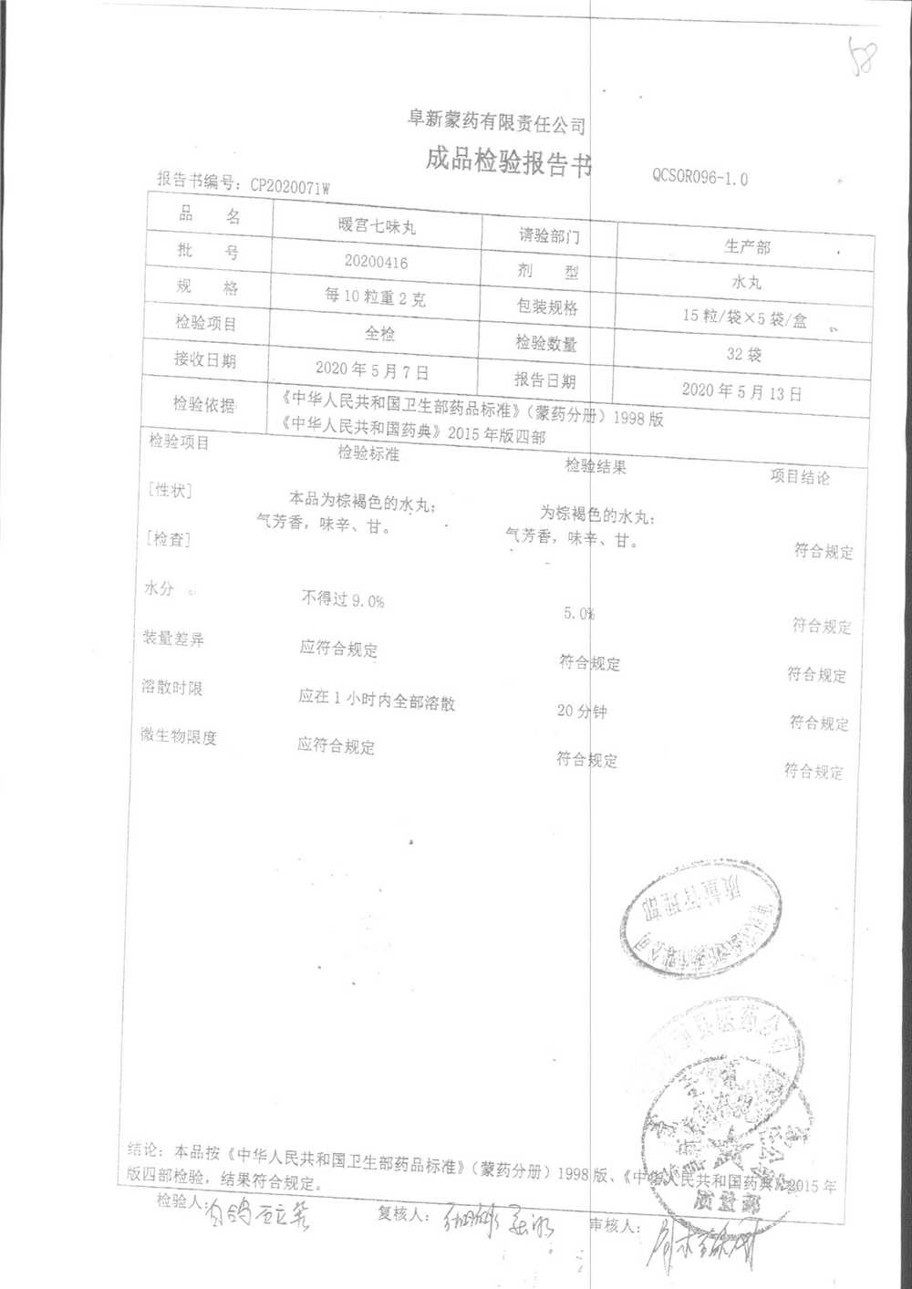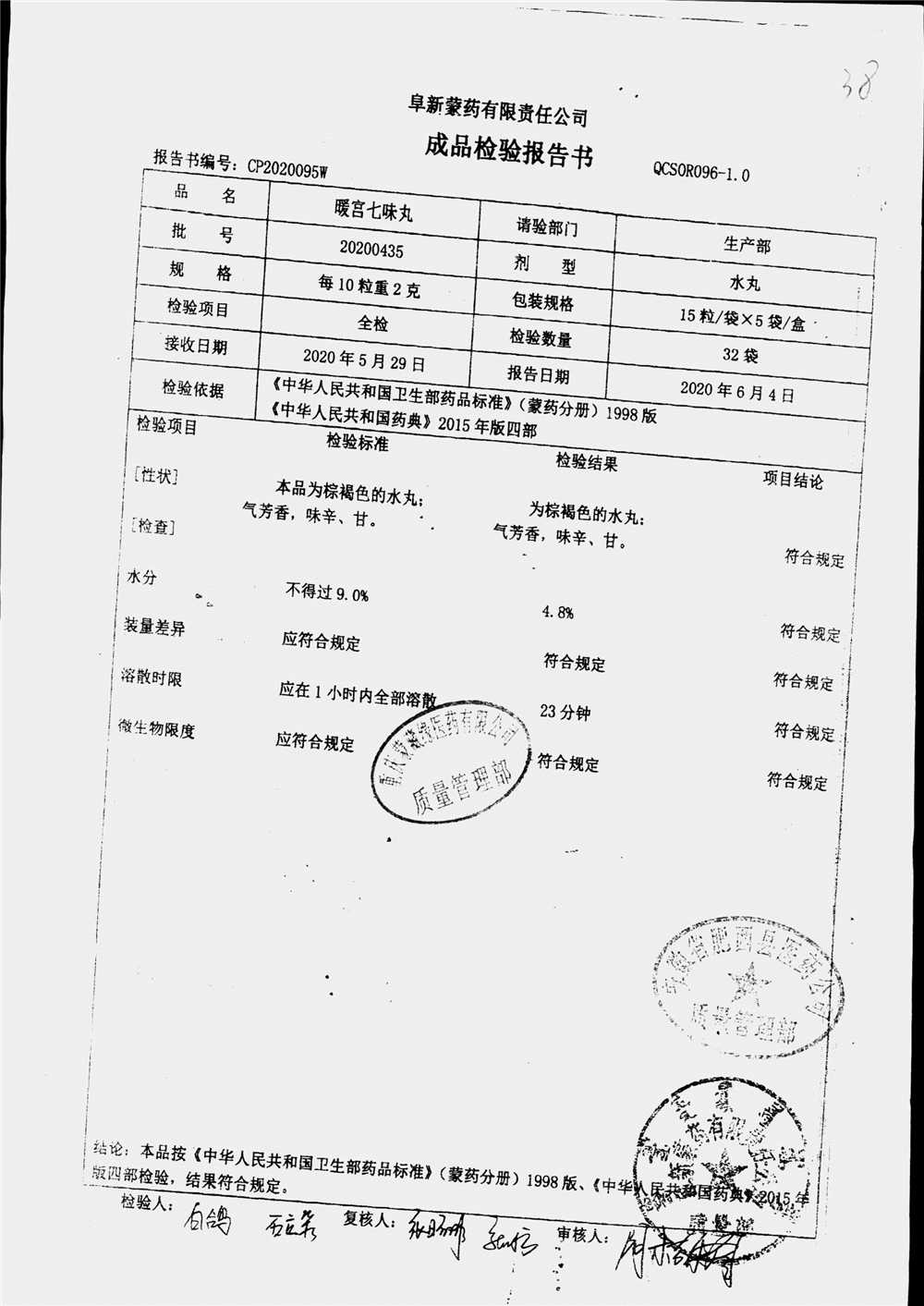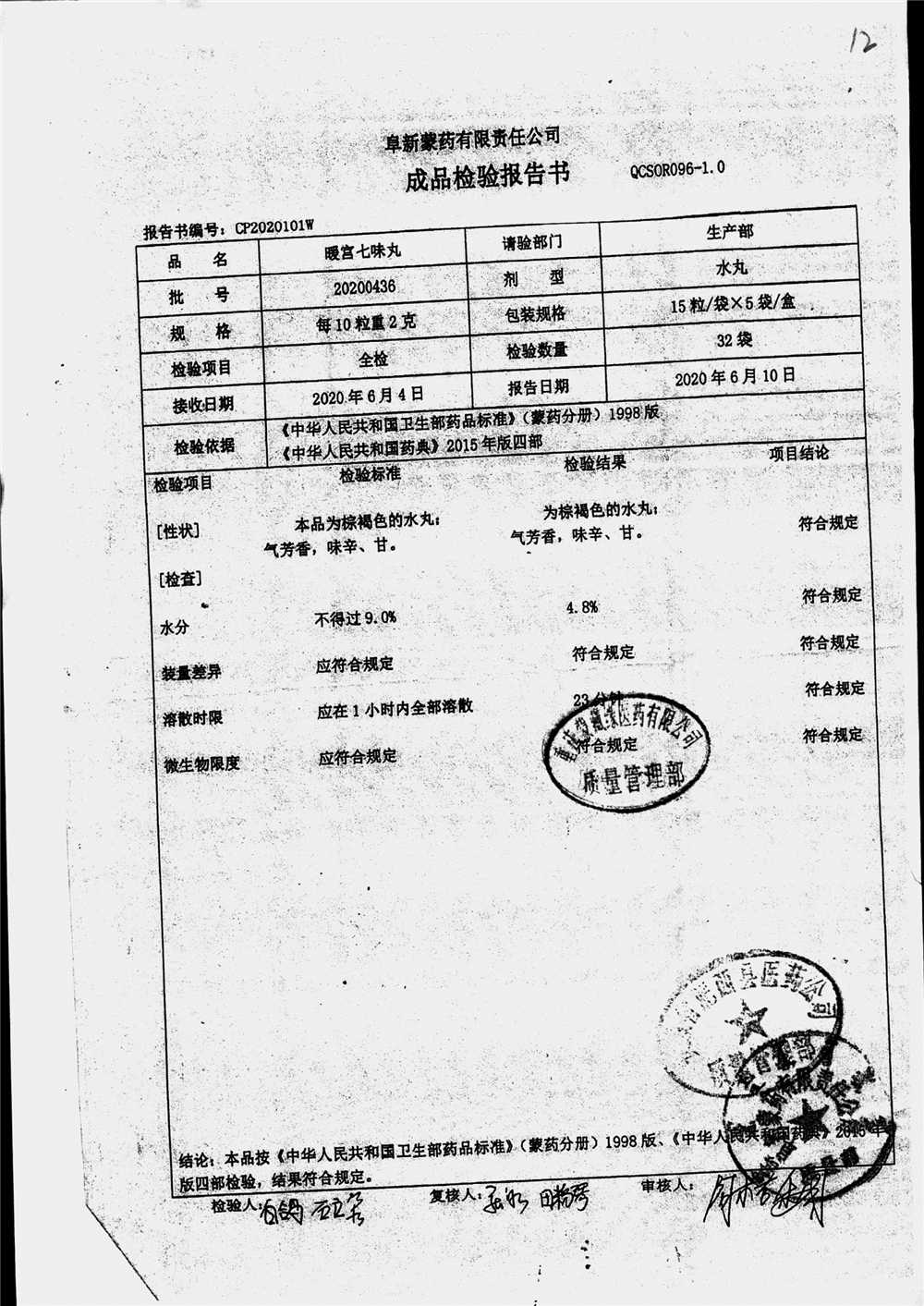 药检报告