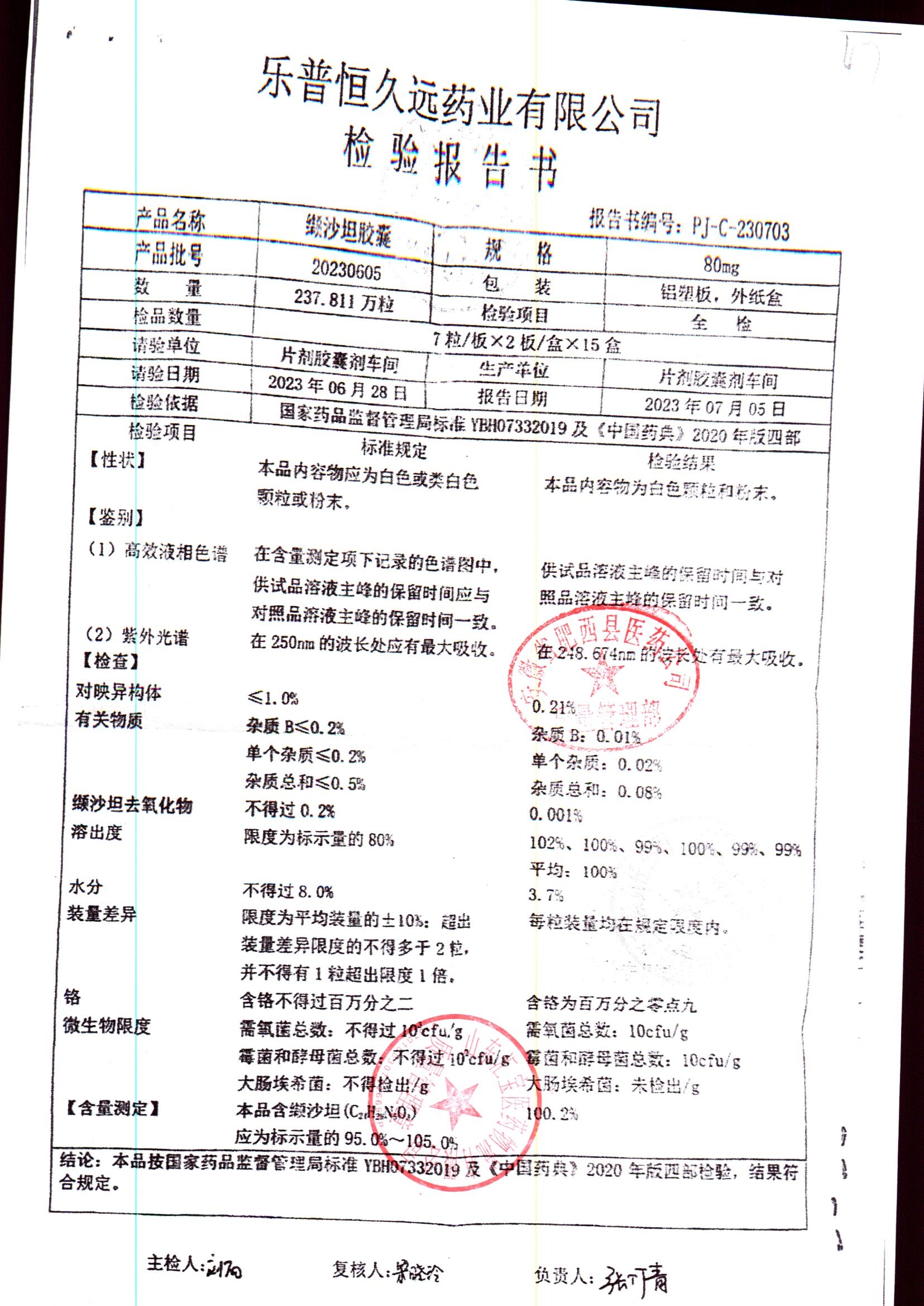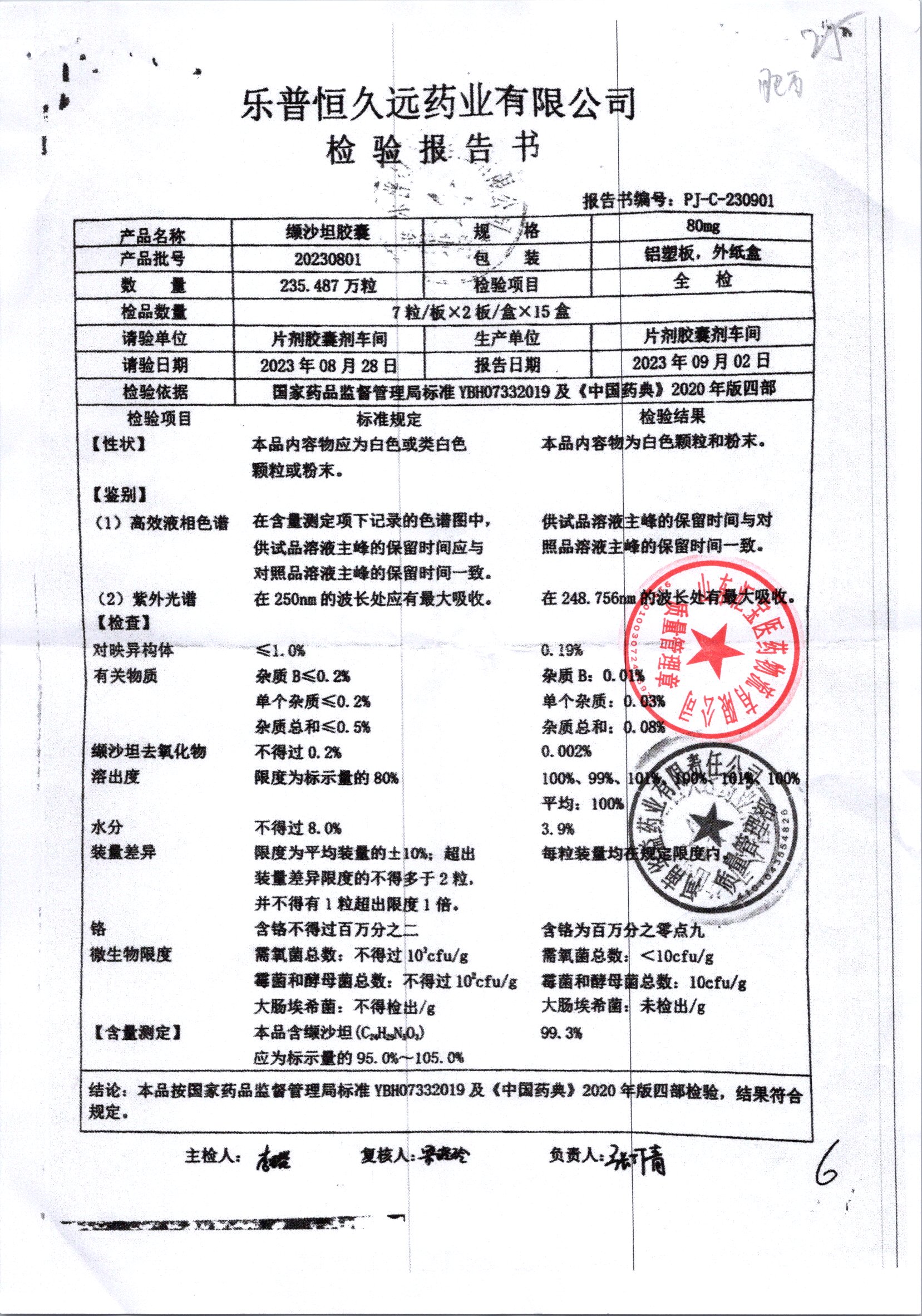 | 缬沙坦胶囊 | 80mg | 20230605 | 查看详情 |