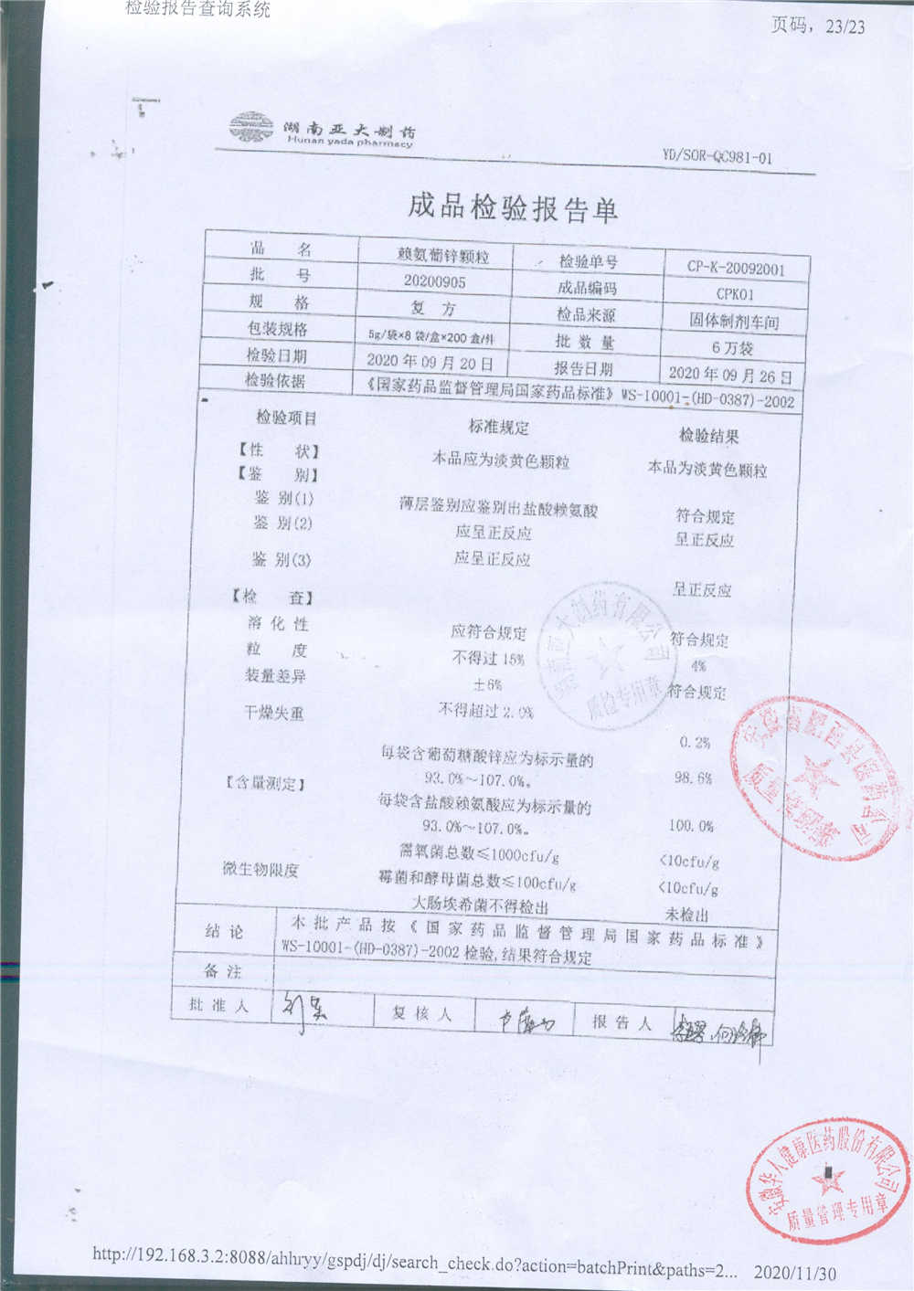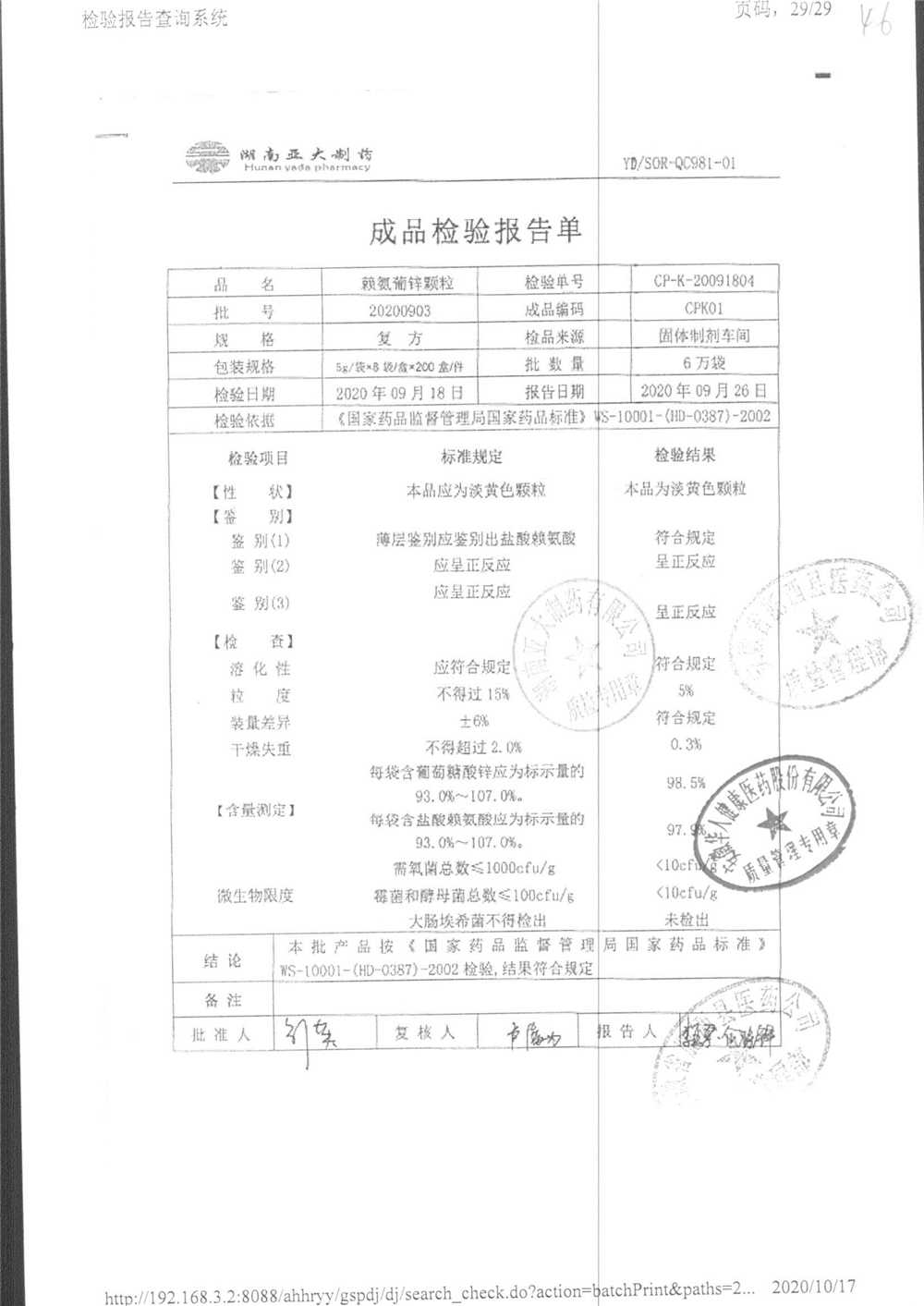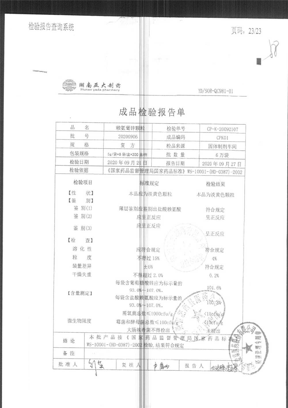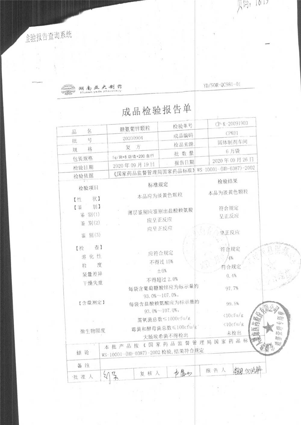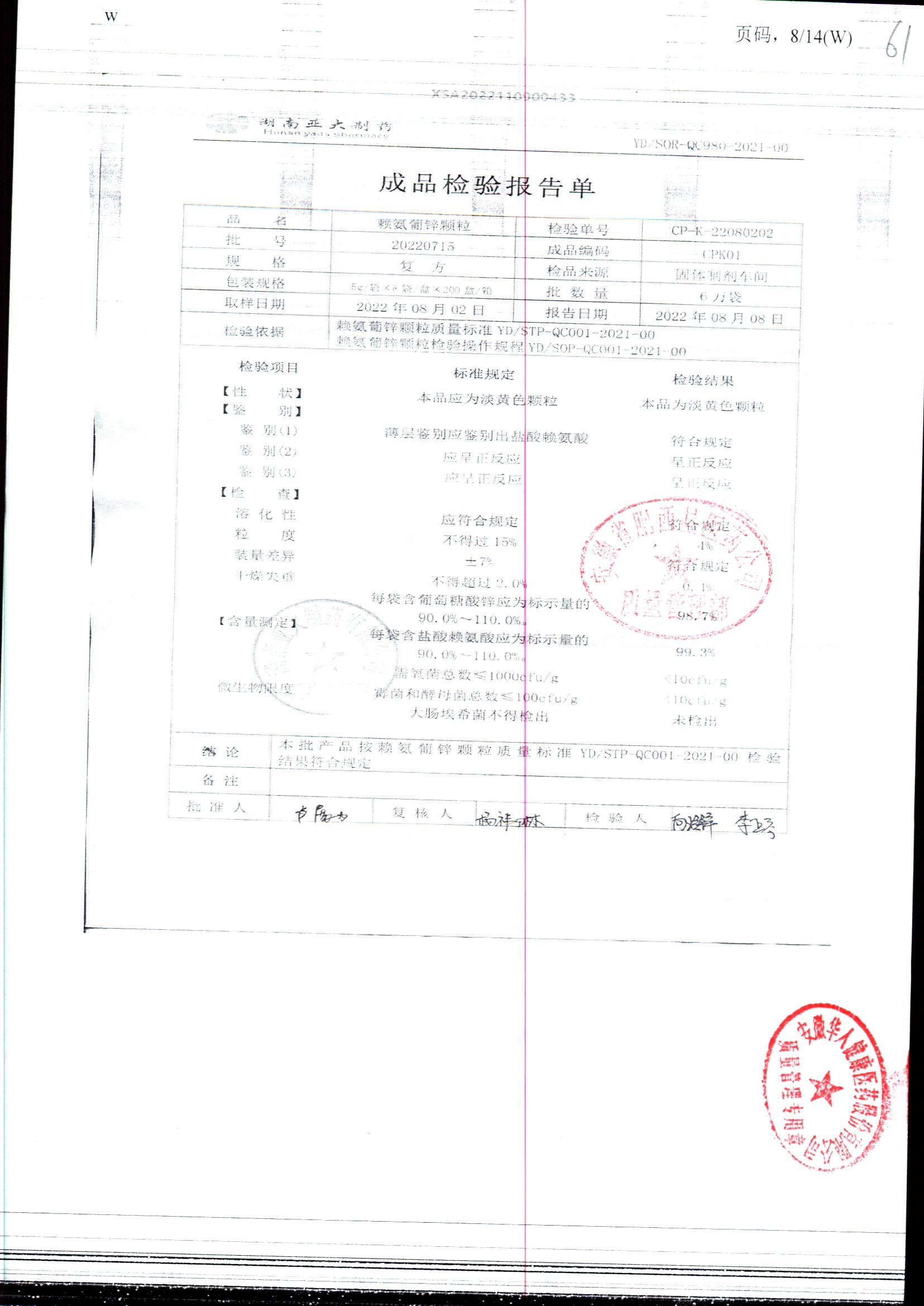 | 赖氨葡锌颗粒 | 5g*8袋 | 20200906 | 查看详情 |