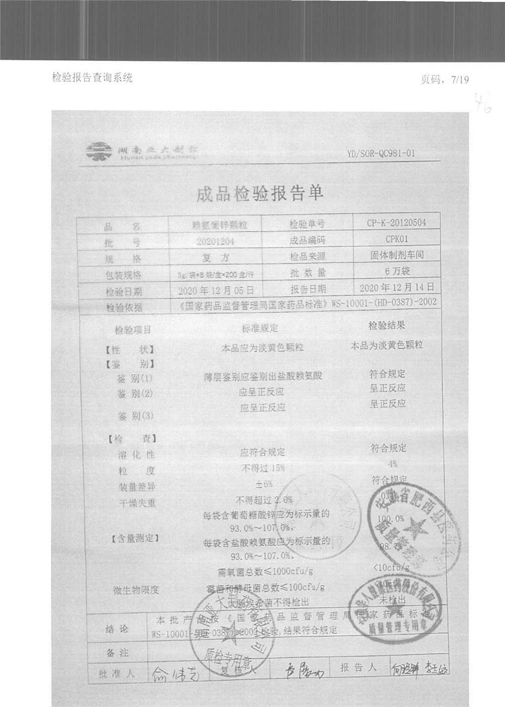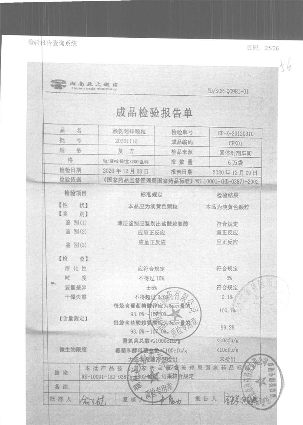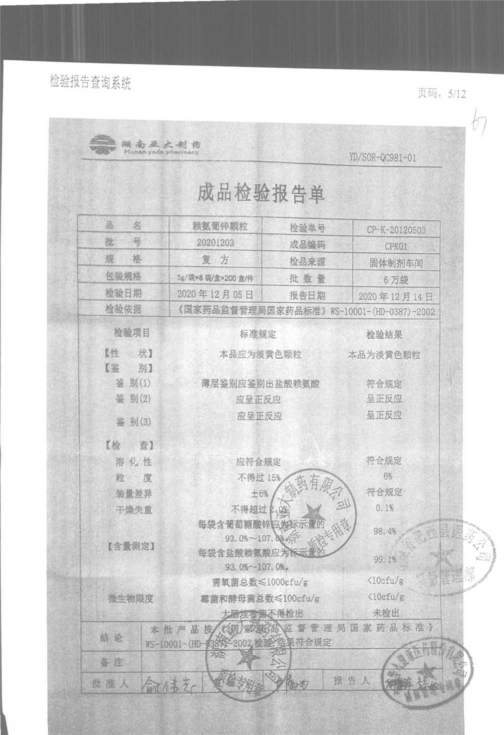 | 赖氨葡锌颗粒 | 5g*8袋 | 20201204 | 查看详情 |