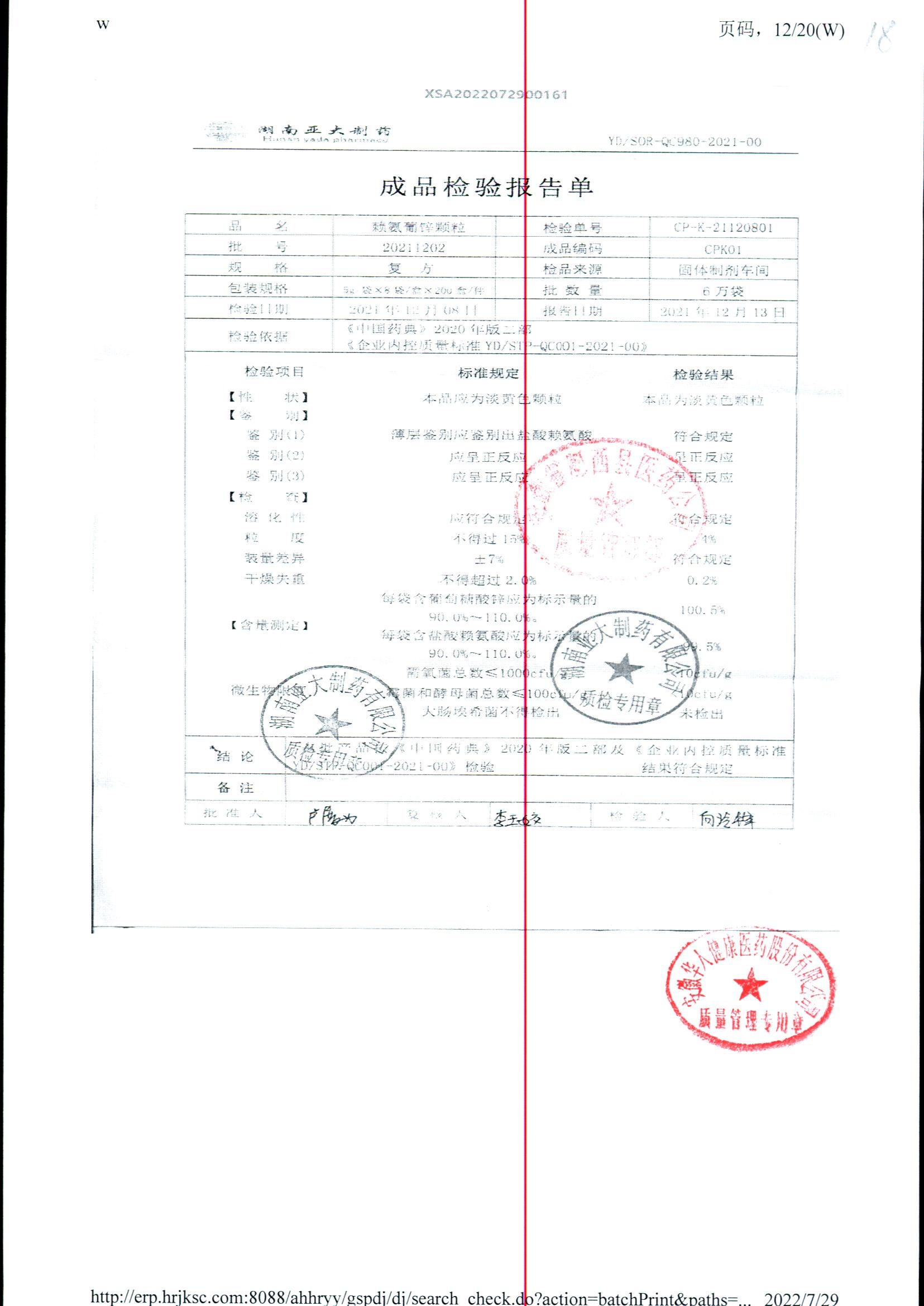 | 赖氨葡锌颗粒 | 5g*8袋 | 20211203 | 查看详情 |