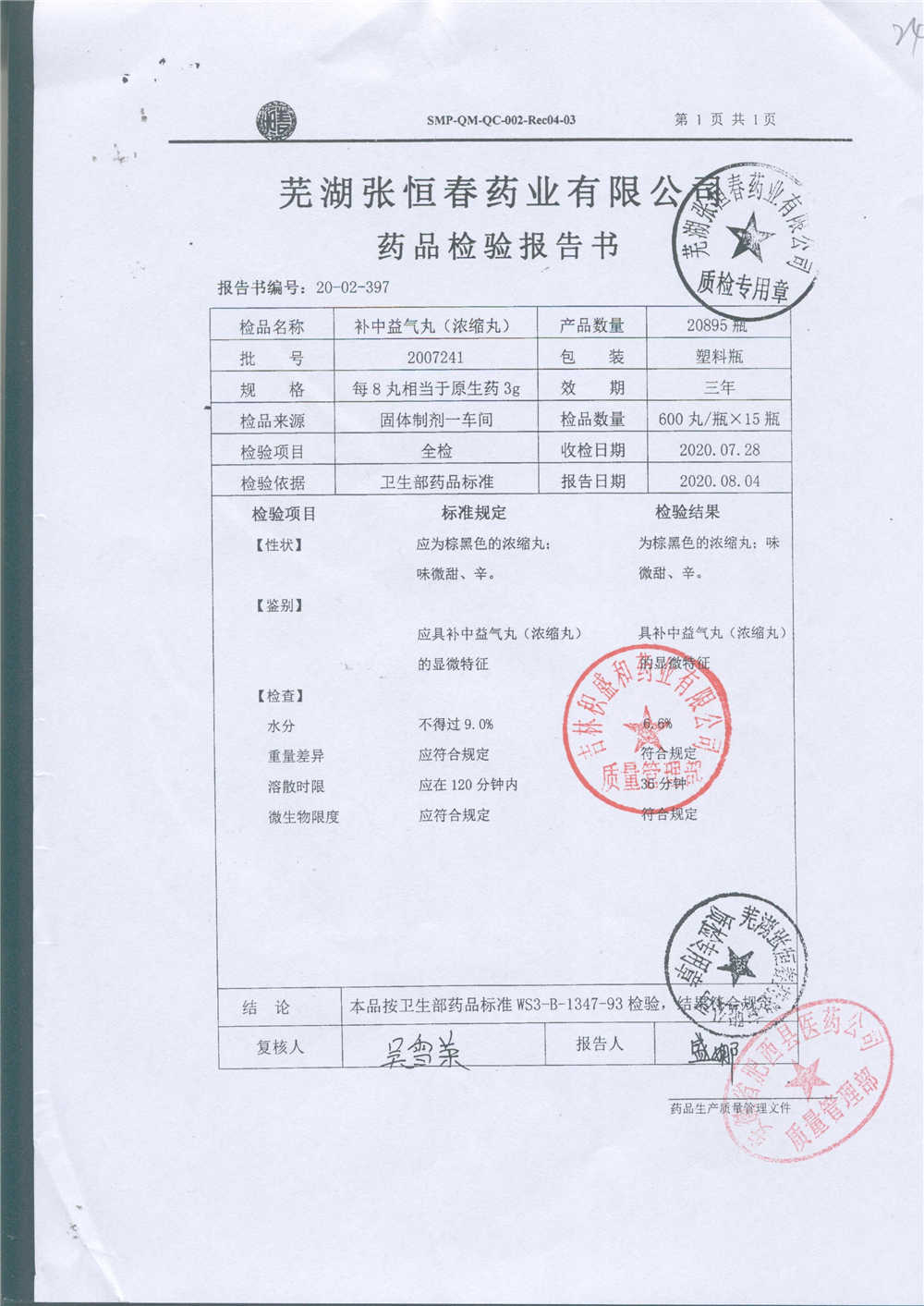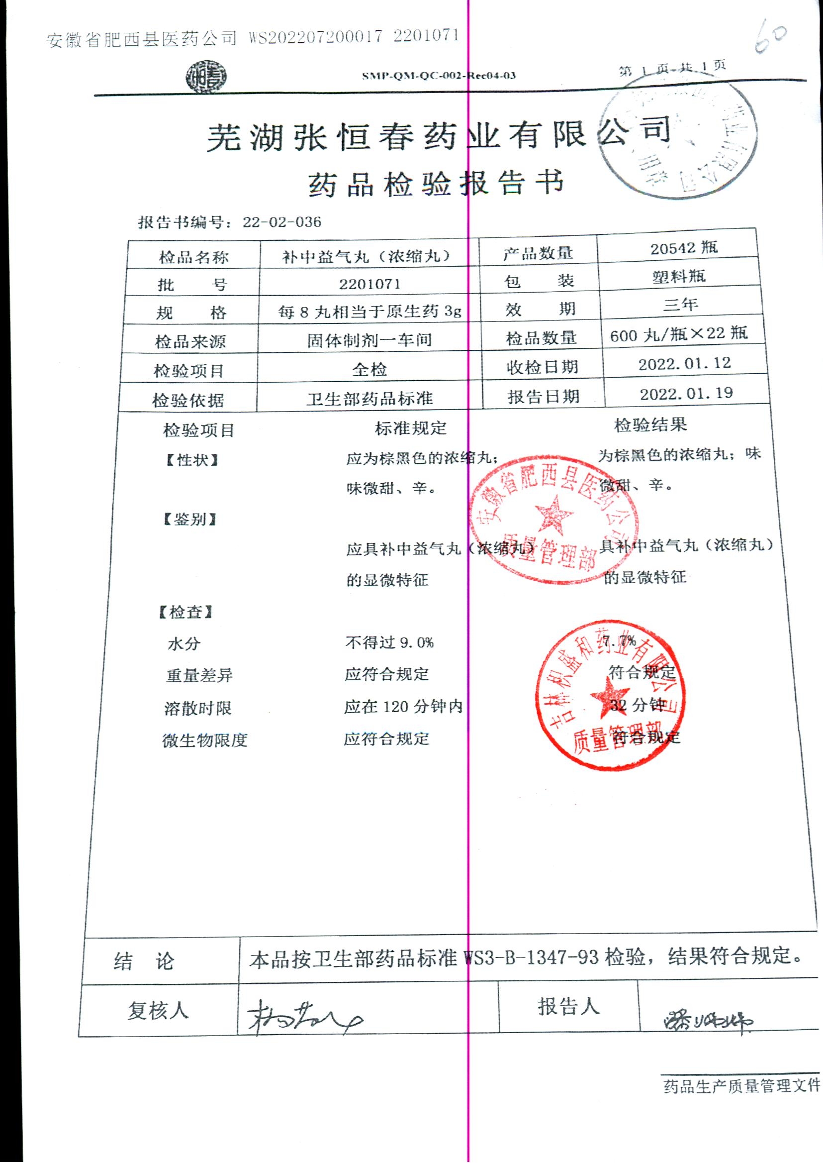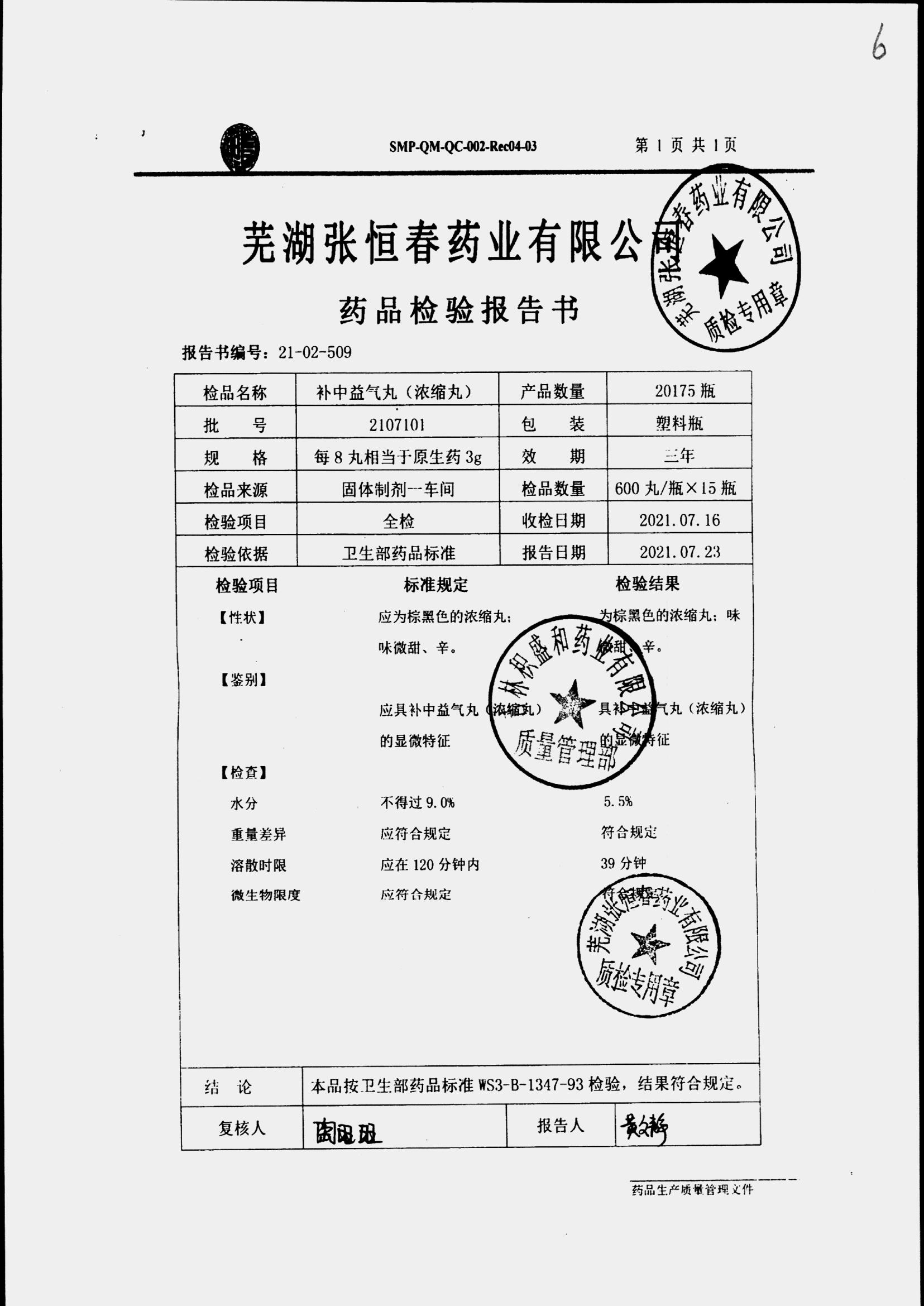 药检报告