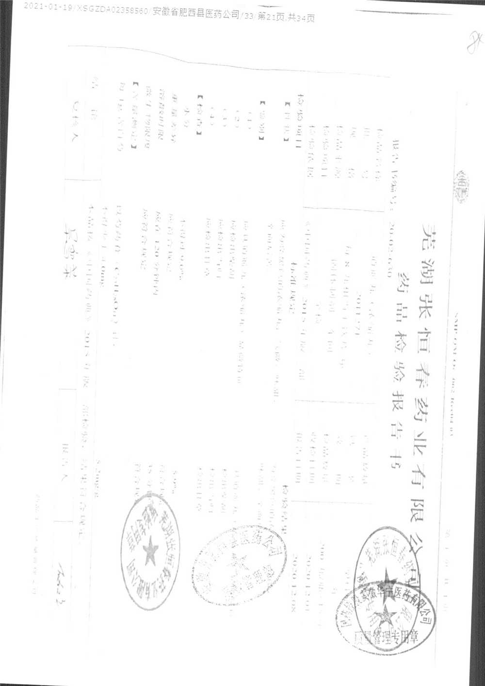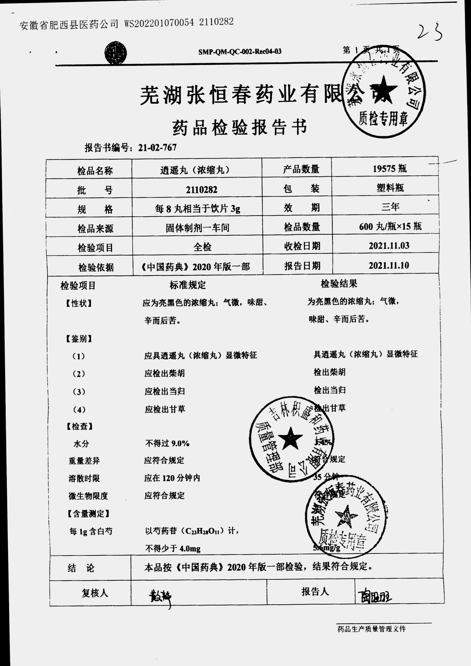 药检报告