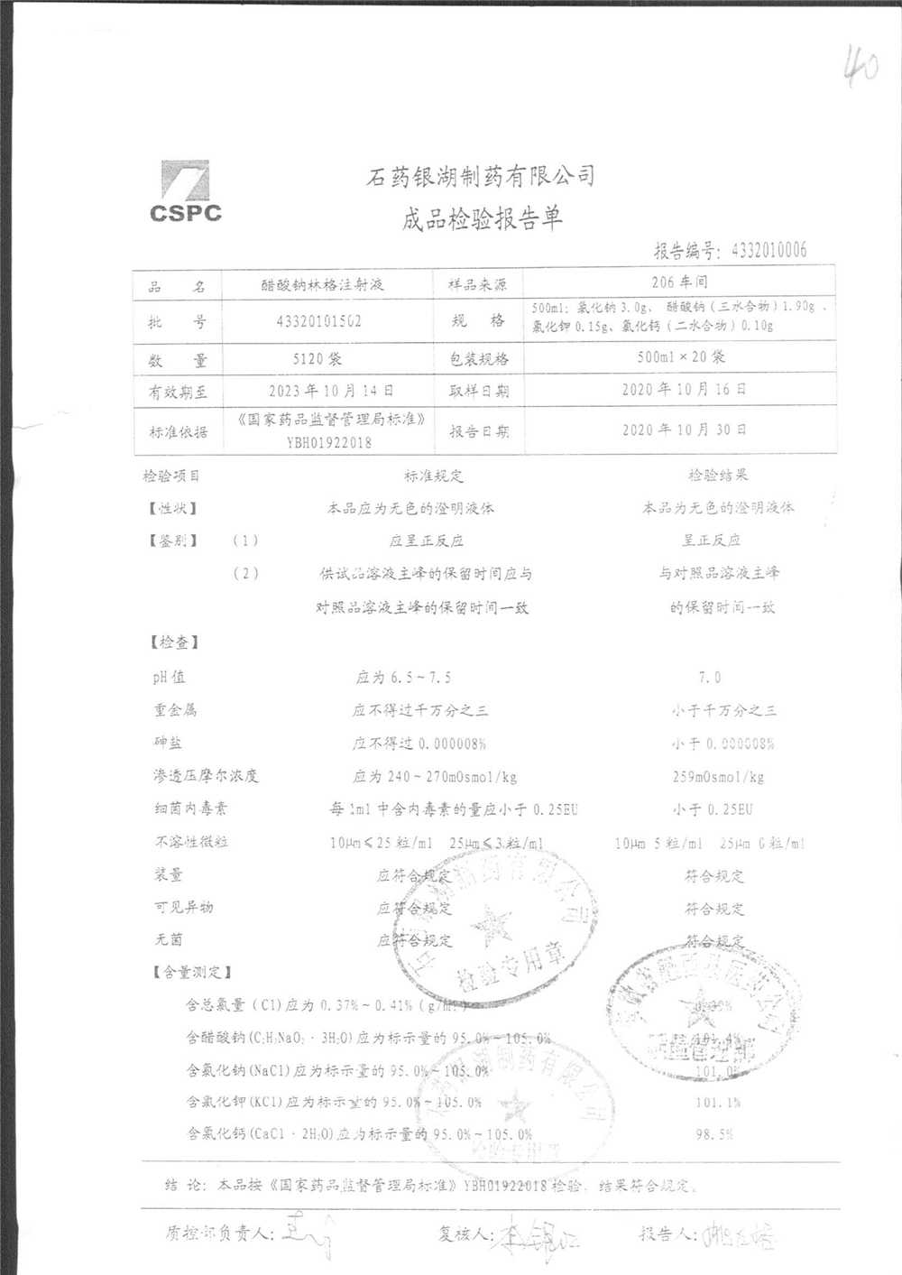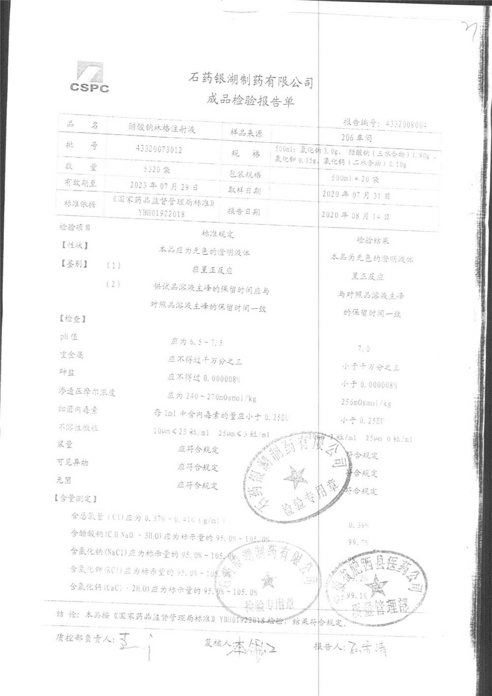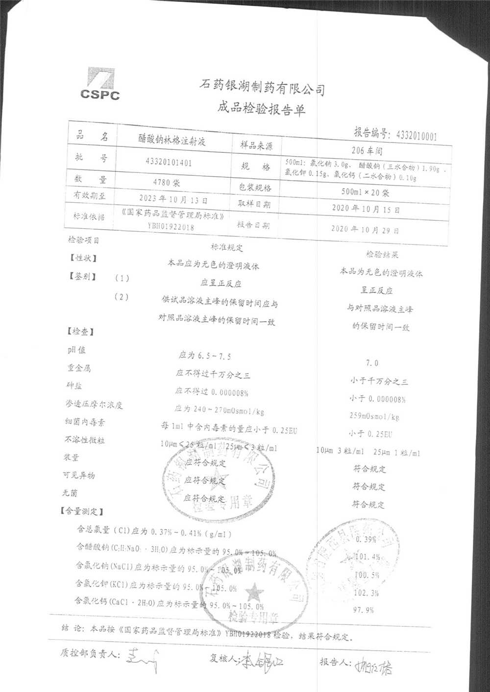 药检报告