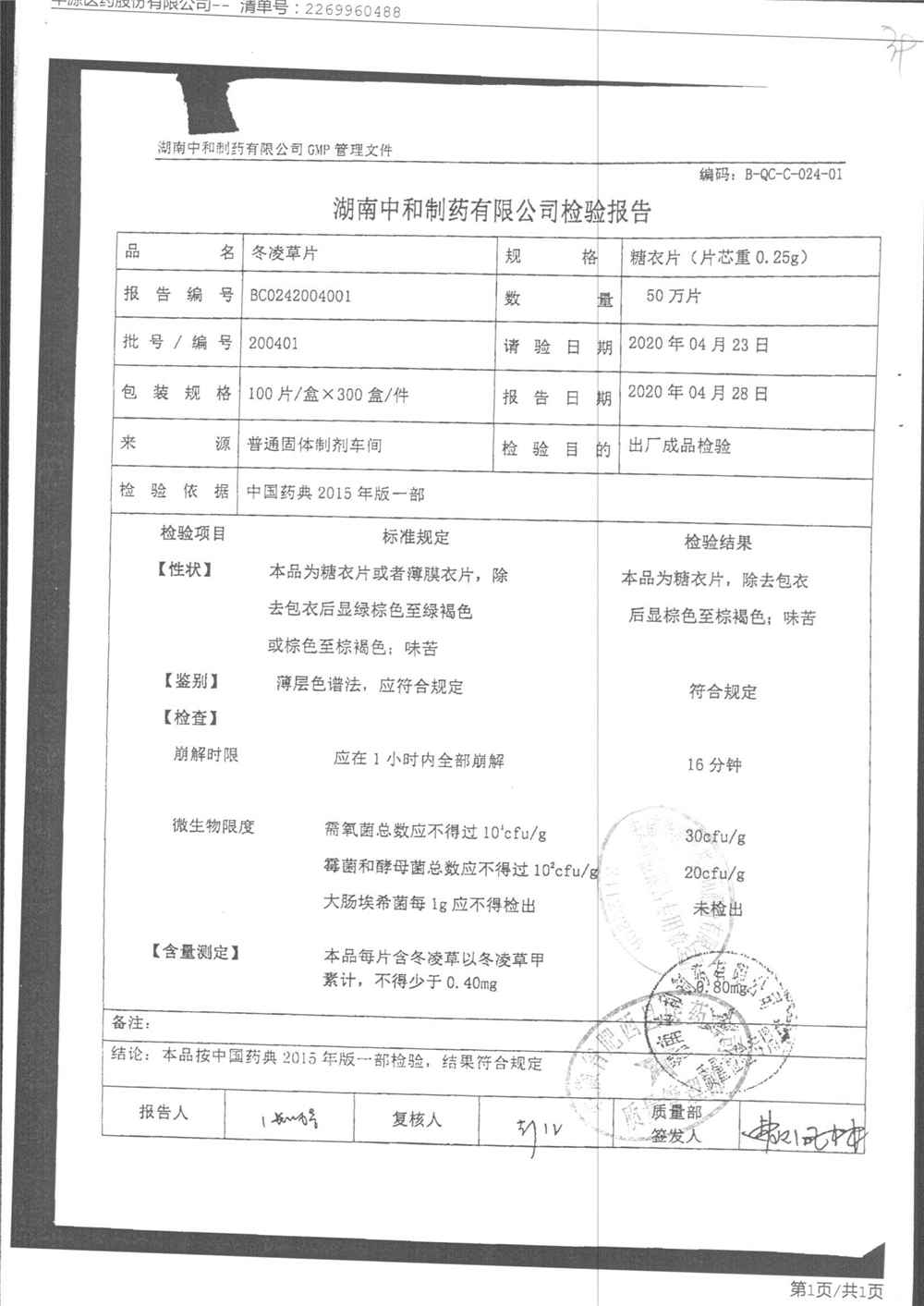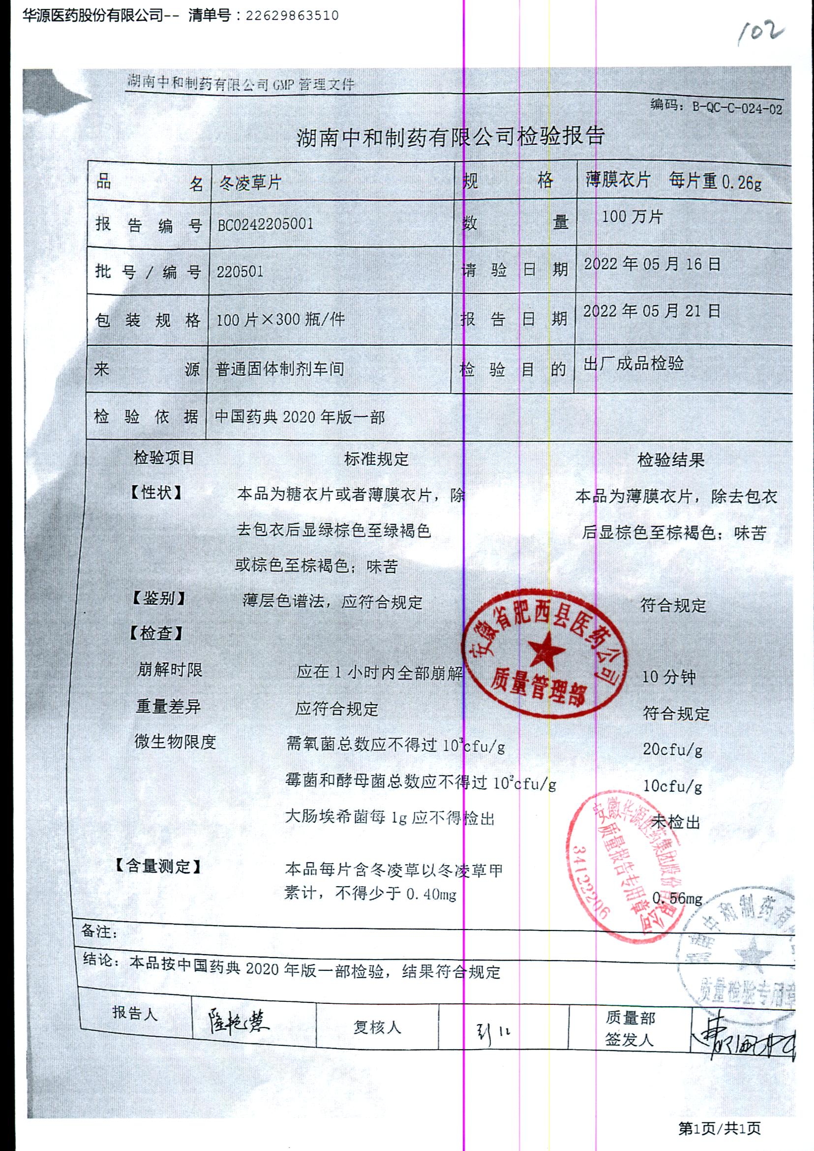 药检报告
