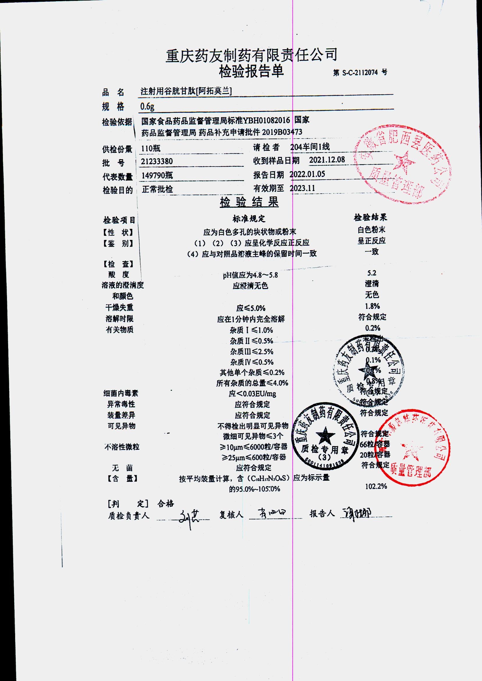 | 注射用谷胱甘肽 | 0.6g | 20232240 | 查看详情 |