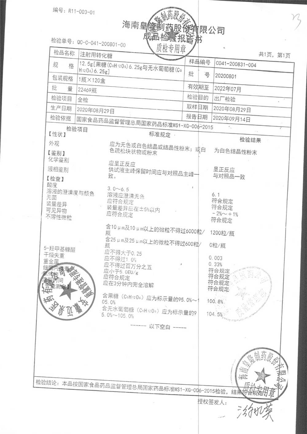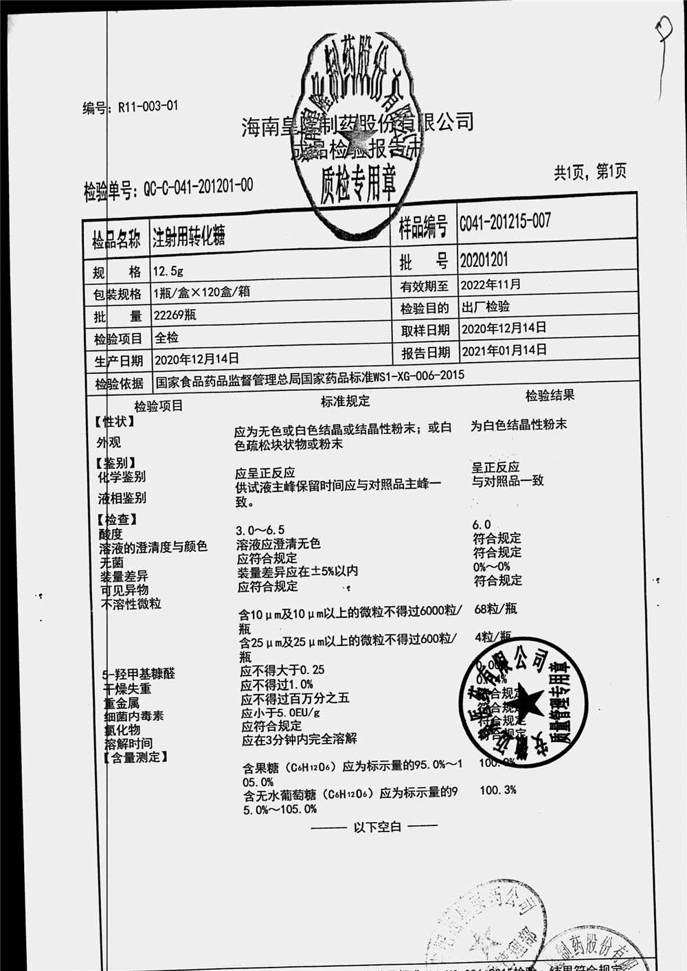 | 注射用转化糖 | 12.5g | 20201201 | 查看详情 |