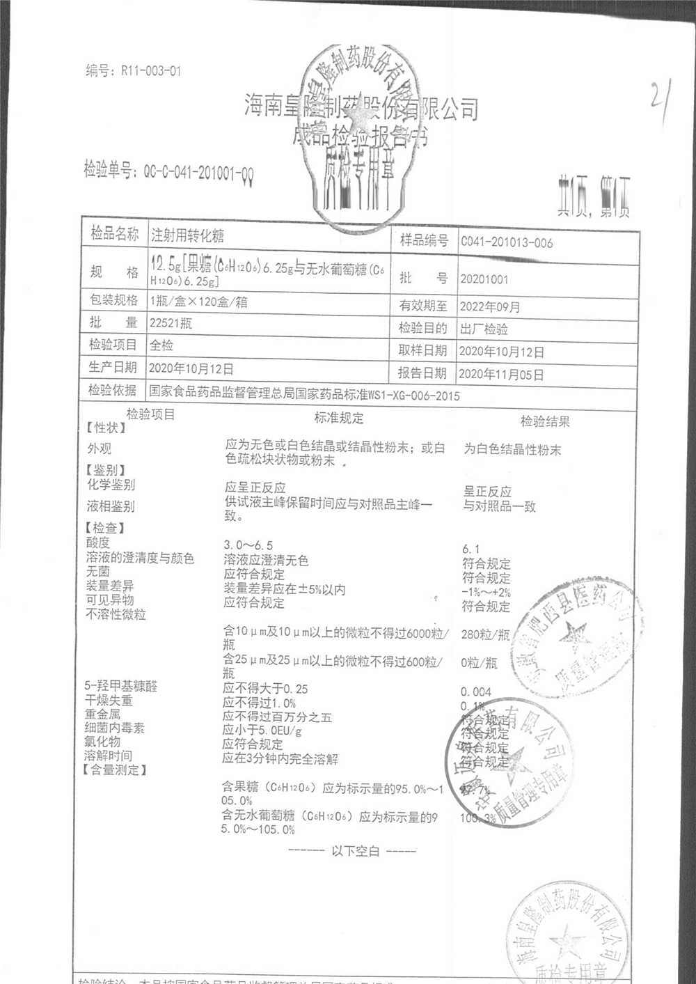 | 注射用转化糖 | 12.5g | 20201001 | 查看详情 |