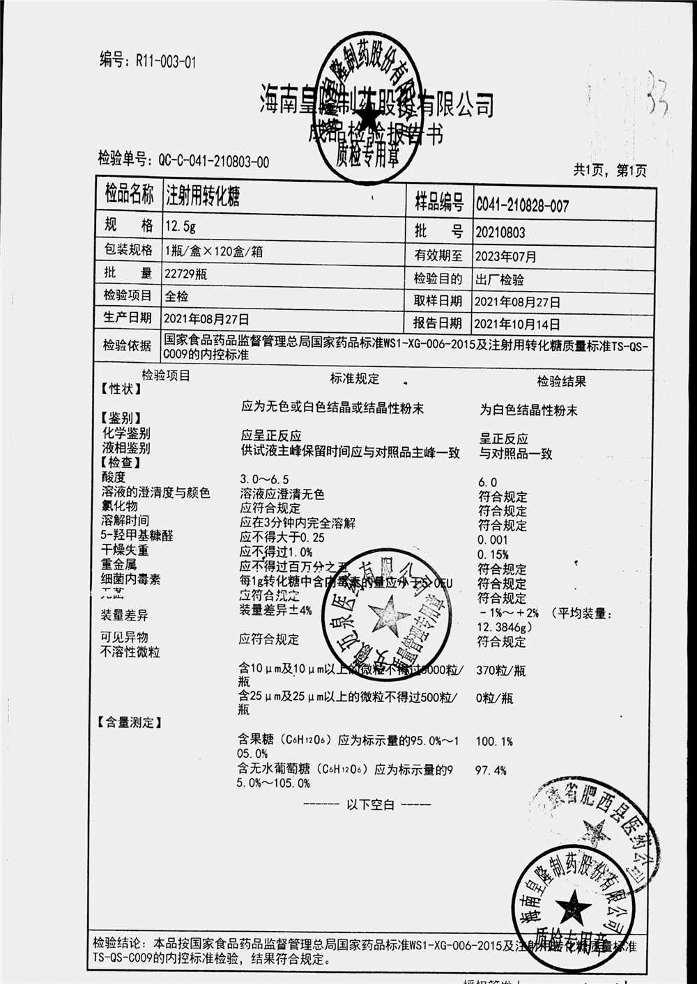 | 注射用转化糖 | 12.5g | 20210803 | 查看详情 |