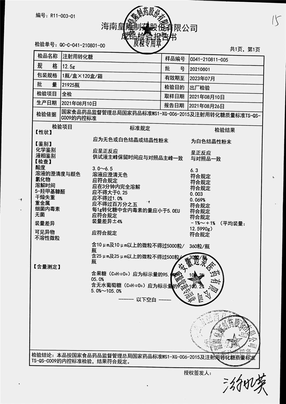 | 注射用转化糖 | 12.5g | 20210801 | 查看详情 |