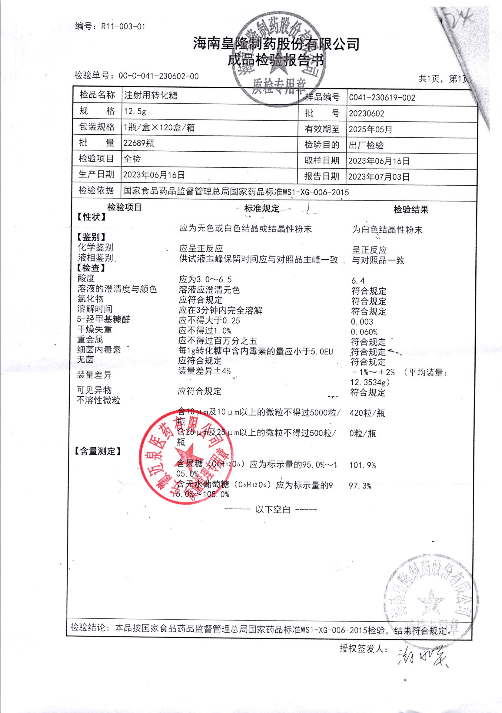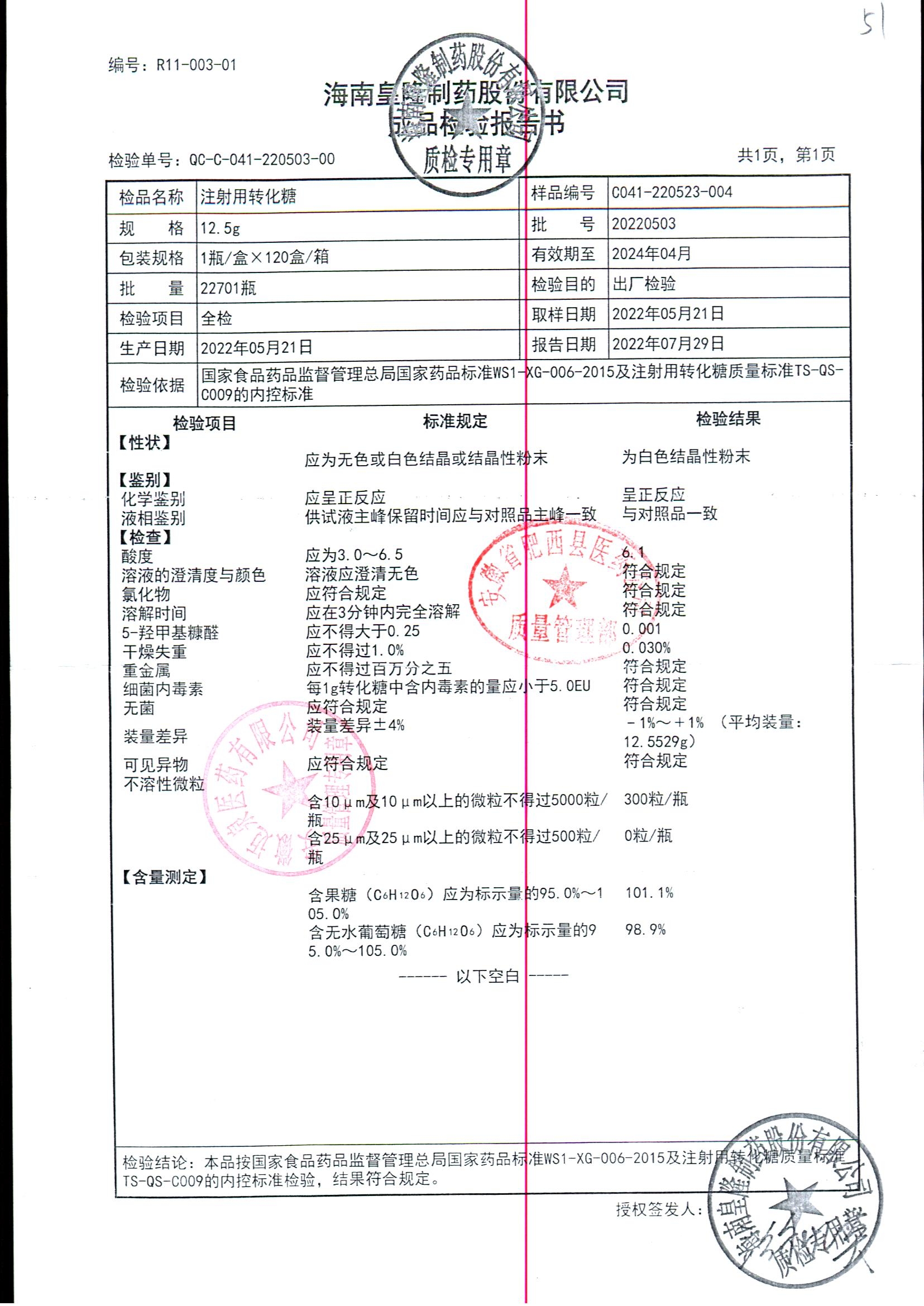 | 注射用转化糖 | 12.5g | 20220503 | 查看详情 |
