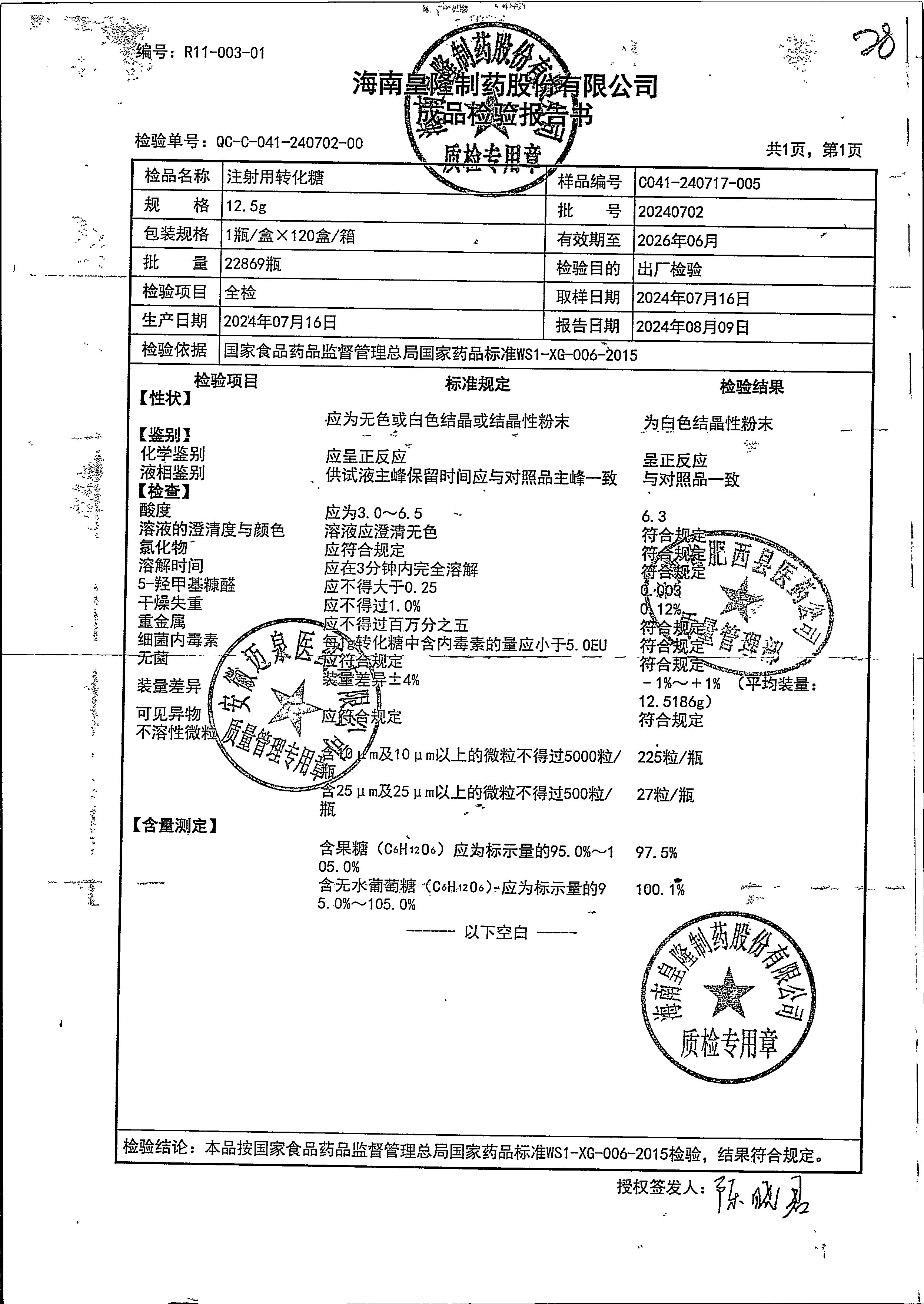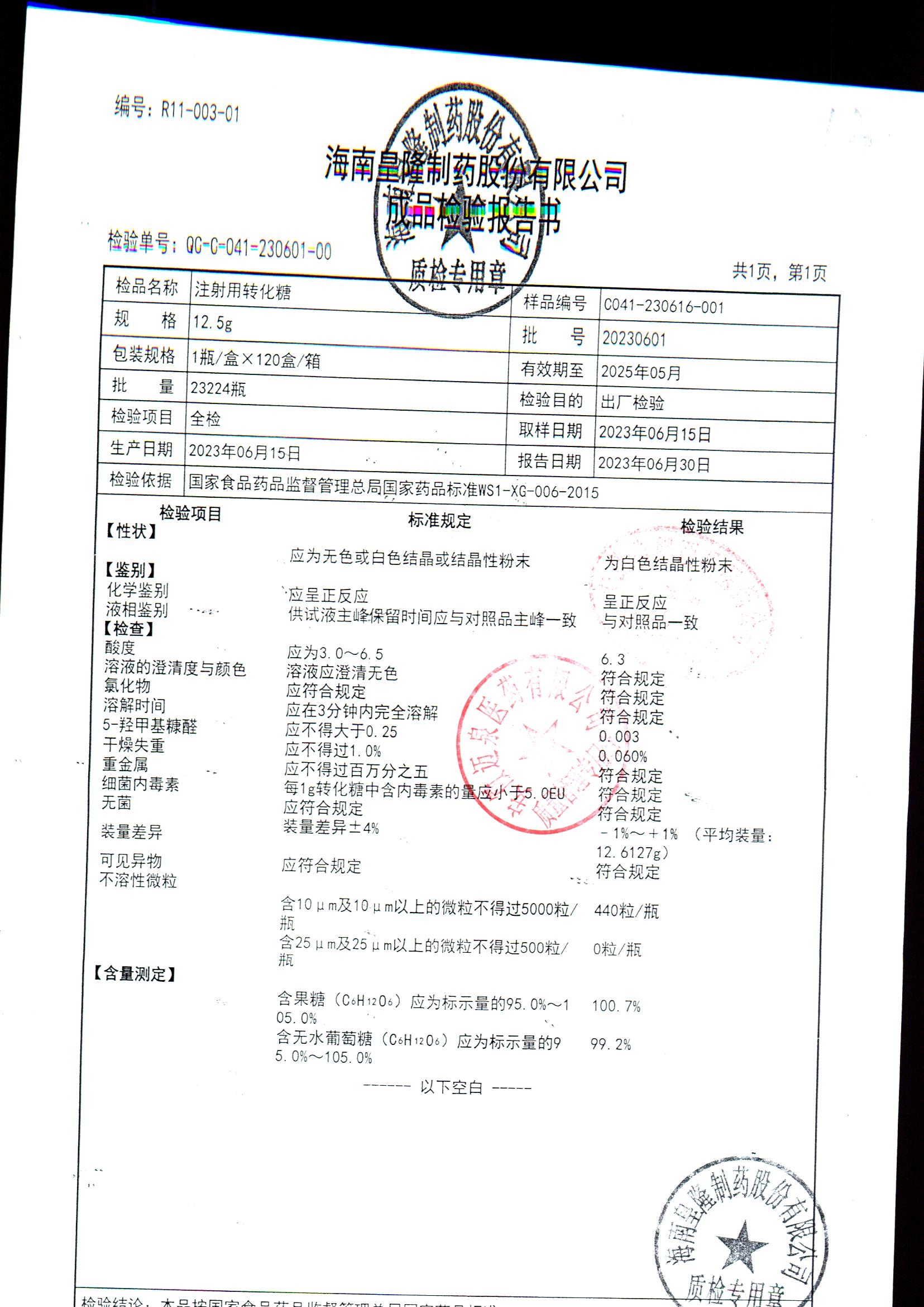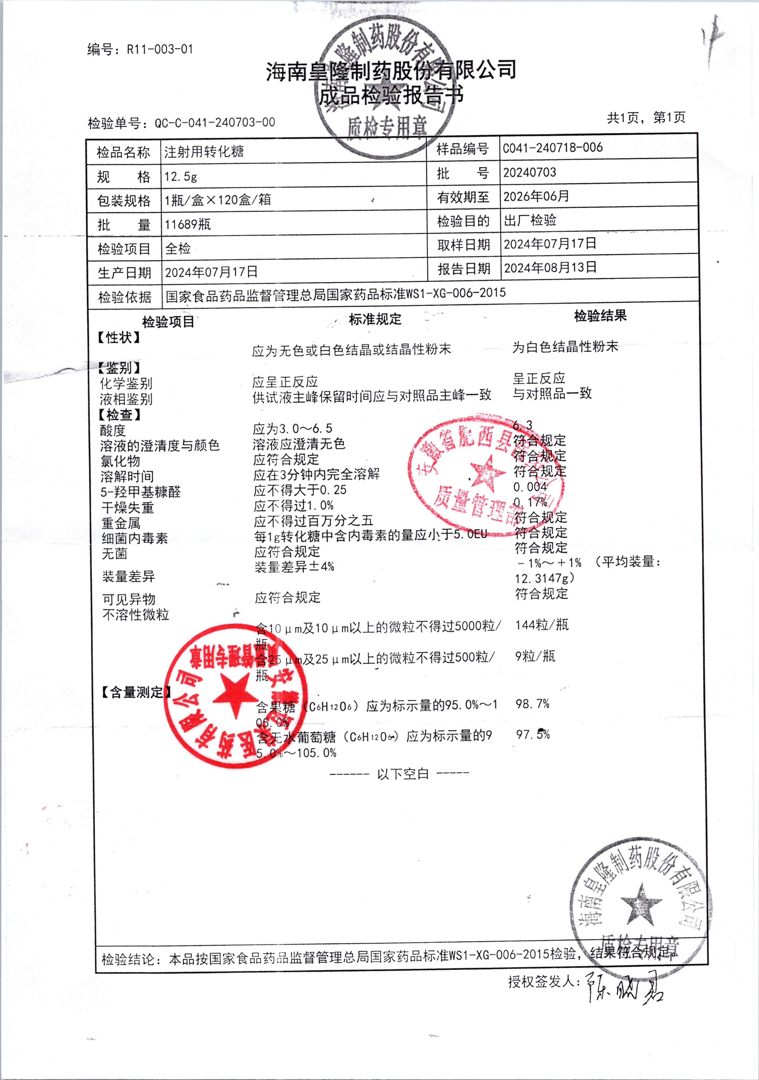 | 注射用转化糖 | 12.5g | 20240703 | 查看详情 |