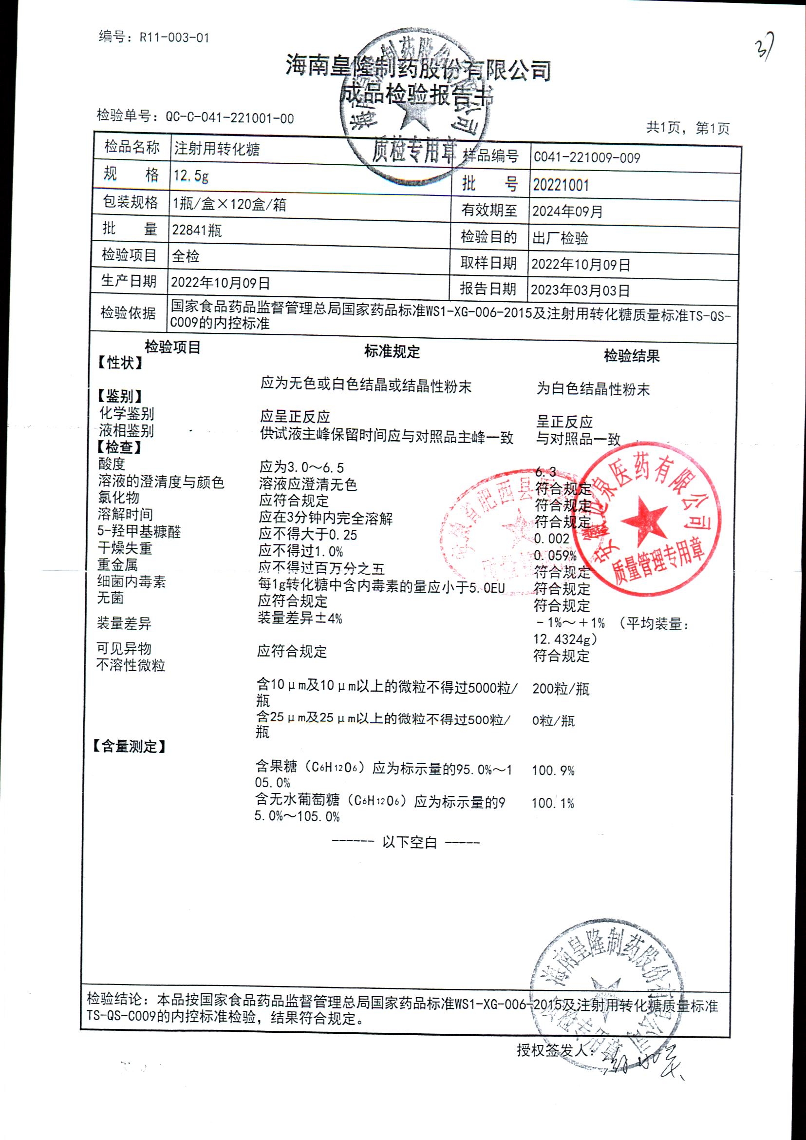 | 注射用转化糖 | 12.5g | 20221001 | 查看详情 |