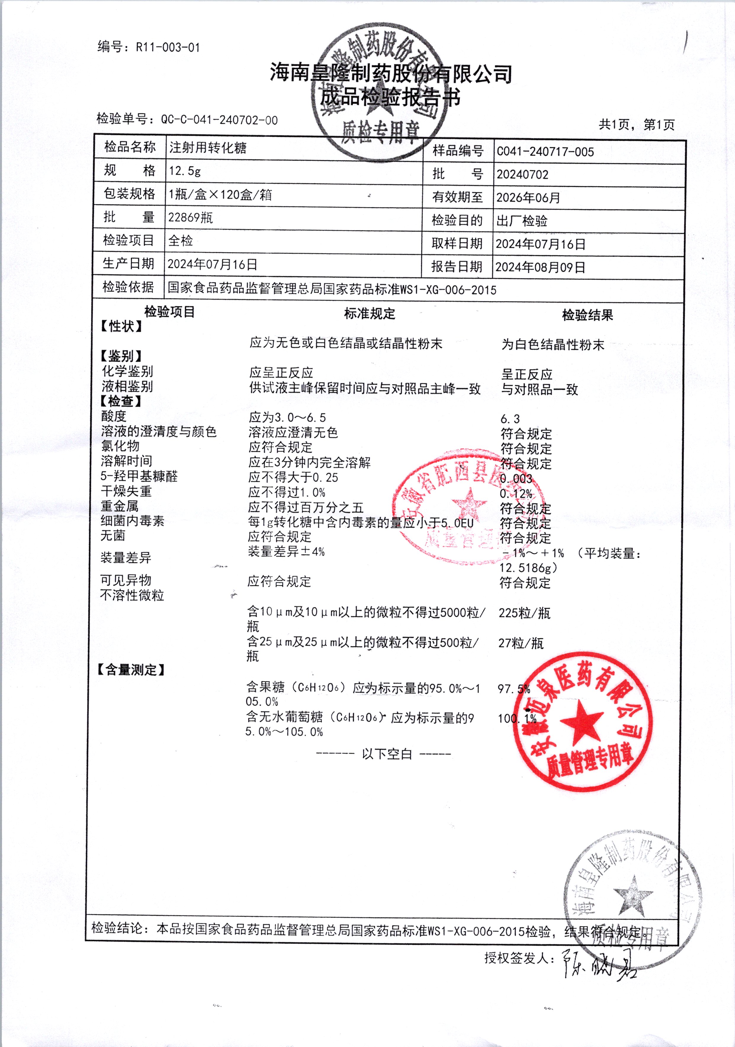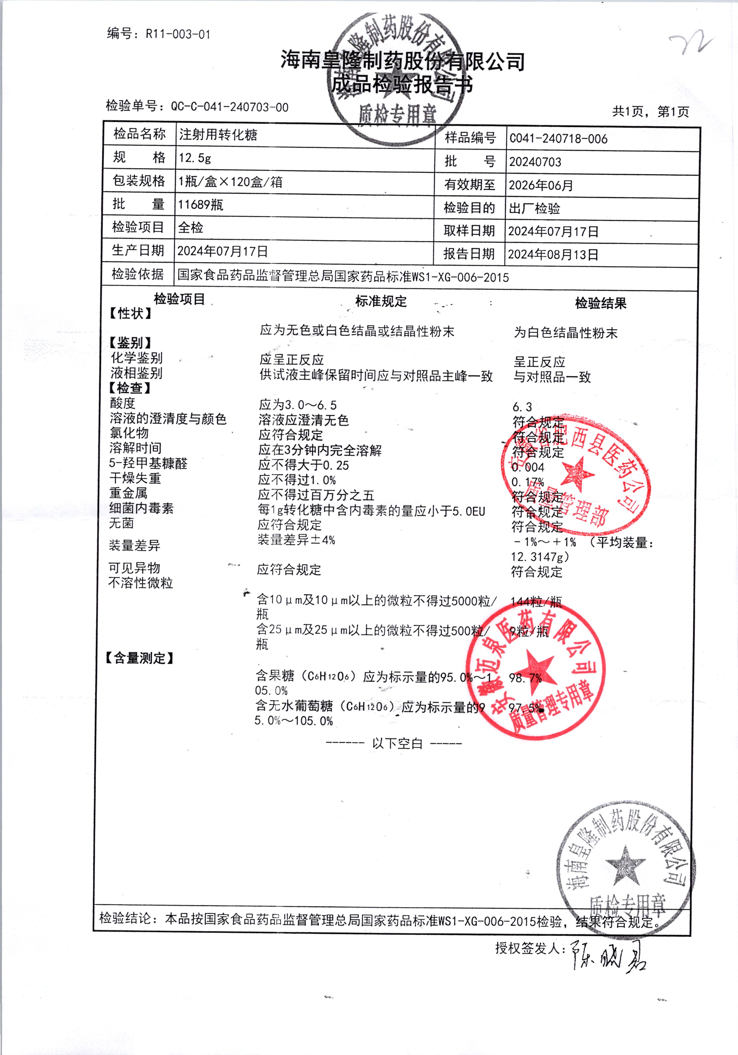 | 注射用转化糖 | 12.5g | 20240702 | 查看详情 |