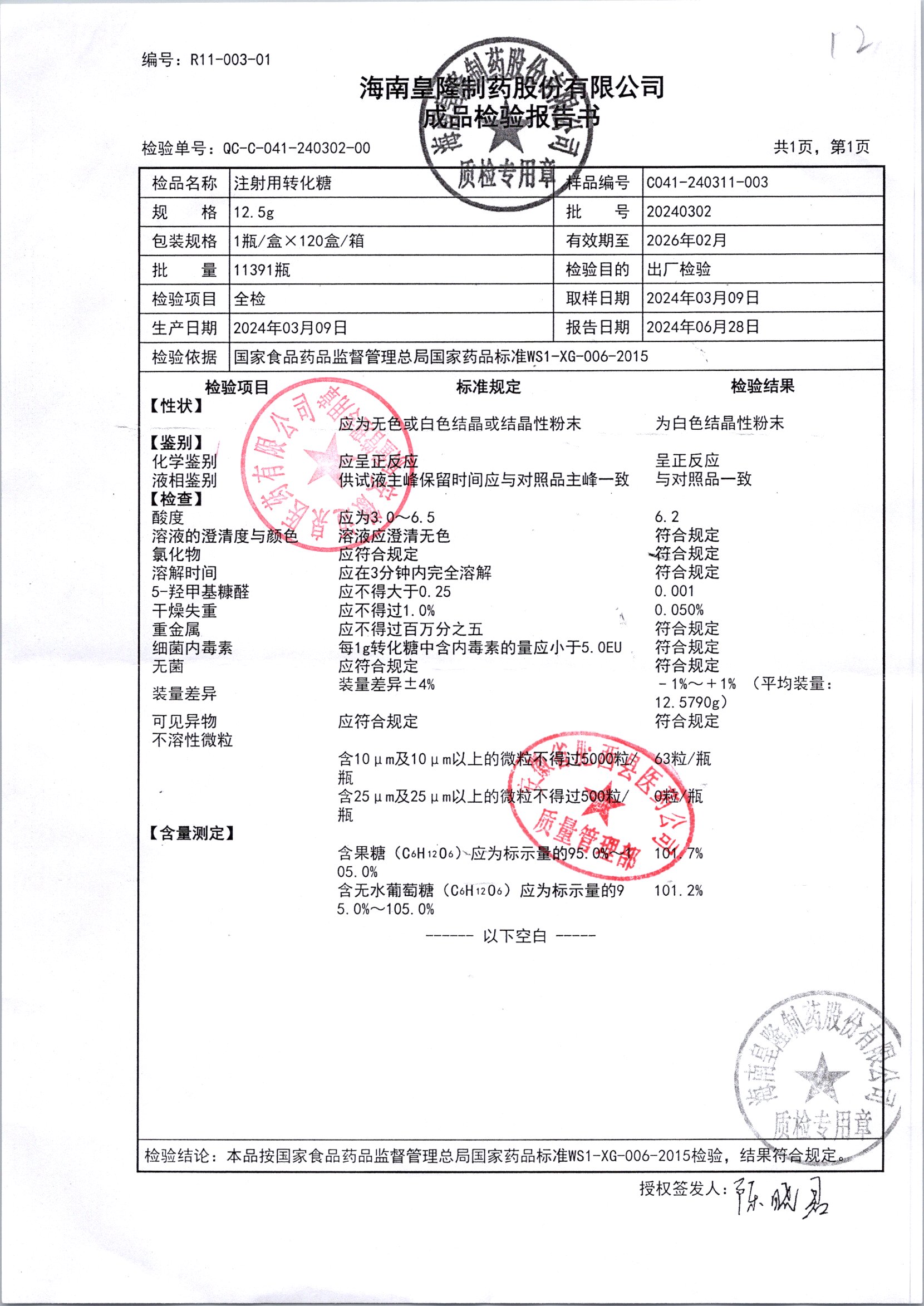 | 注射用转化糖 | 12.5g | 20240302 | 查看详情 |