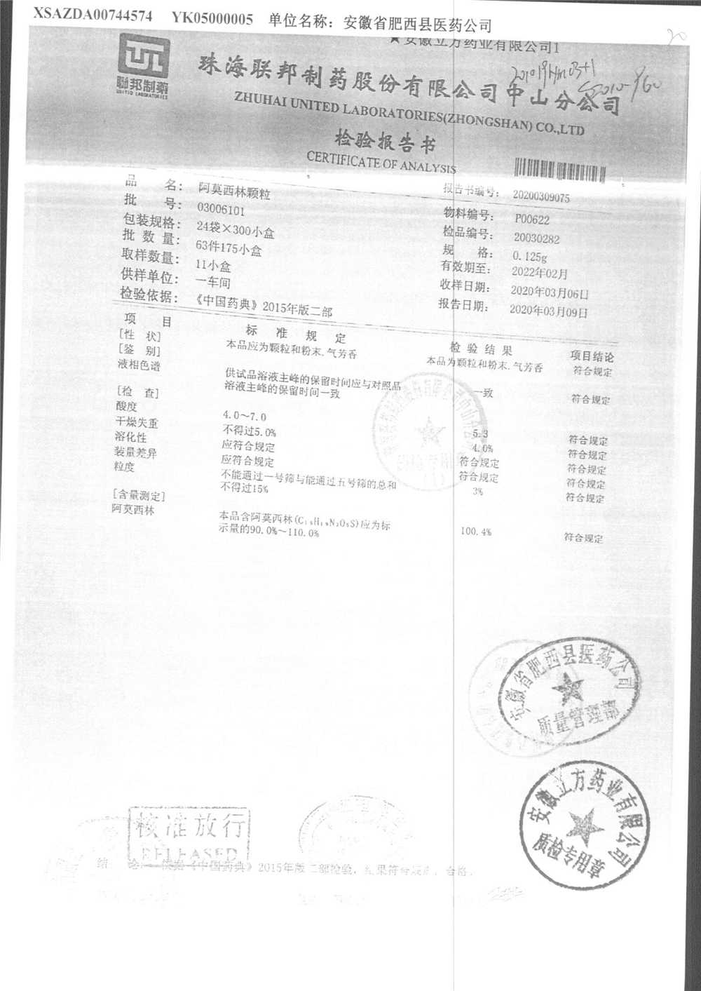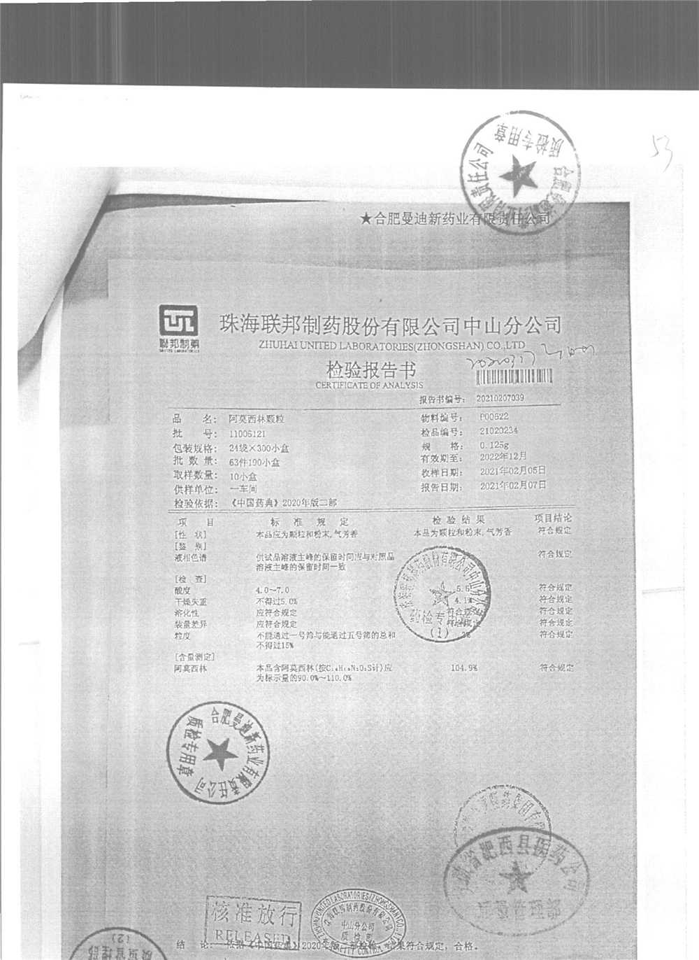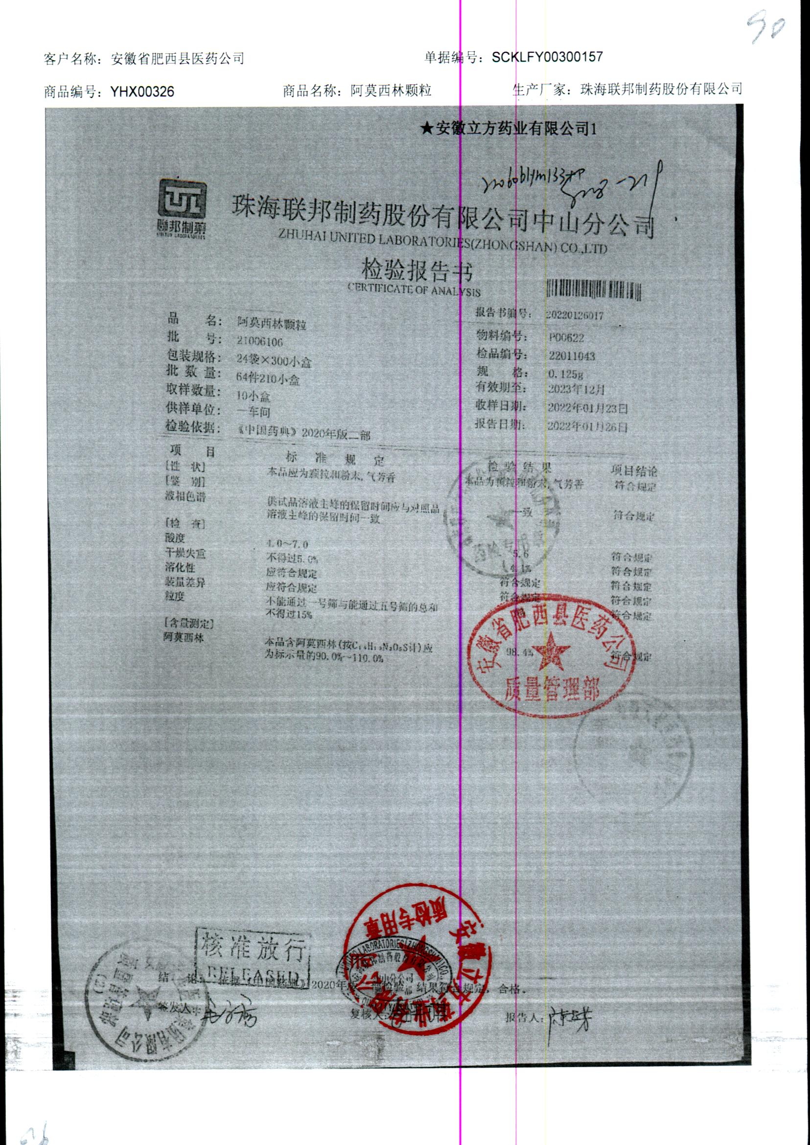 药检报告