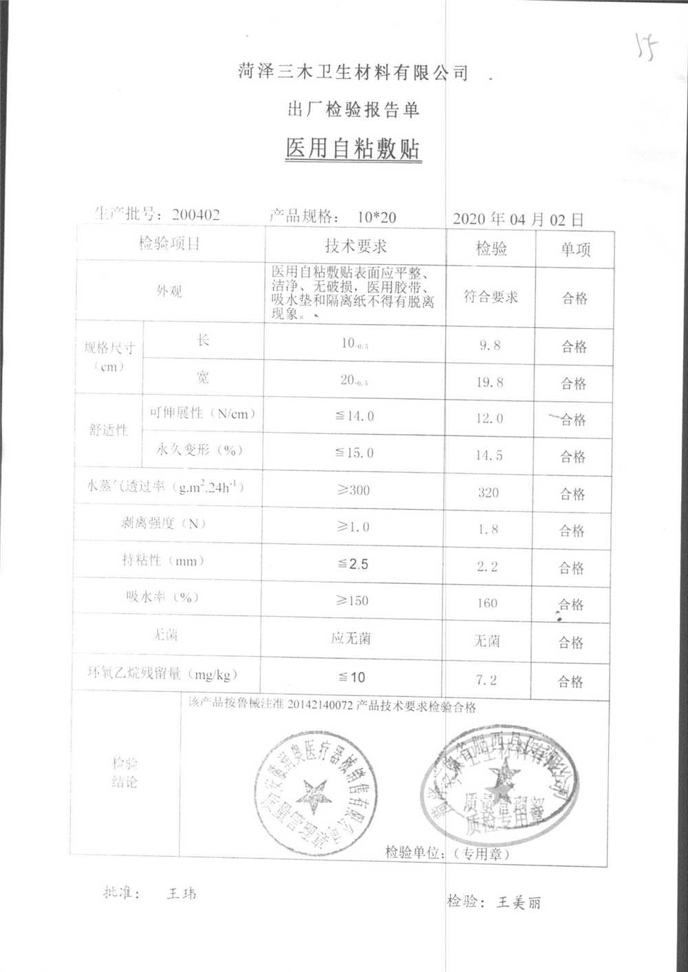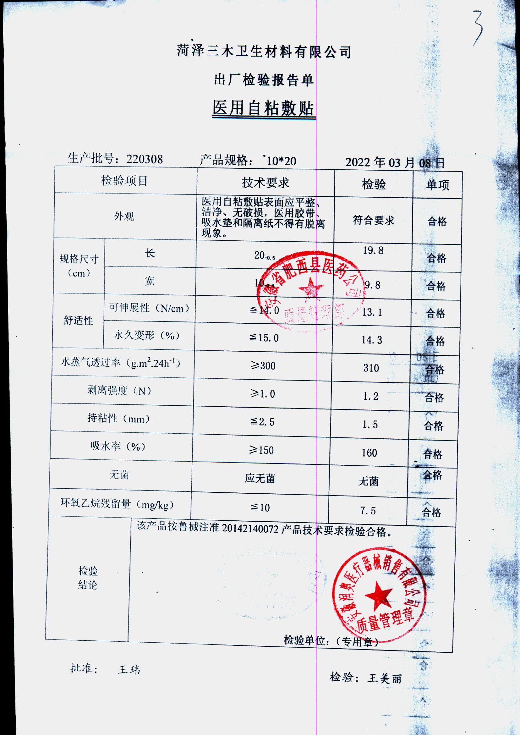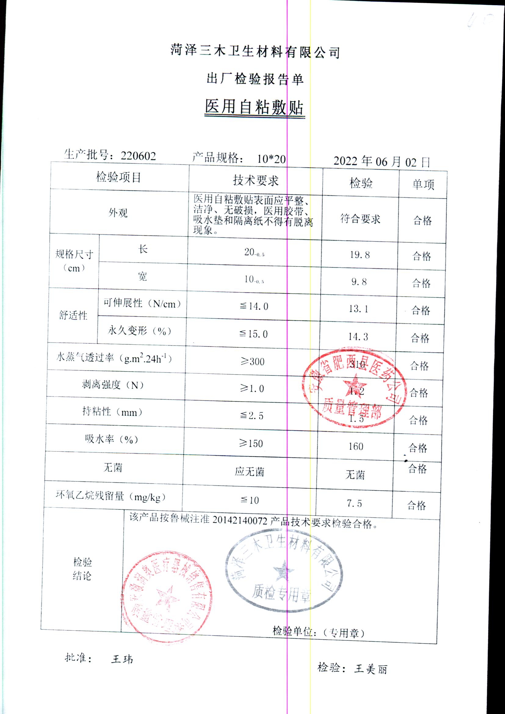 | 医用自粘敷贴 | 10*20 | 23080201 | 查看详情 |