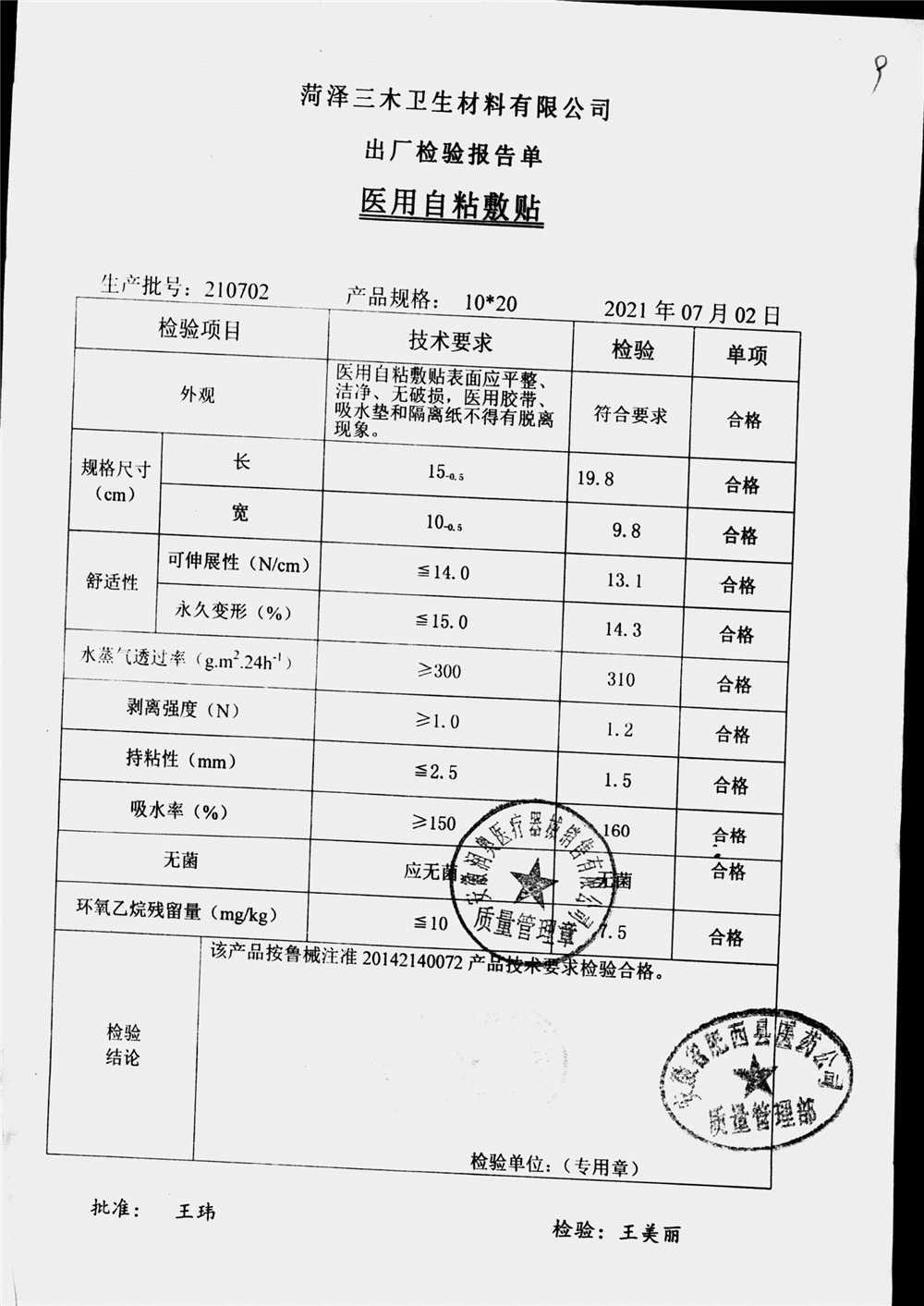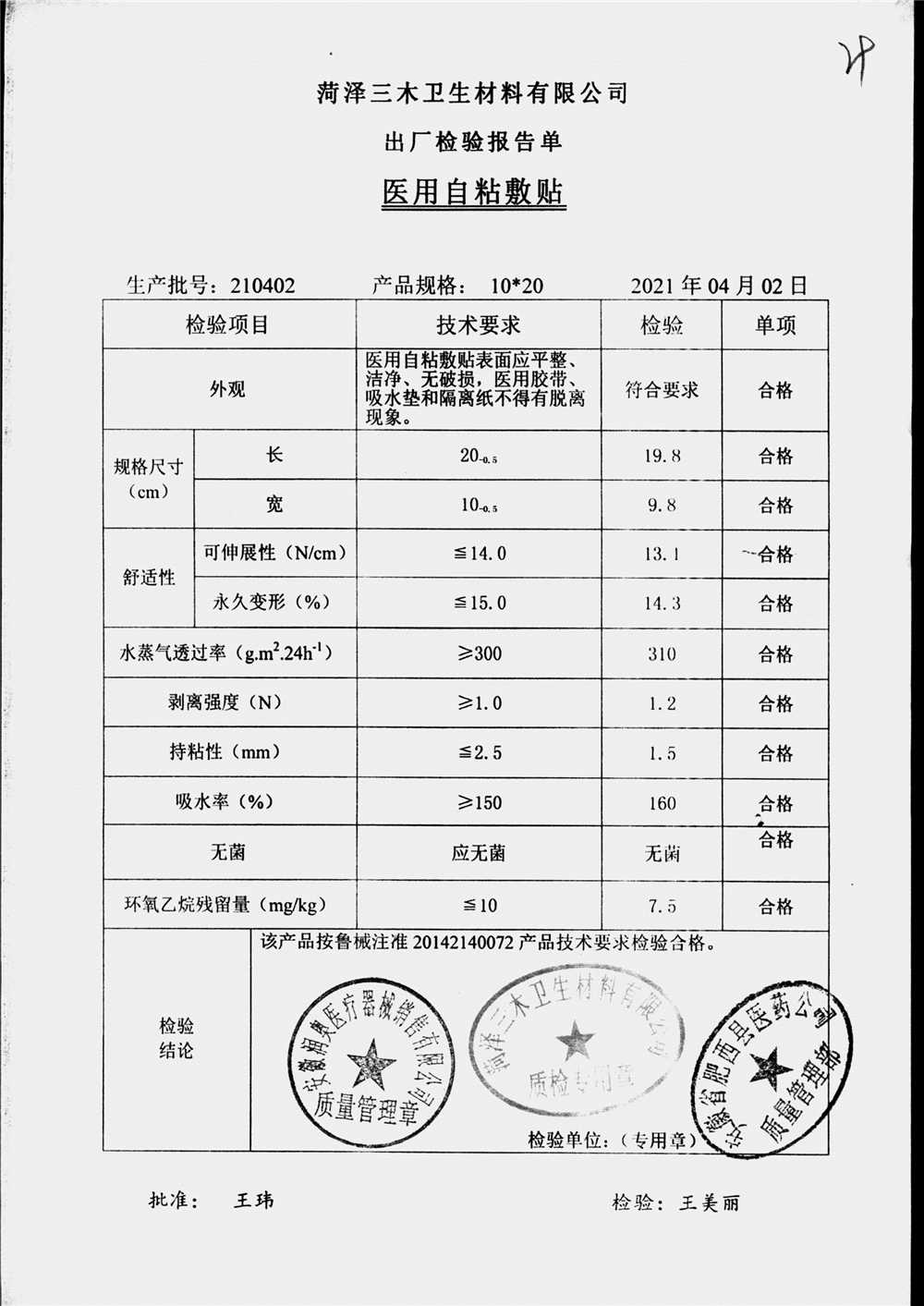 | 医用自粘敷贴 | 10*20 | 210702 | 查看详情 |