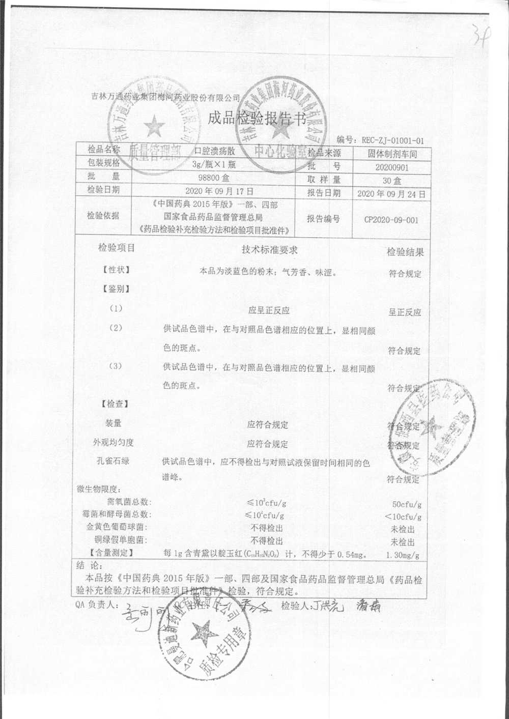 | 口腔溃疡散 | 3g | 20200901 | 查看详情 |