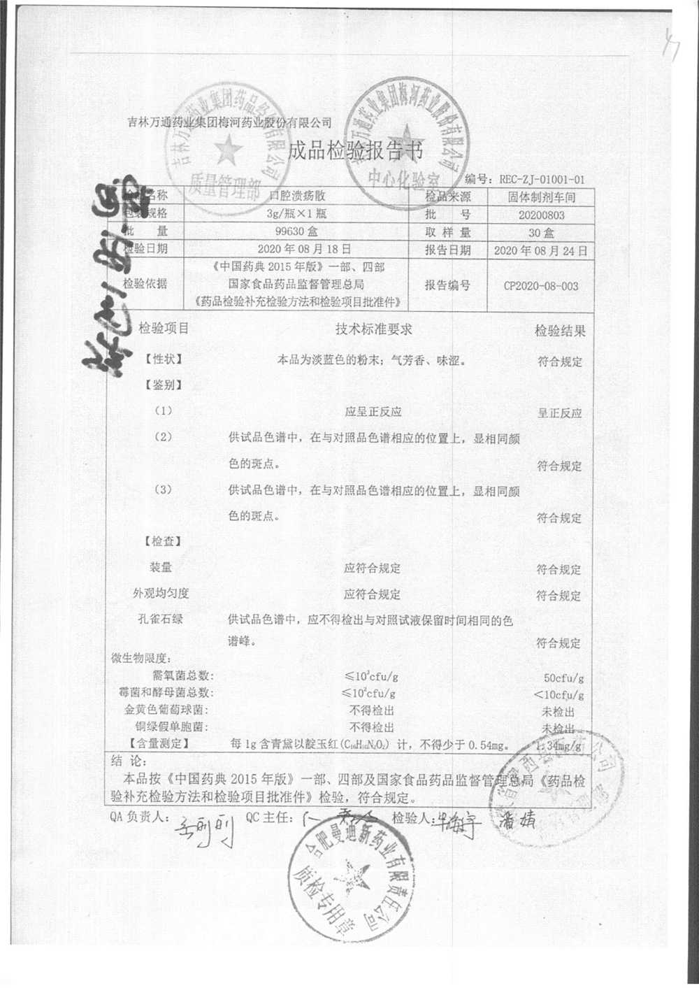 | 口腔溃疡散 | 3g | 20200803 | 查看详情 |