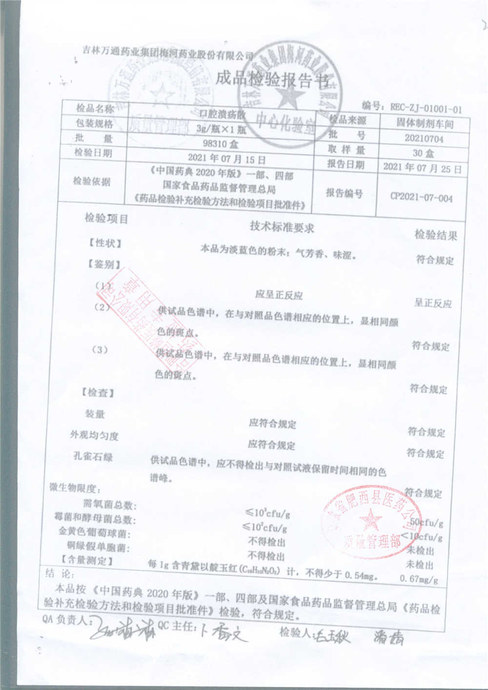 | 口腔溃疡散 | 3g | 20210704 | 查看详情 |