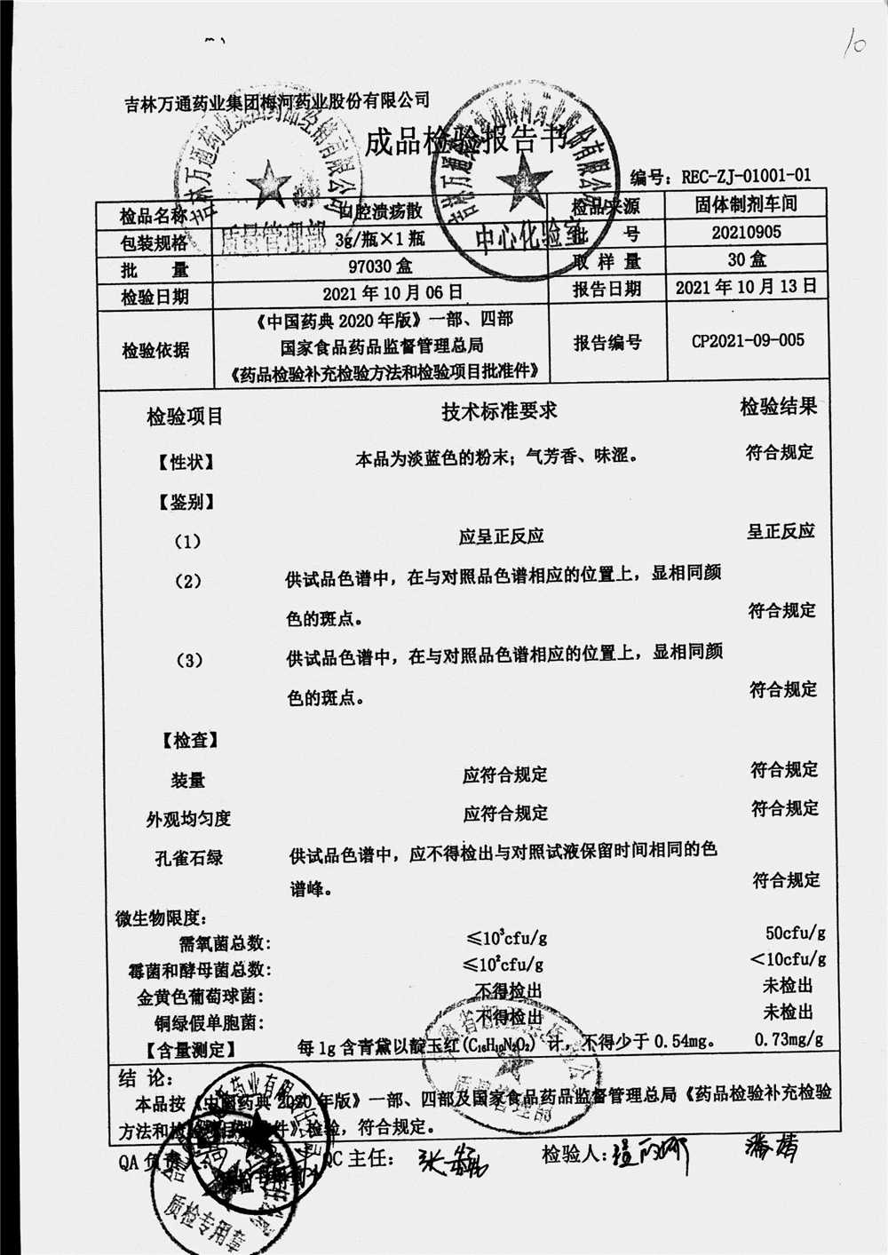| 口腔溃疡散 | 3g | 20211002 | 查看详情 |