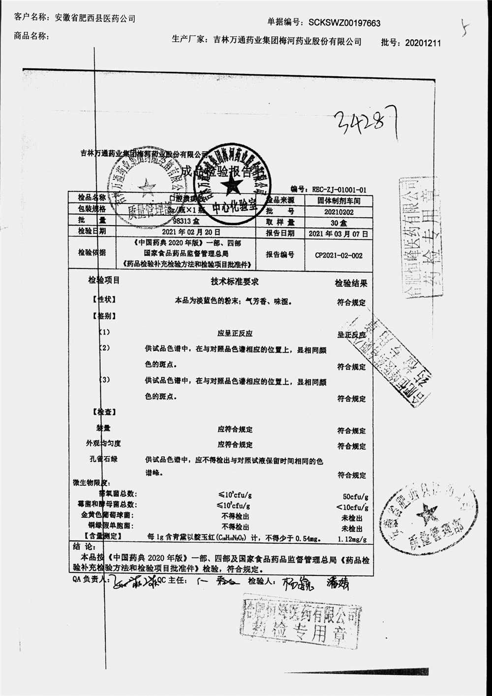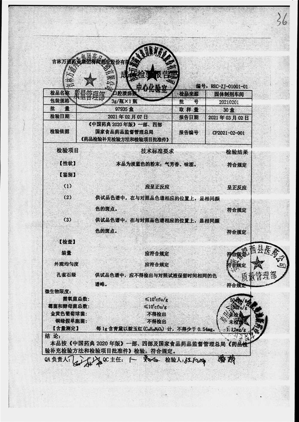 | 口腔溃疡散 | 3g | 20211203 | 查看详情 |