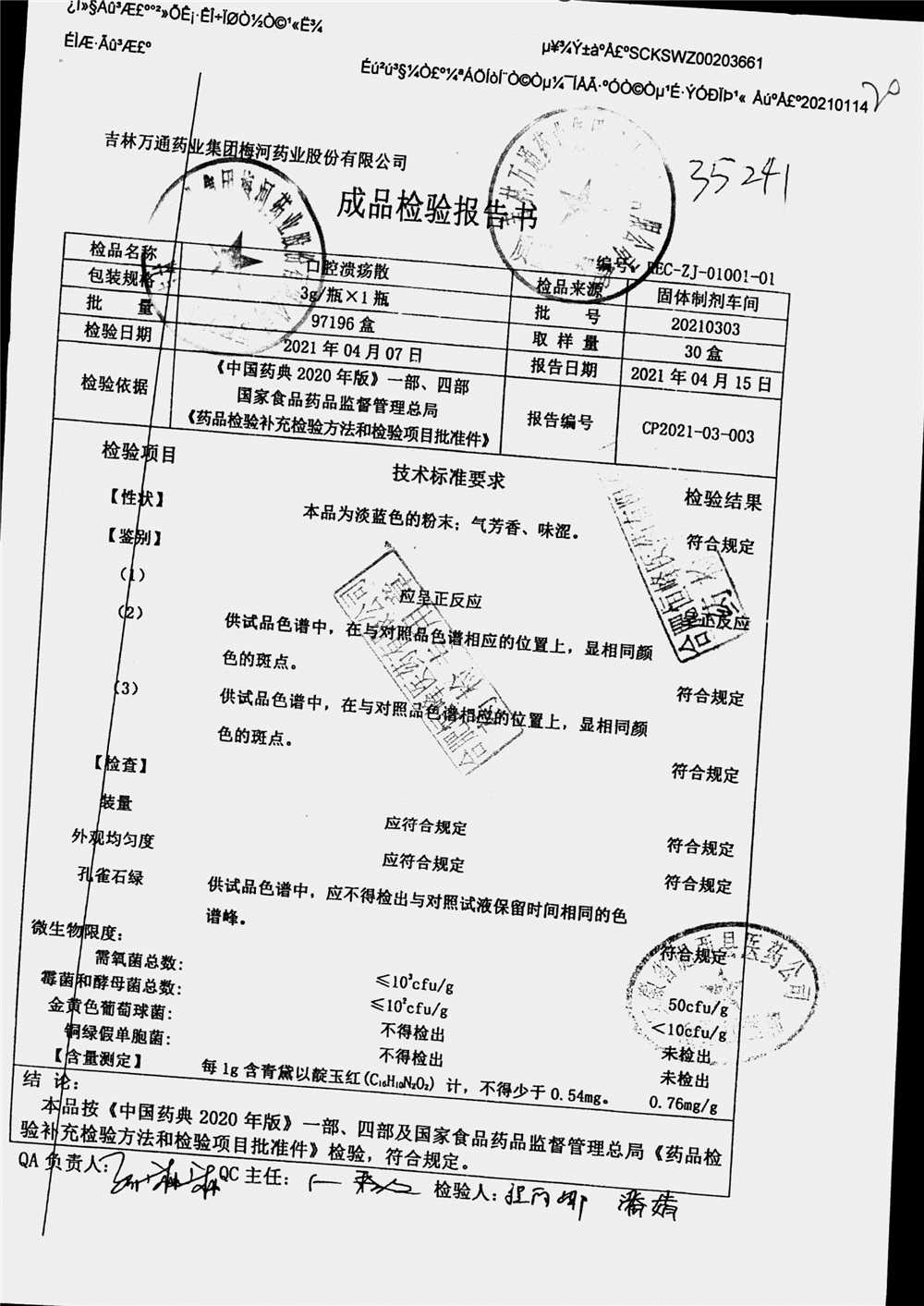 | 口腔溃疡散 | 3g | 20210604 | 查看详情 |