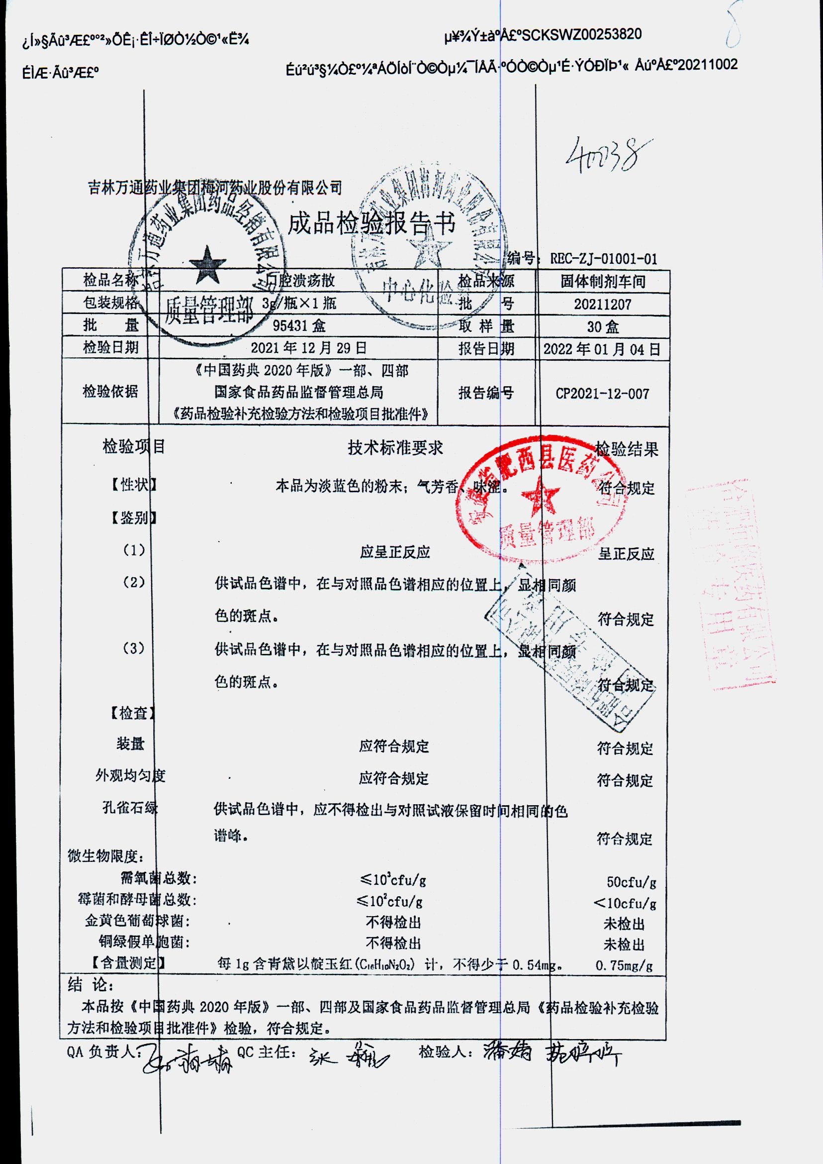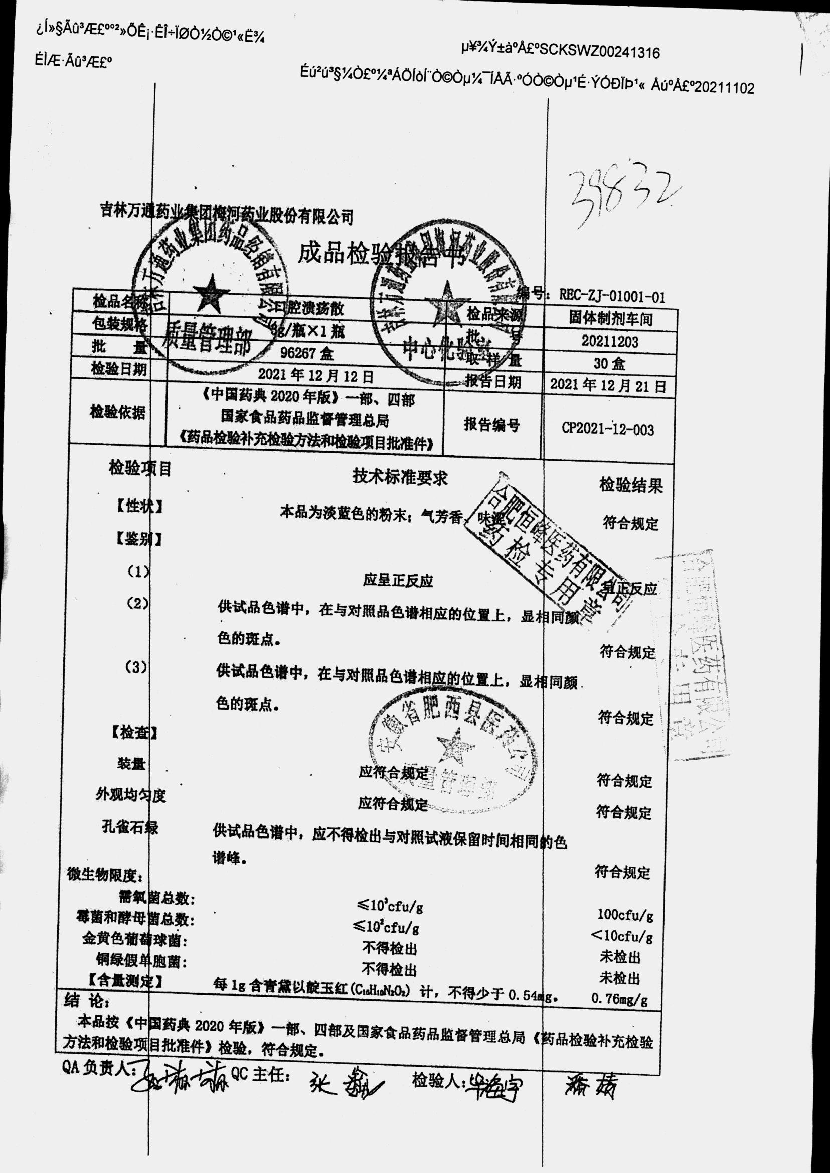 | 口腔溃疡散 | 3g | 20211207 | 查看详情 |