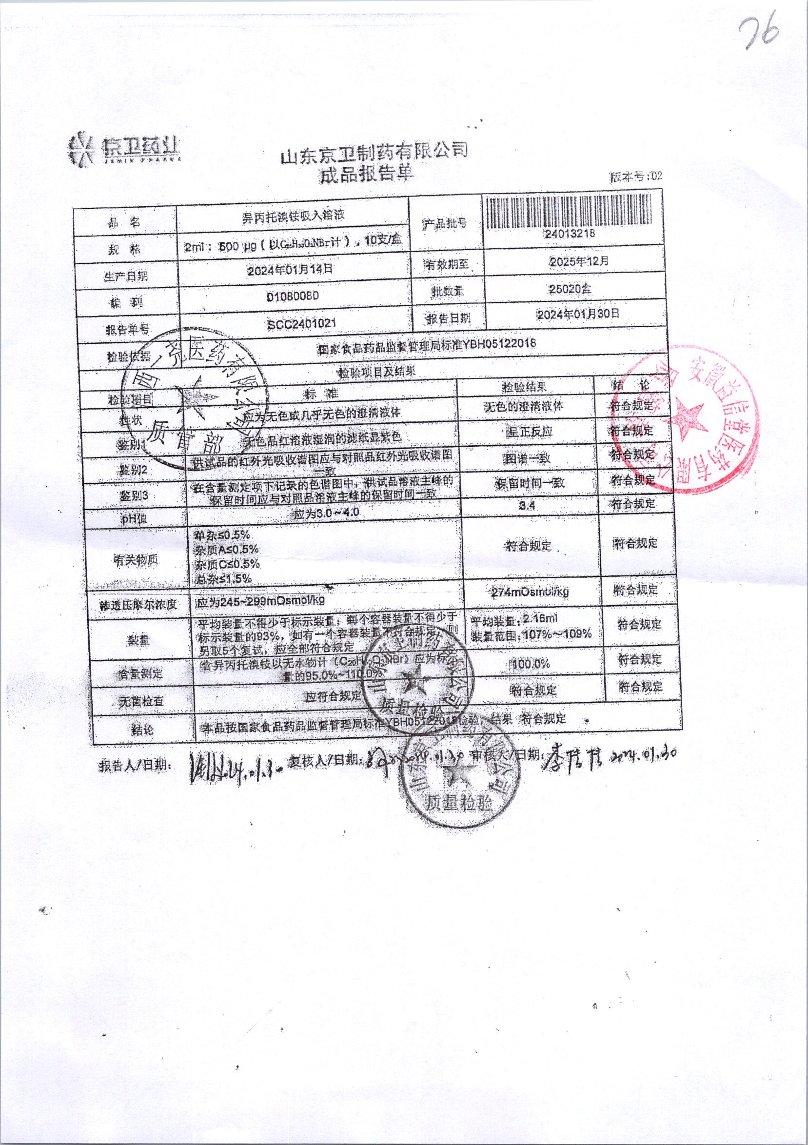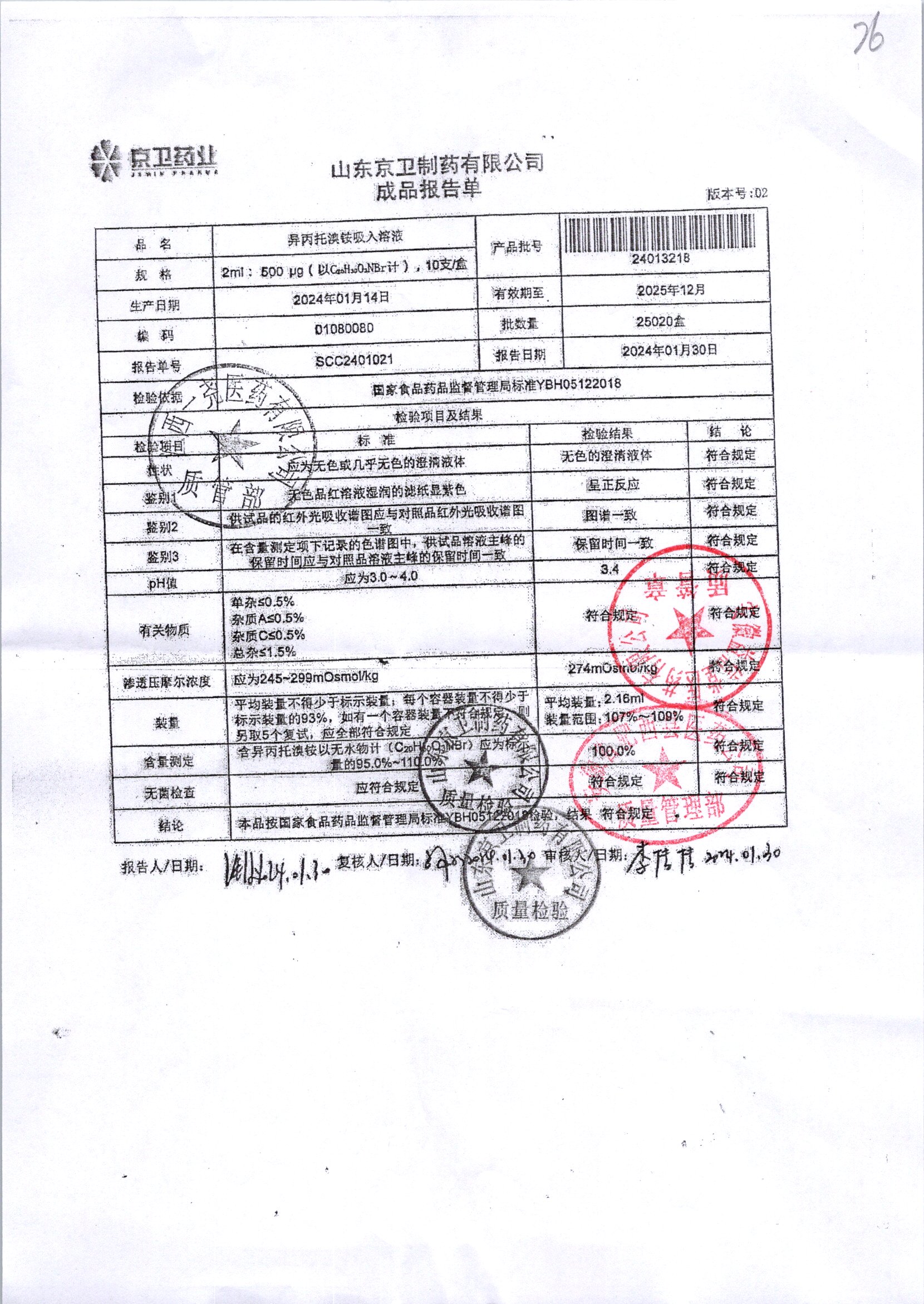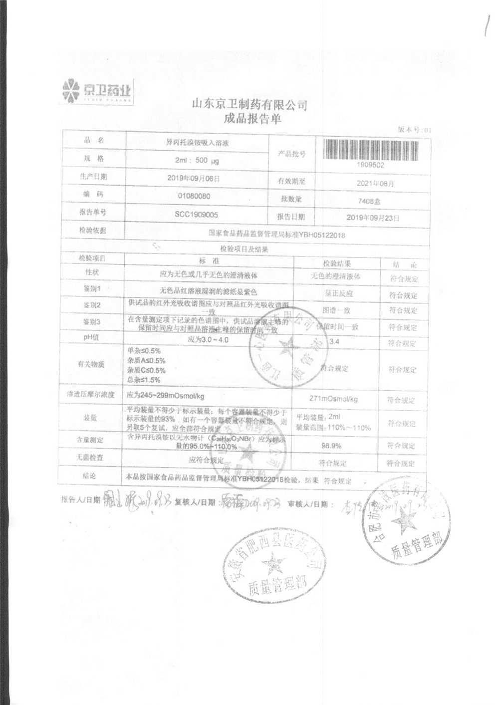 | 异丙托溴铵吸入溶液 | 2ml | 24013218 | 查看详情 |