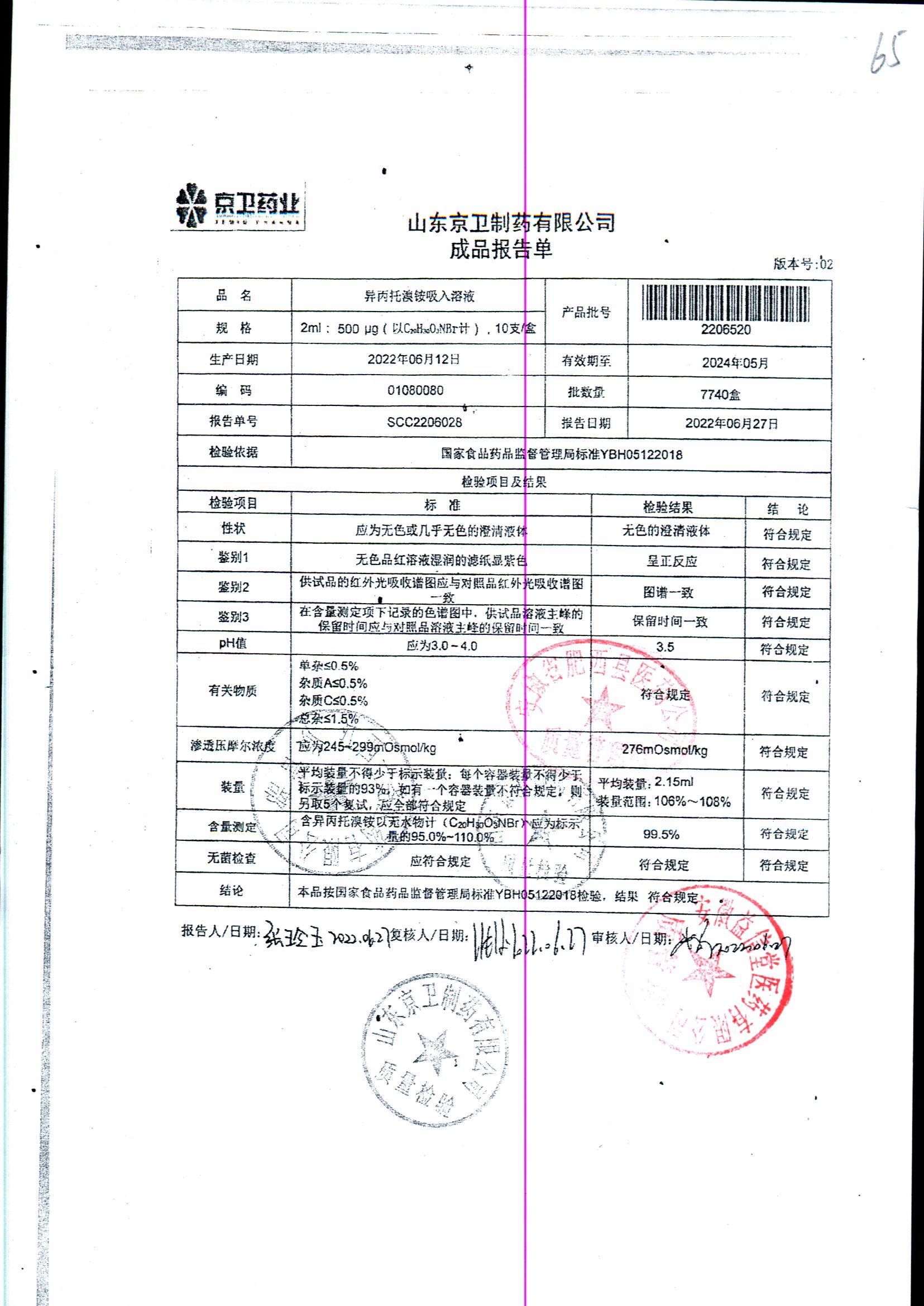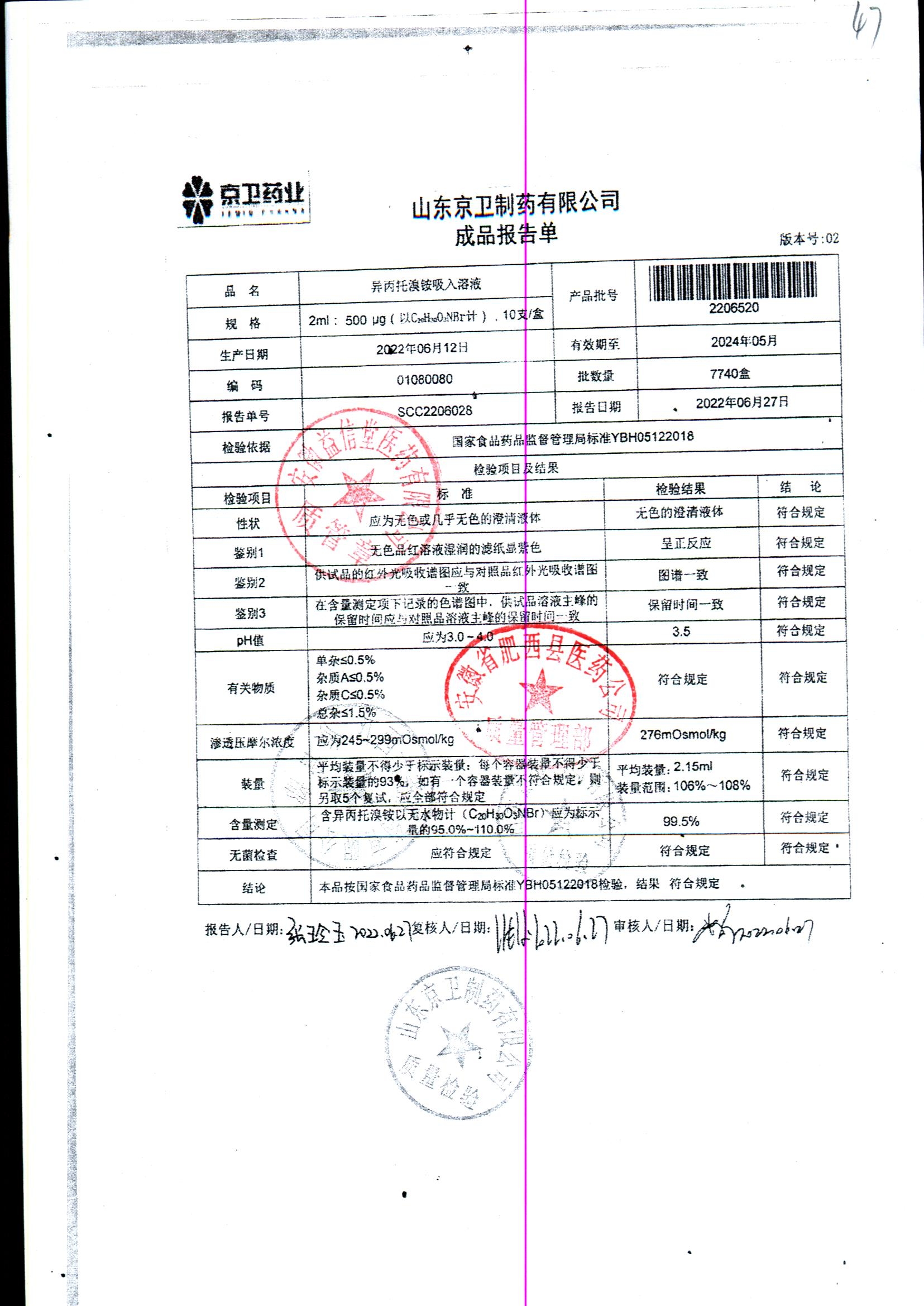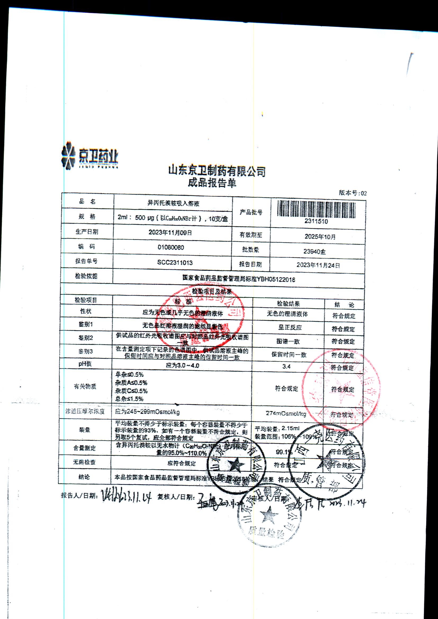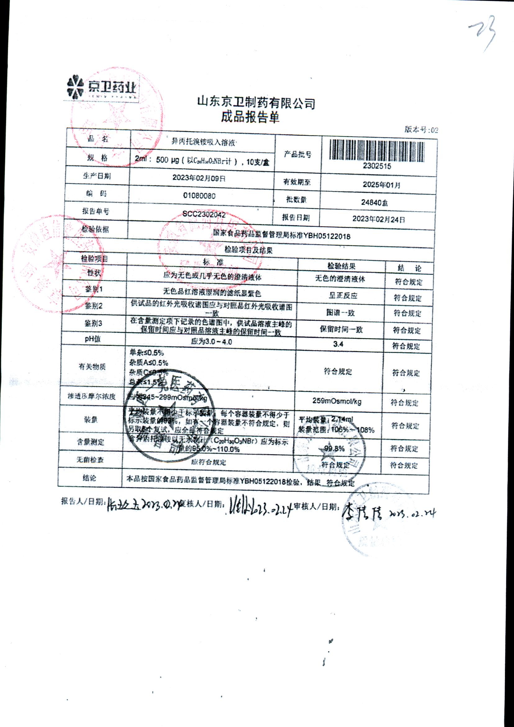 | 异丙托溴铵吸入溶液 | 2ml | 24033210 | 查看详情 |