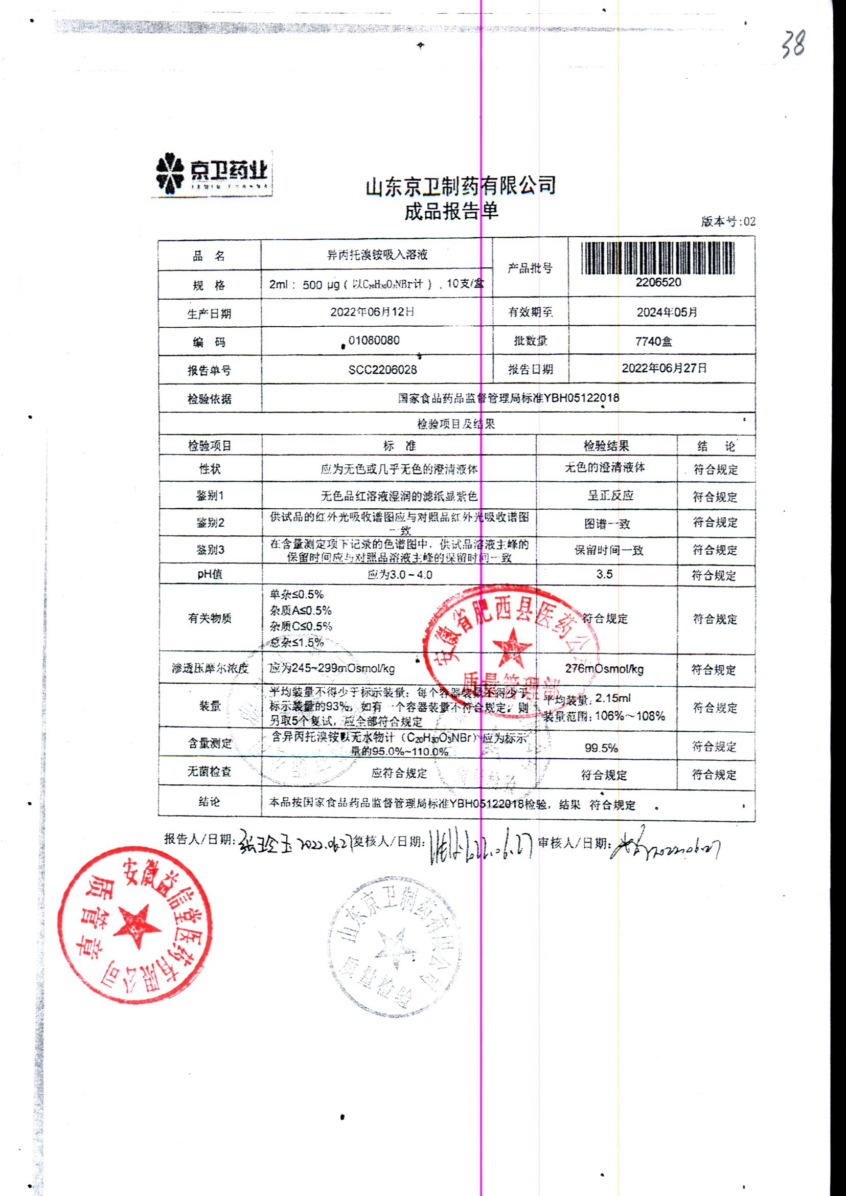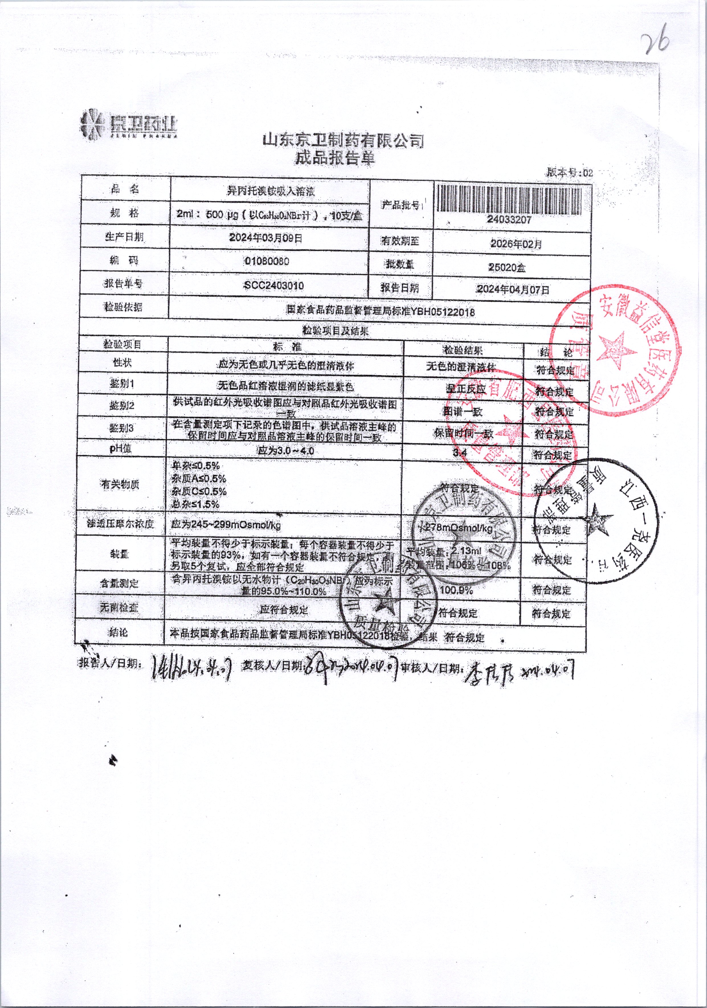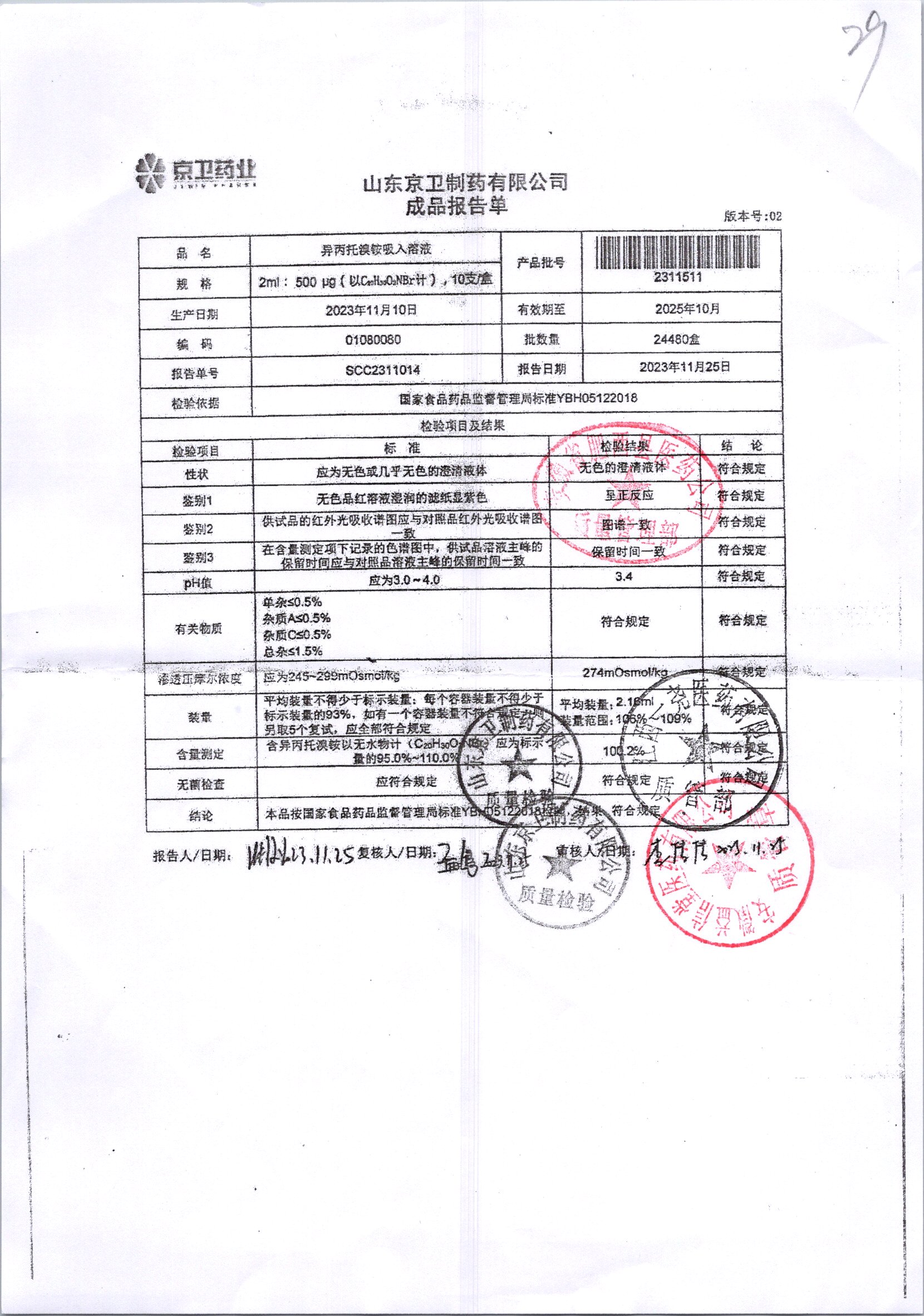 | 异丙托溴铵吸入溶液 | 2ml | 24033210 | 查看详情 |
