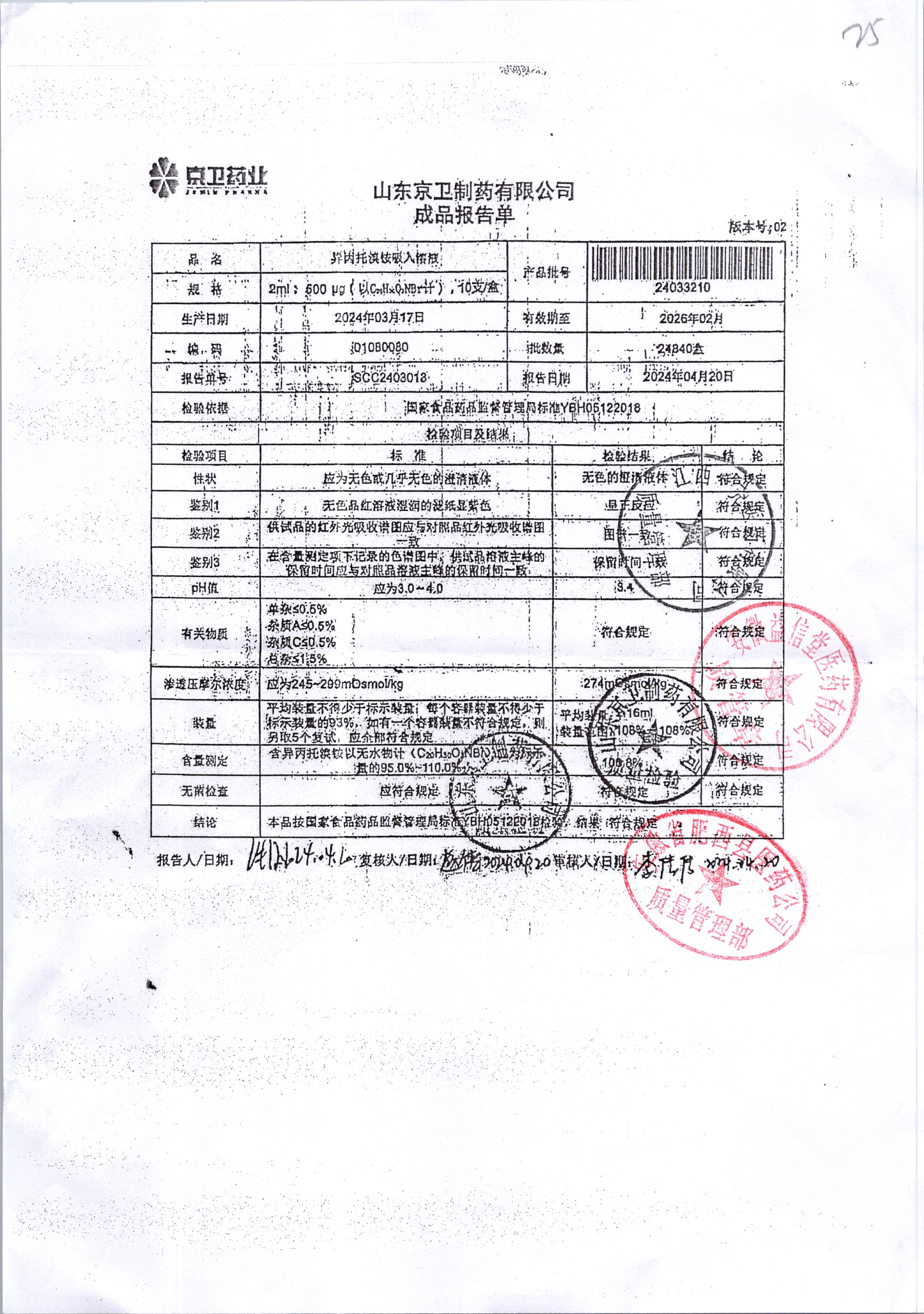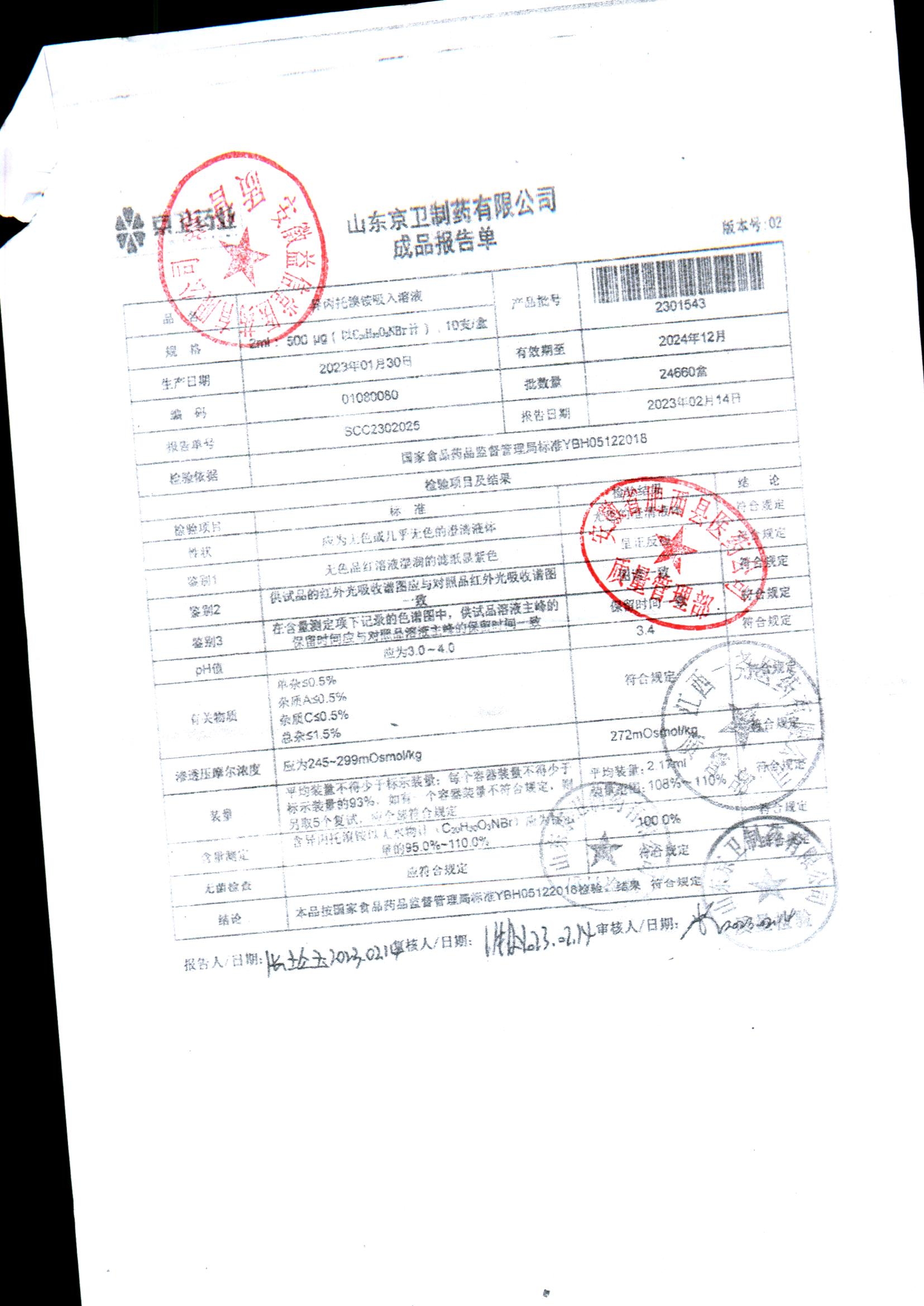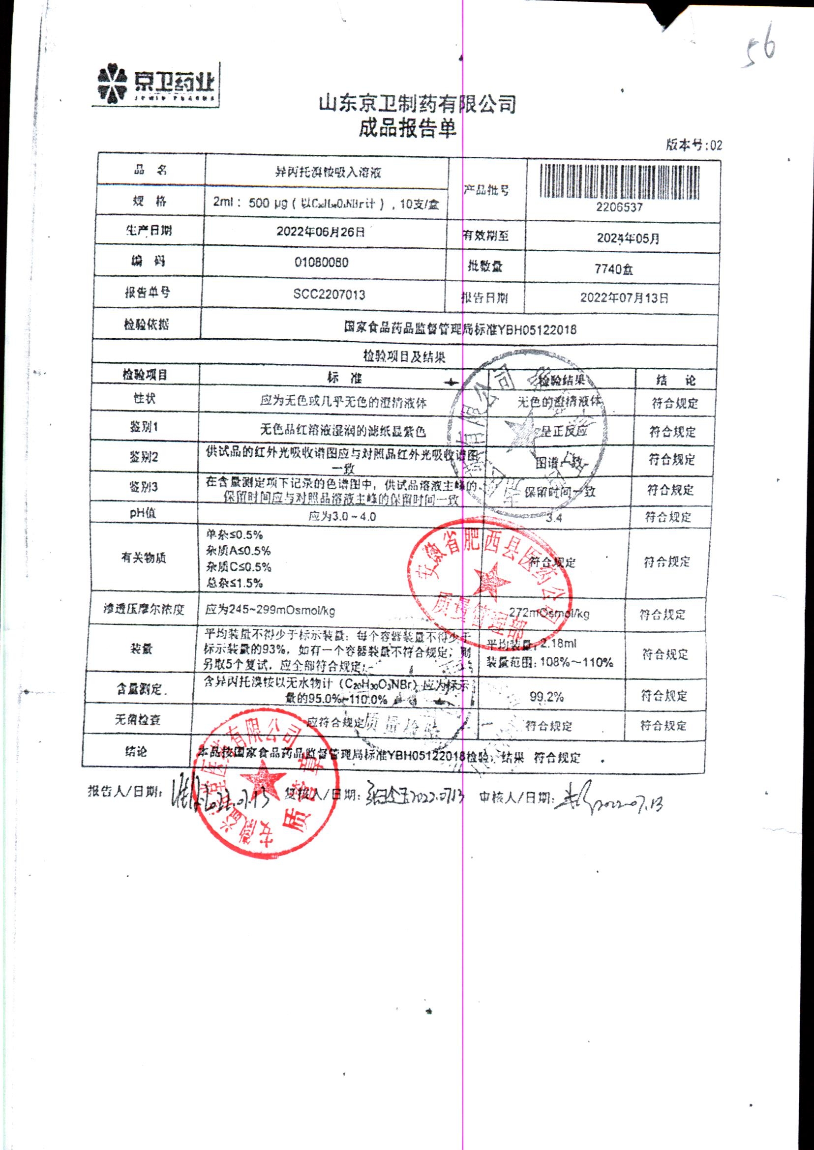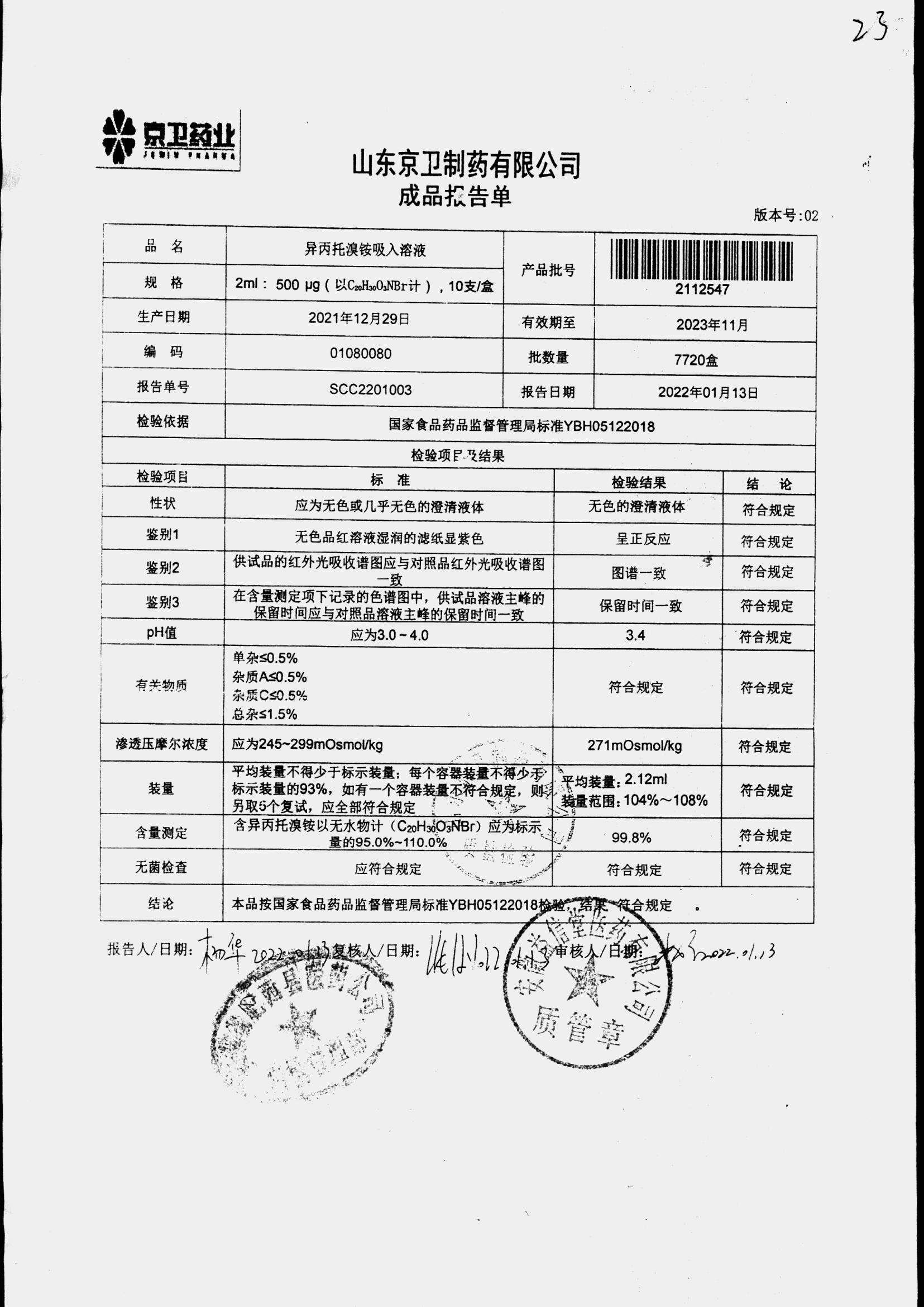 | 异丙托溴铵吸入溶液 | 2ml | 24033210 | 查看详情 |