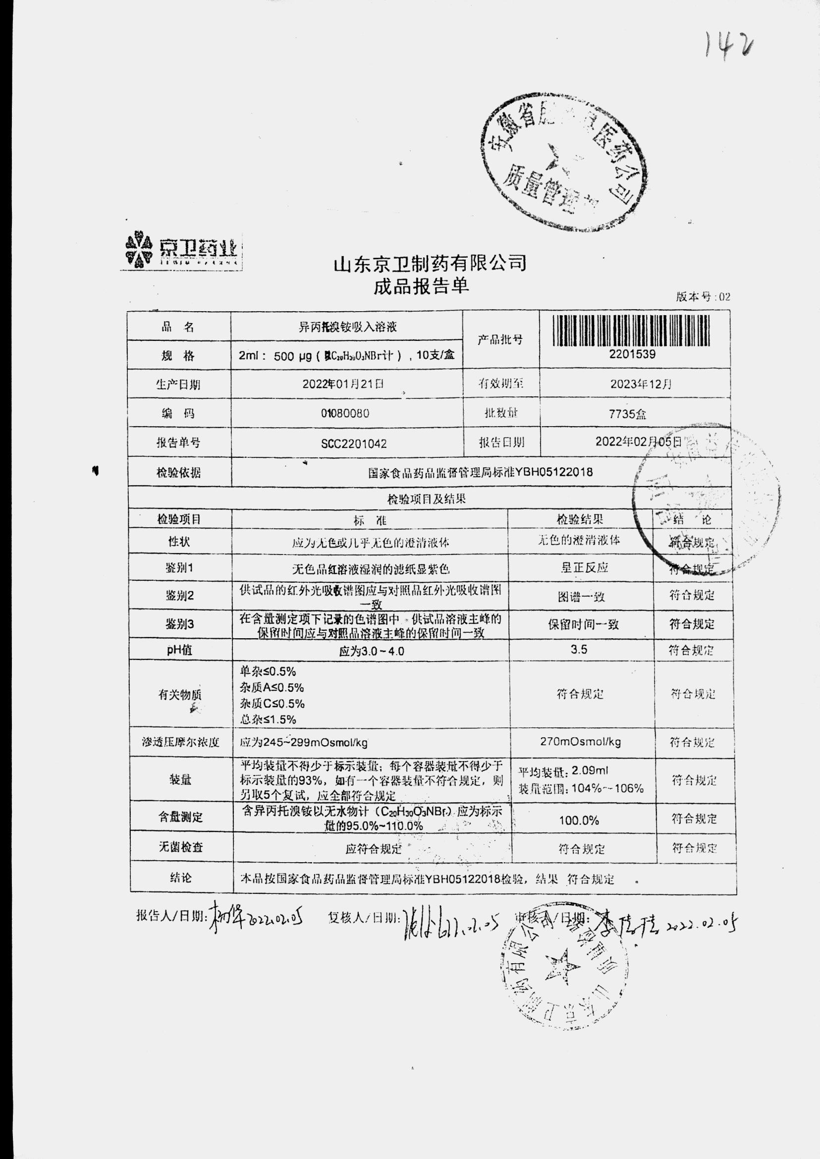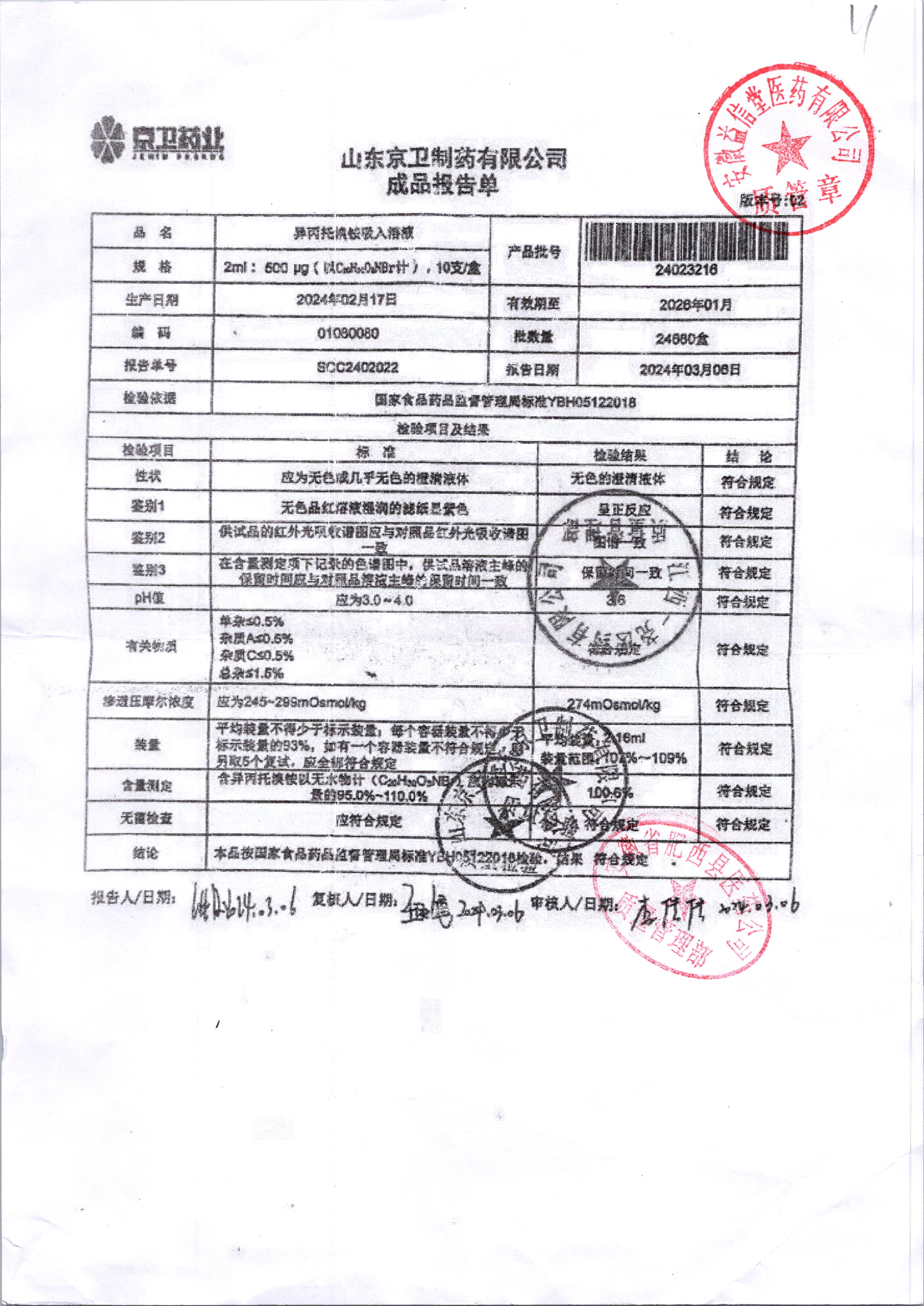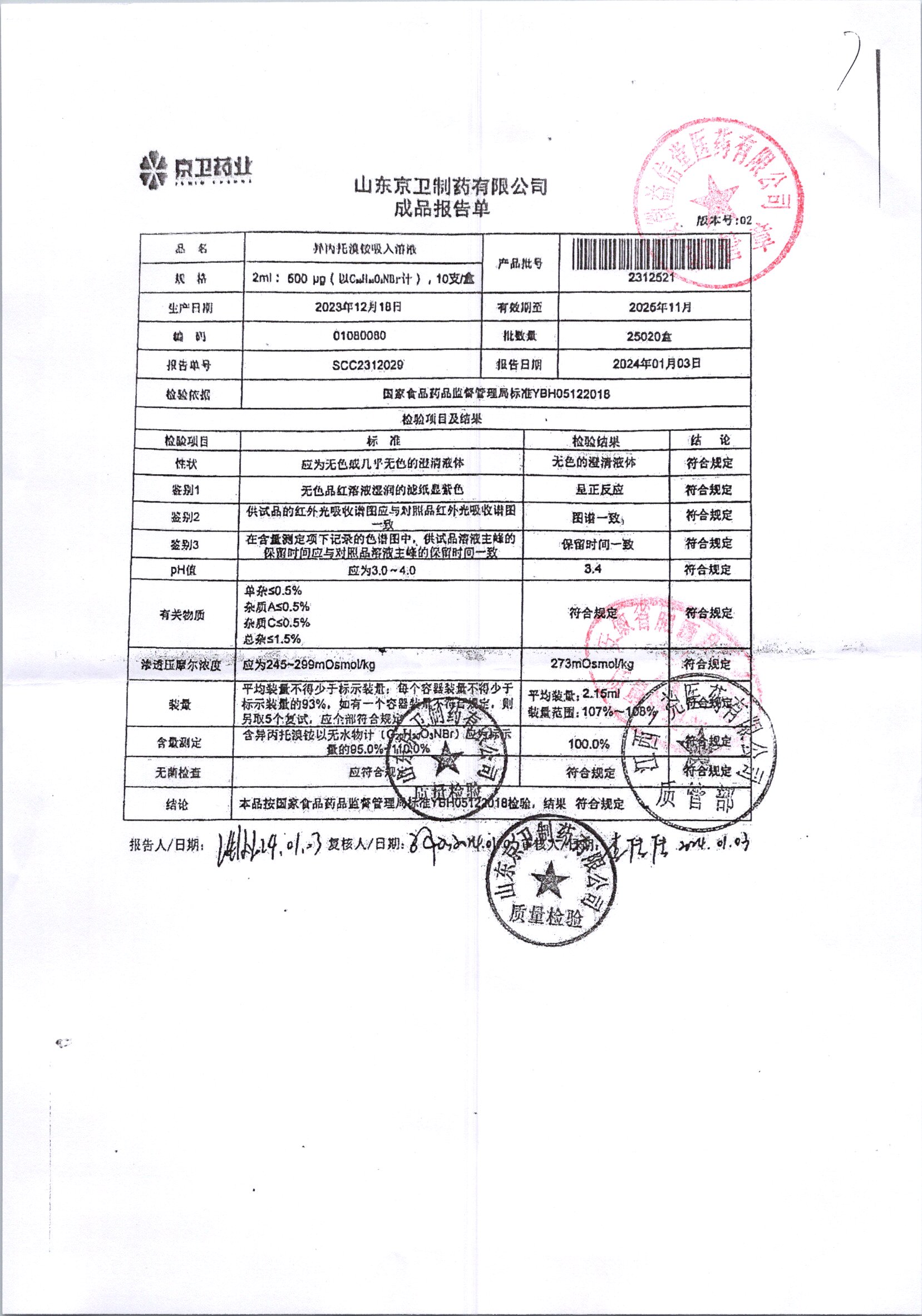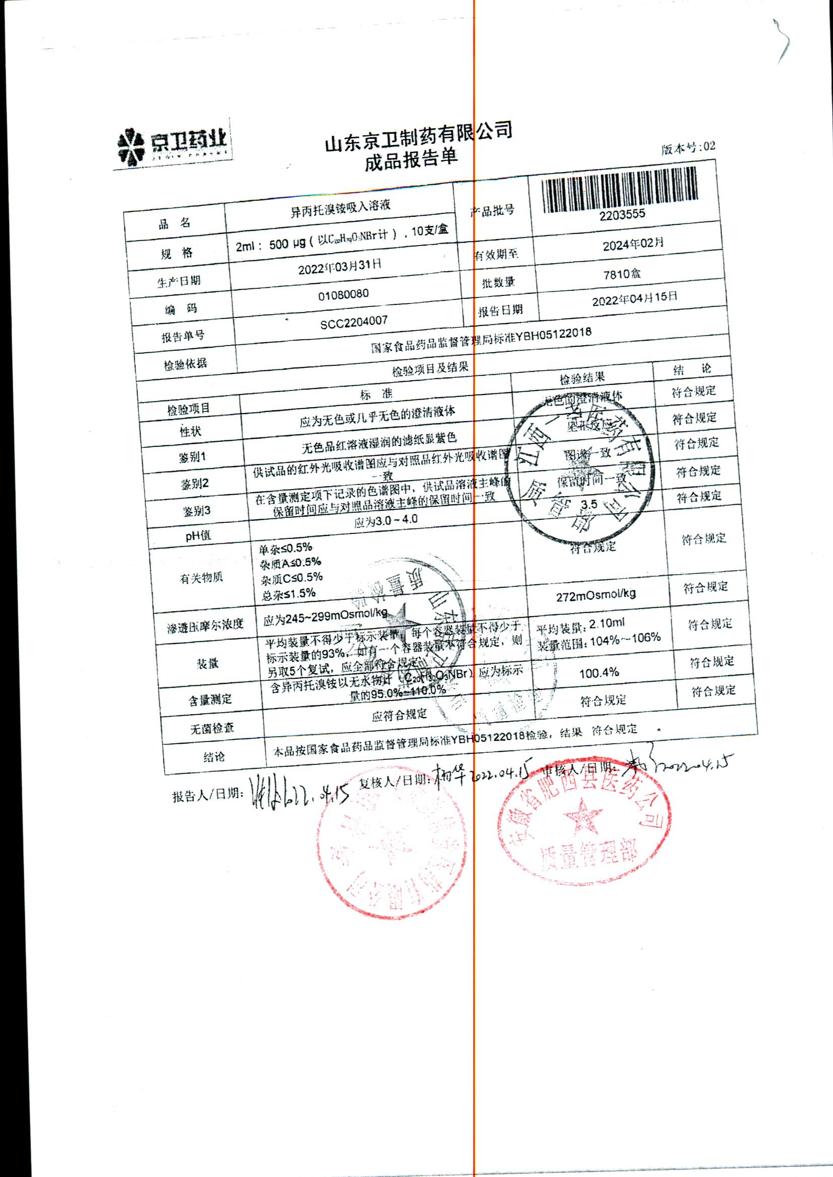 | 异丙托溴铵吸入溶液 | 2ml | 24023217 | 查看详情 |