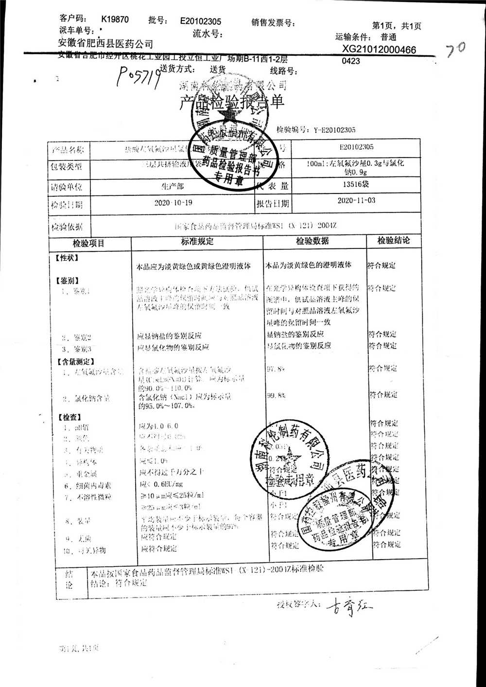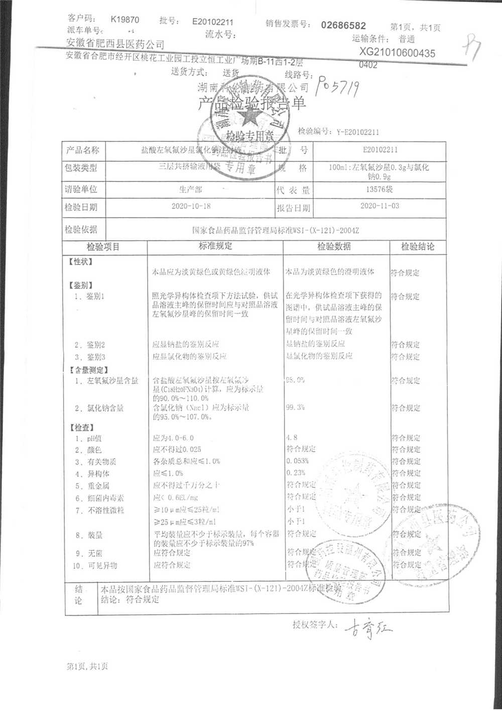 | 盐酸左氧氟沙星氯化钠注射液 | 100ml | E20102305 | 查看详情 |