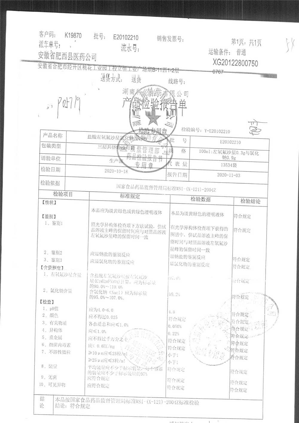 | 盐酸左氧氟沙星氯化钠注射液 | 100ml | E20102210 | 查看详情 |
