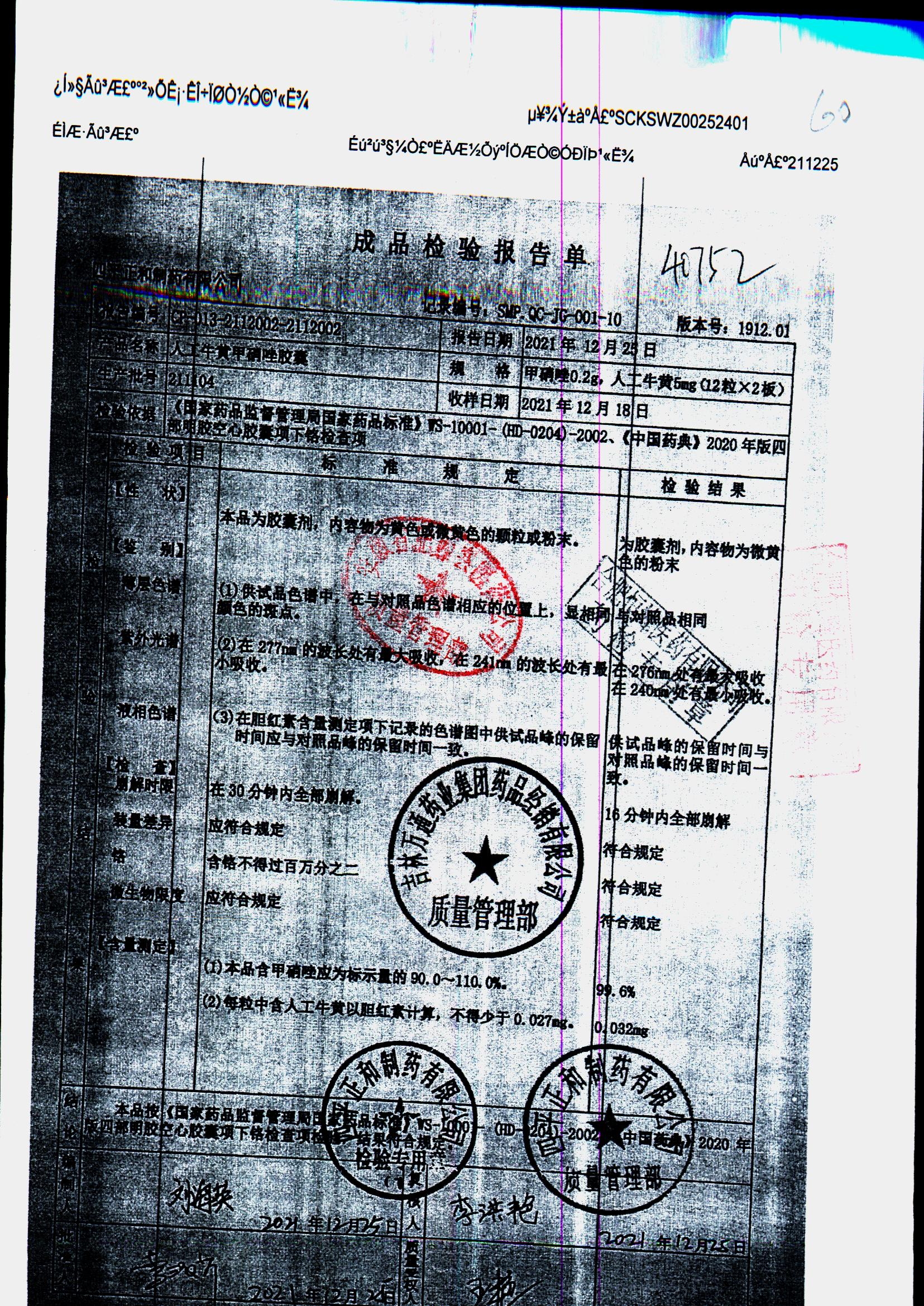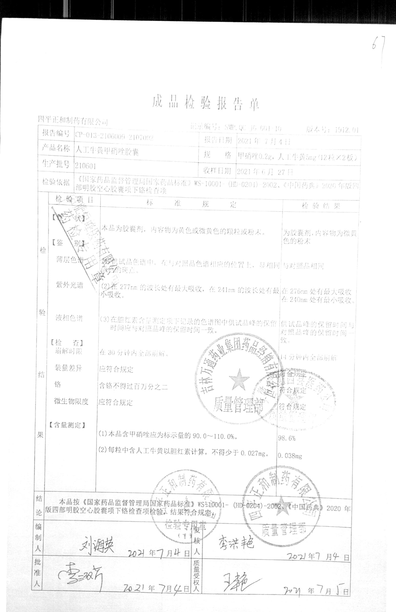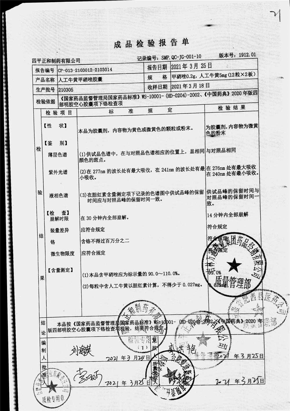| 人工牛黄甲硝唑胶囊 | 24s | 210601 | 查看详情 |