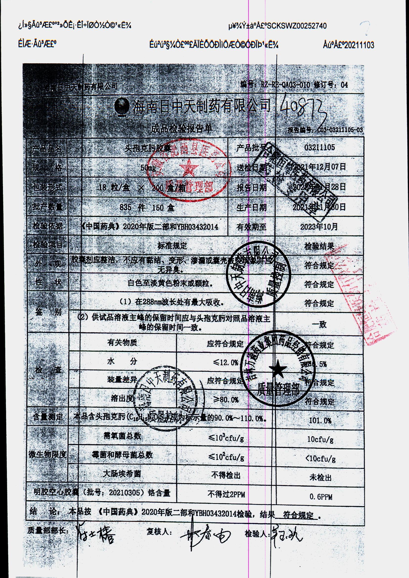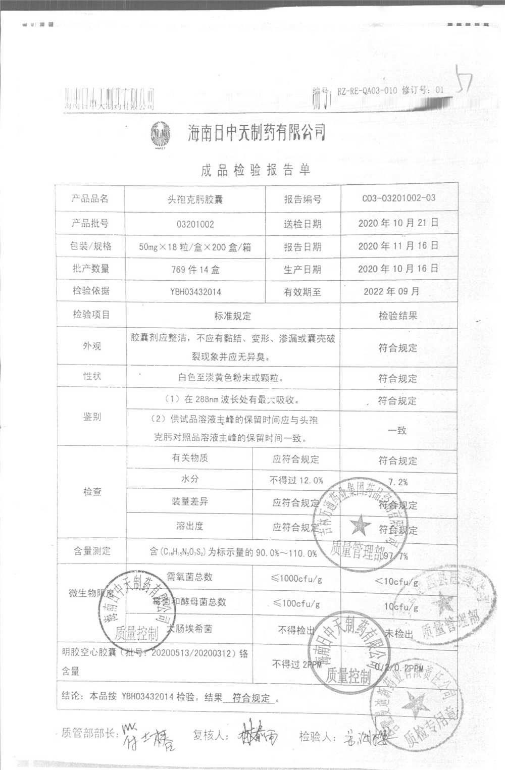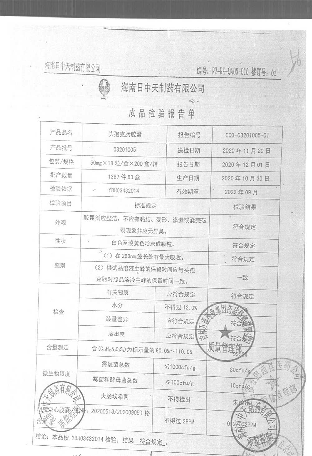 | 头孢克肟胶囊 | 50mg*9s*2板 | 03201002 | 查看详情 |
