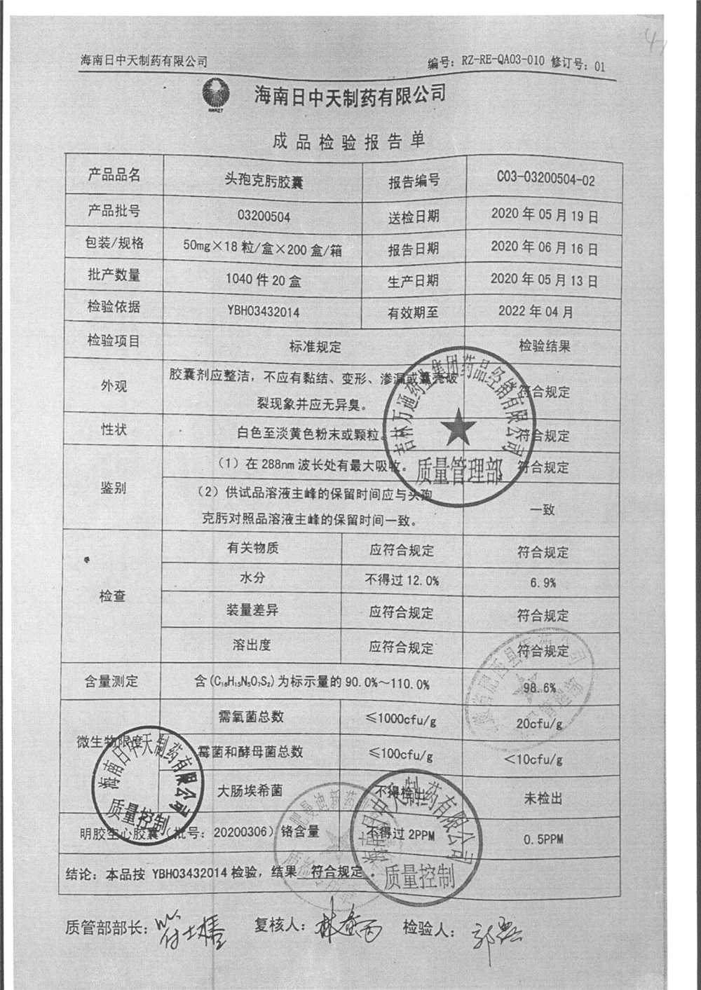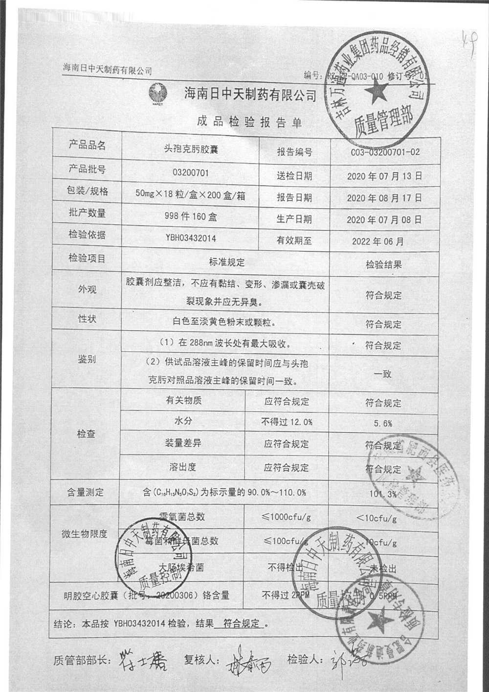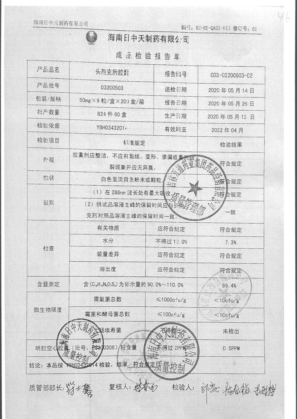 | 头孢克肟胶囊 | 50mg*9s*2板 | 03201002 | 查看详情 |